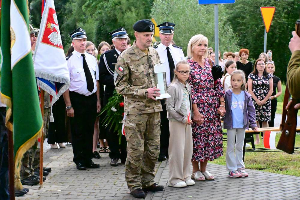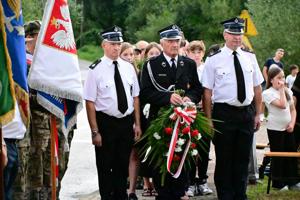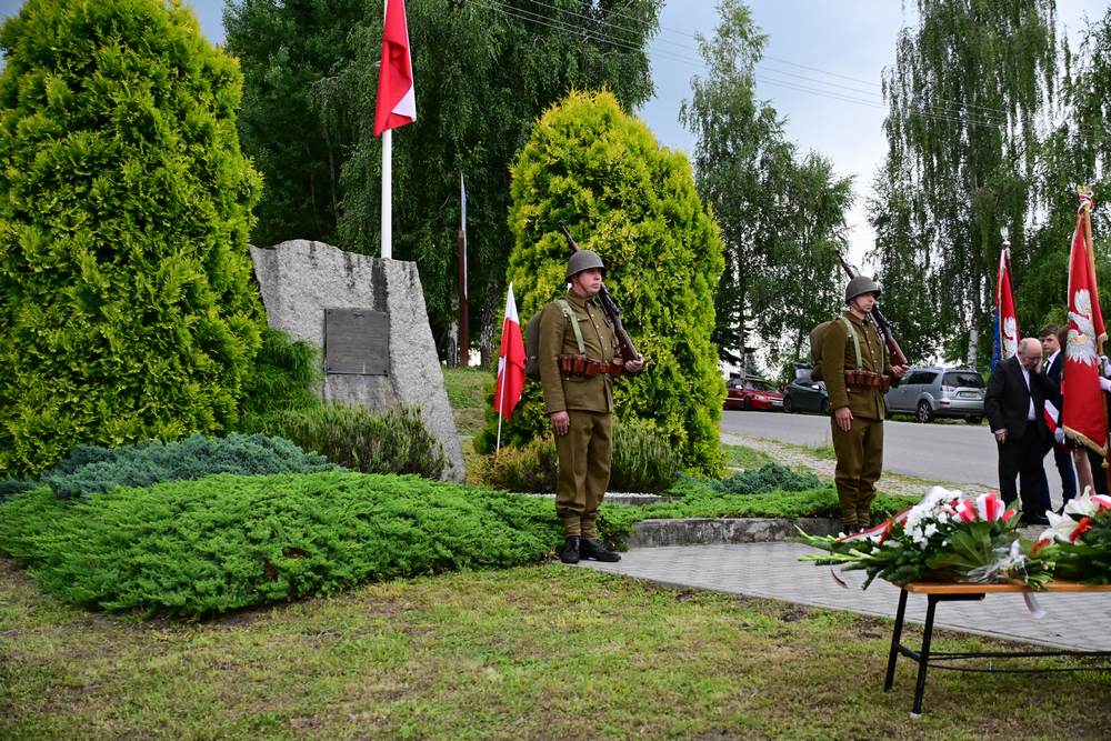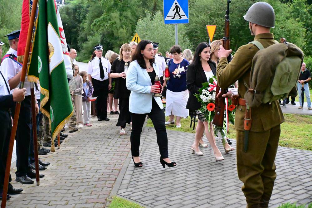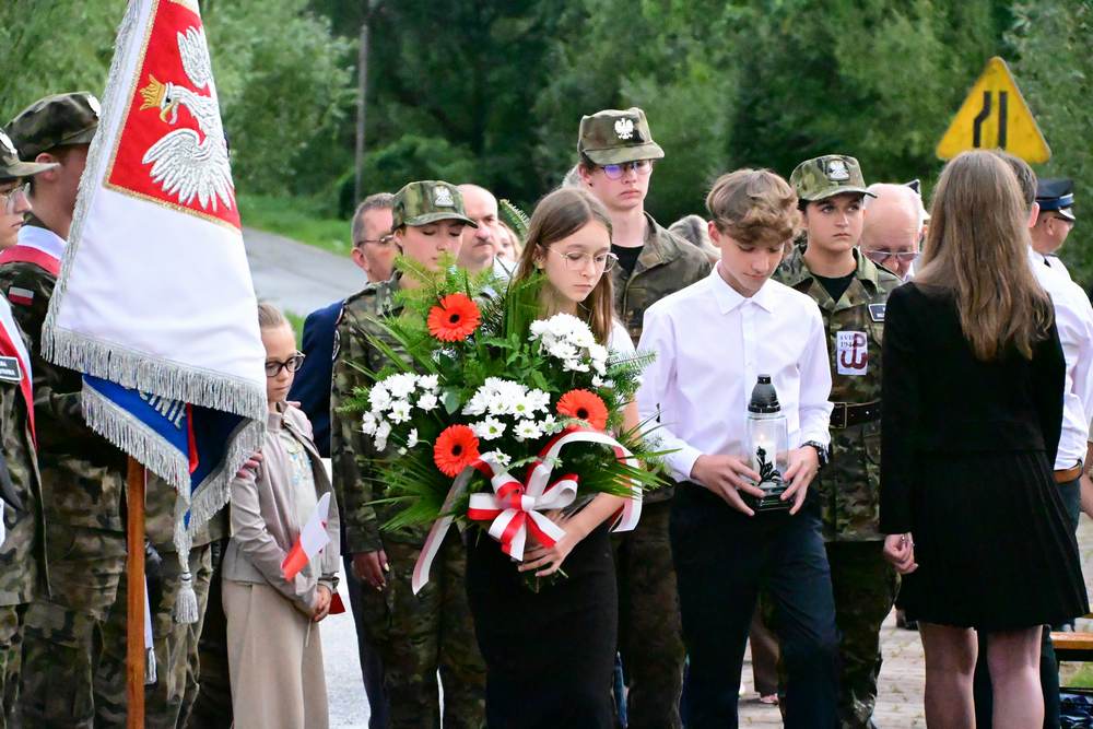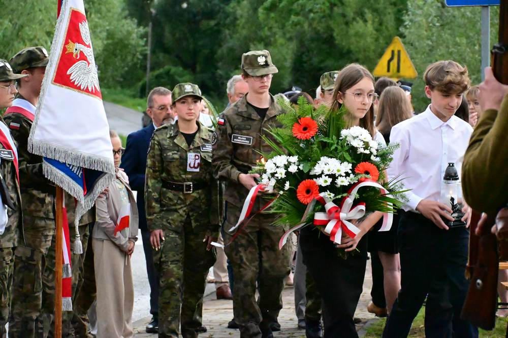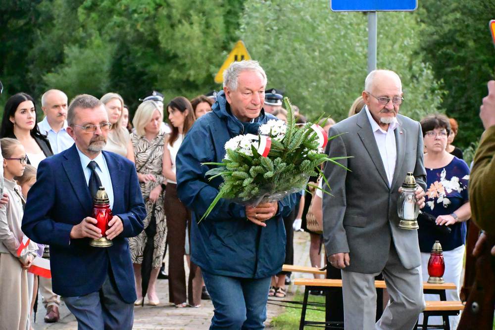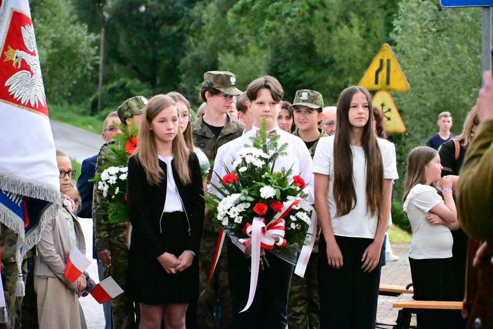 Na zakończenie delegacje gminy, instytucji, sołectw, organizacji oraz szkół złożyły pod pomnikiem znicze i wiązanki kwiatów. Zastępca Wójta podziękowała wszystkim za obecność i wspólne upamiętnienie tego niezwykle ważnego wydarzenia w historii naszego narodu.