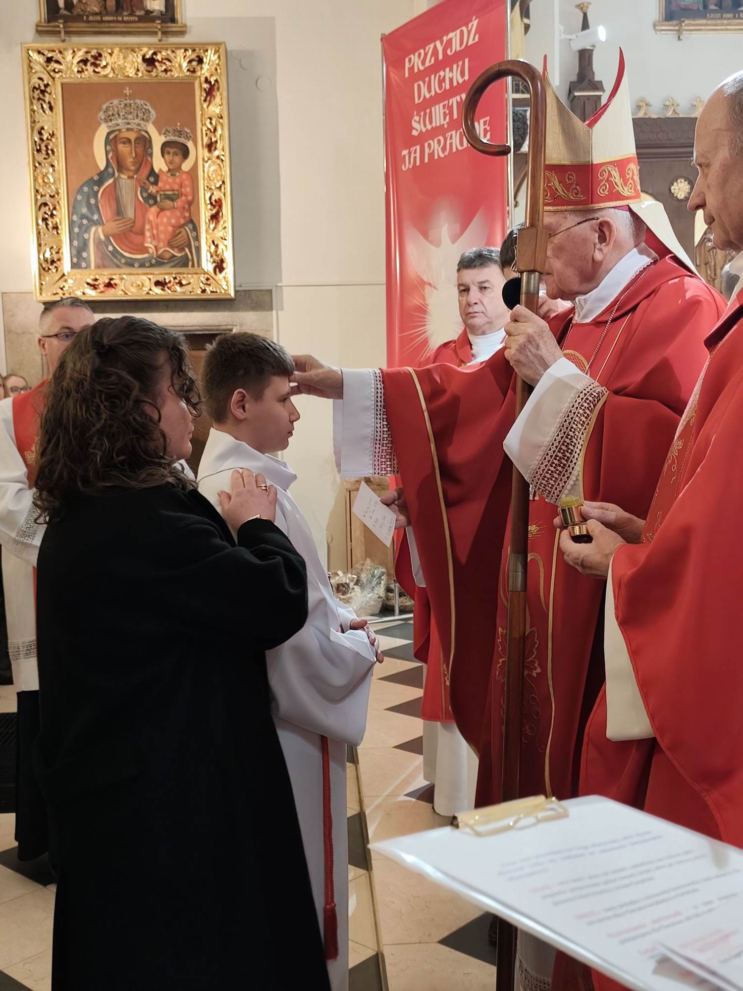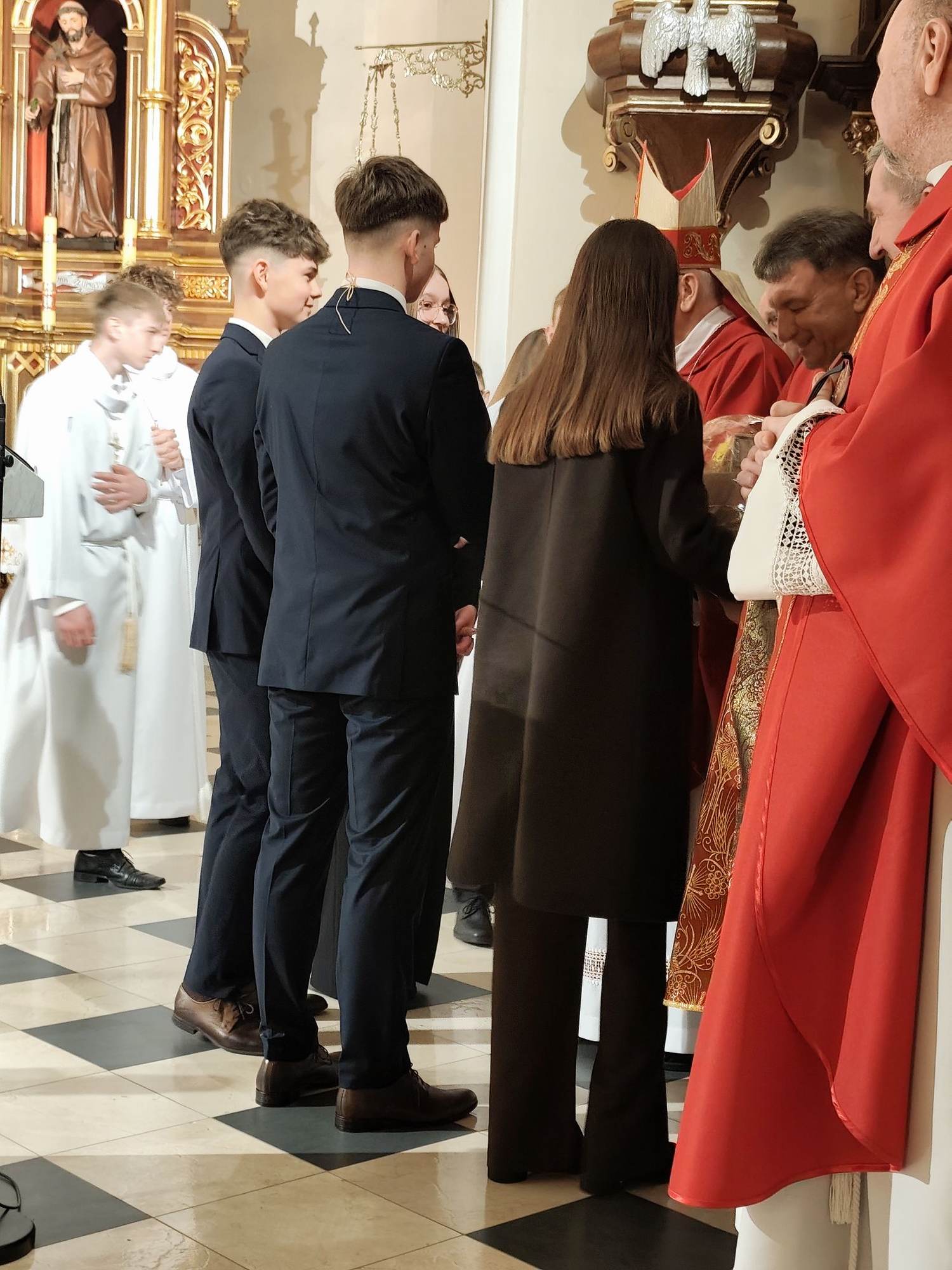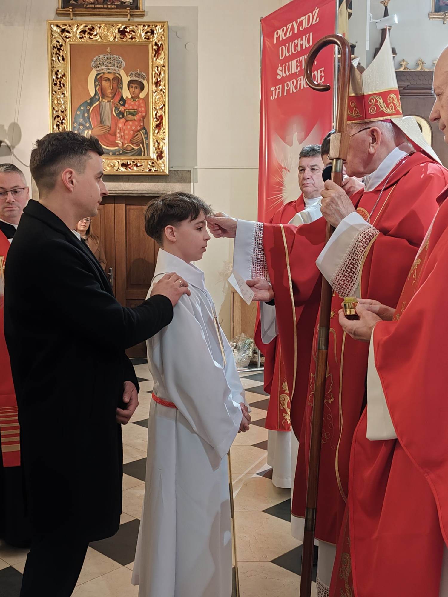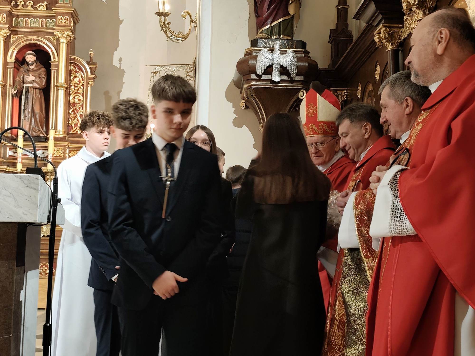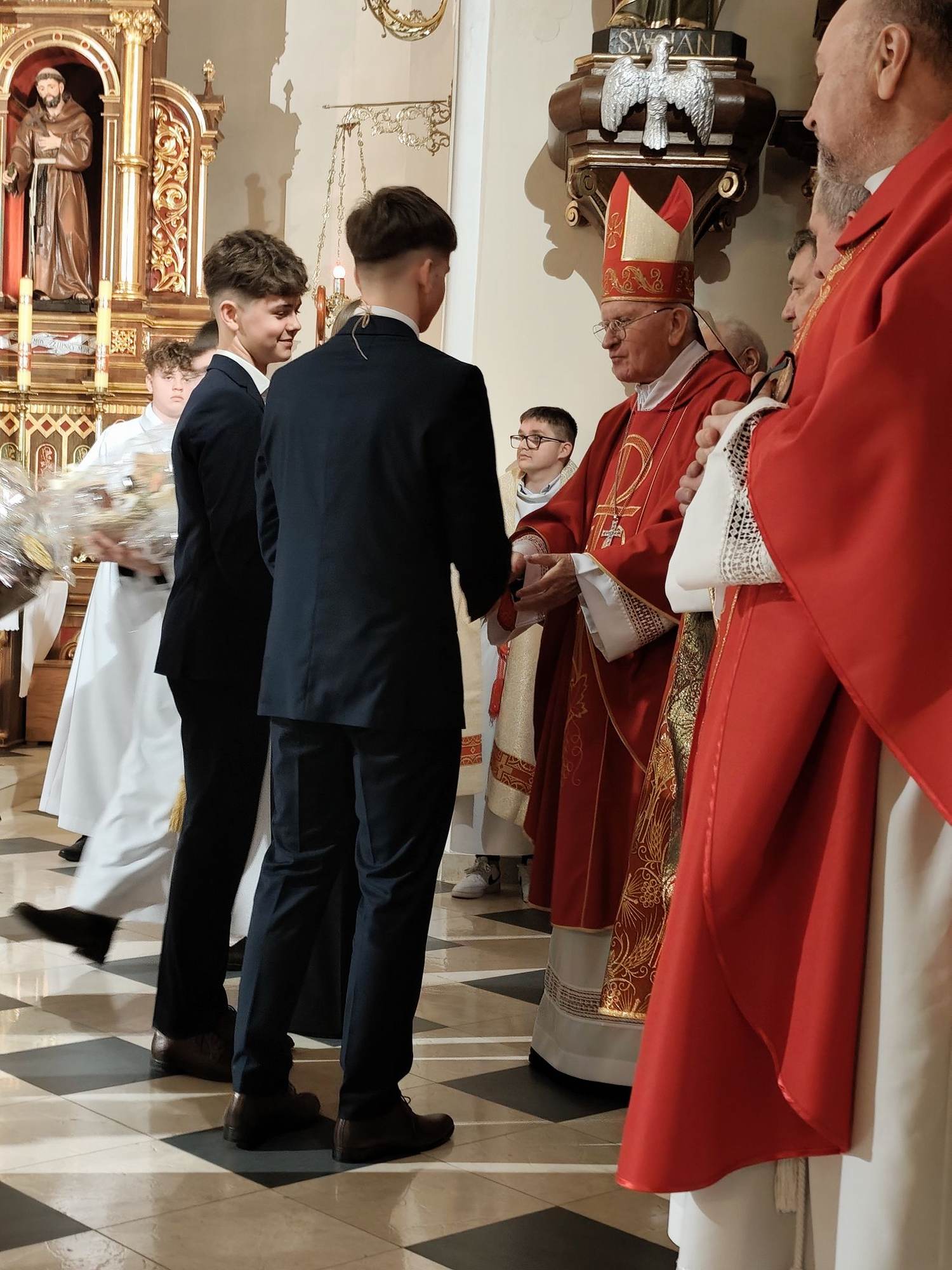 Ósmoklasiści z Bytomska (10), Rozdziela ( 6), Żegociny ( 23) i Kamionnej( 16) otrzymali 17 lutego sakrament bierzmowania, którego udzielił im abp Henryk Józef Nowacki. Sakrament dojrzałości przyjęło 55 młodych ludzi. Do tego sakramentu dojrzałości przygotowywali młodzież naszej parafii w SP Rozdziele – ks. Piotr Klóska, a w SP Żegocina i w SP Bytomsko – Ks. Robert Osak. On też przygotował młodzież parafii do uroczystości bierzmowania przez kilkudniowe spotkania w kościele, Słowo Boże i próby. O udzielenie sakramentu dojrzałości kandydatom poprosiła najpierw delegacja rodziców Państwo Anna i Wojciech Wrona - a w imieniu Parafii Żegocina i Kamionna ks. proboszcz Bogusław Pasierb, który złożył oświadczenie, że kandydaci dobrze przygotowali się do tego sakramentu, będącego uzupełnieniem chrztu świętego. Mszę świętą razem z ks. Arcybiskupem celebrowali księża proboszczowie parafii Kamionna i Żegocina, ks. dziekan dekanatu lipnickiego Ryszard Kołodziej, ks. Jan Wąchała, ks. Mariusz Berko oraz ks. Zbigniew Kępa – nasz rodak pochodzący z Żegociny. Na zakończenie nabożeństwa ks. Arcybiskup udzielił pasterskiego błogosławieństwa, a młodzież podziękowała mu i wszystkim, którzy pomogli jej w drodze do sakramentu. Na pamiątkę tego ważnego wydarzenia bierzmowani otrzymali książki, z podpisem ks. Arcybiskupa, które będą im przypominały ten dzień. Na zakończenie wykonano pamiątkowe zdjęcia.
