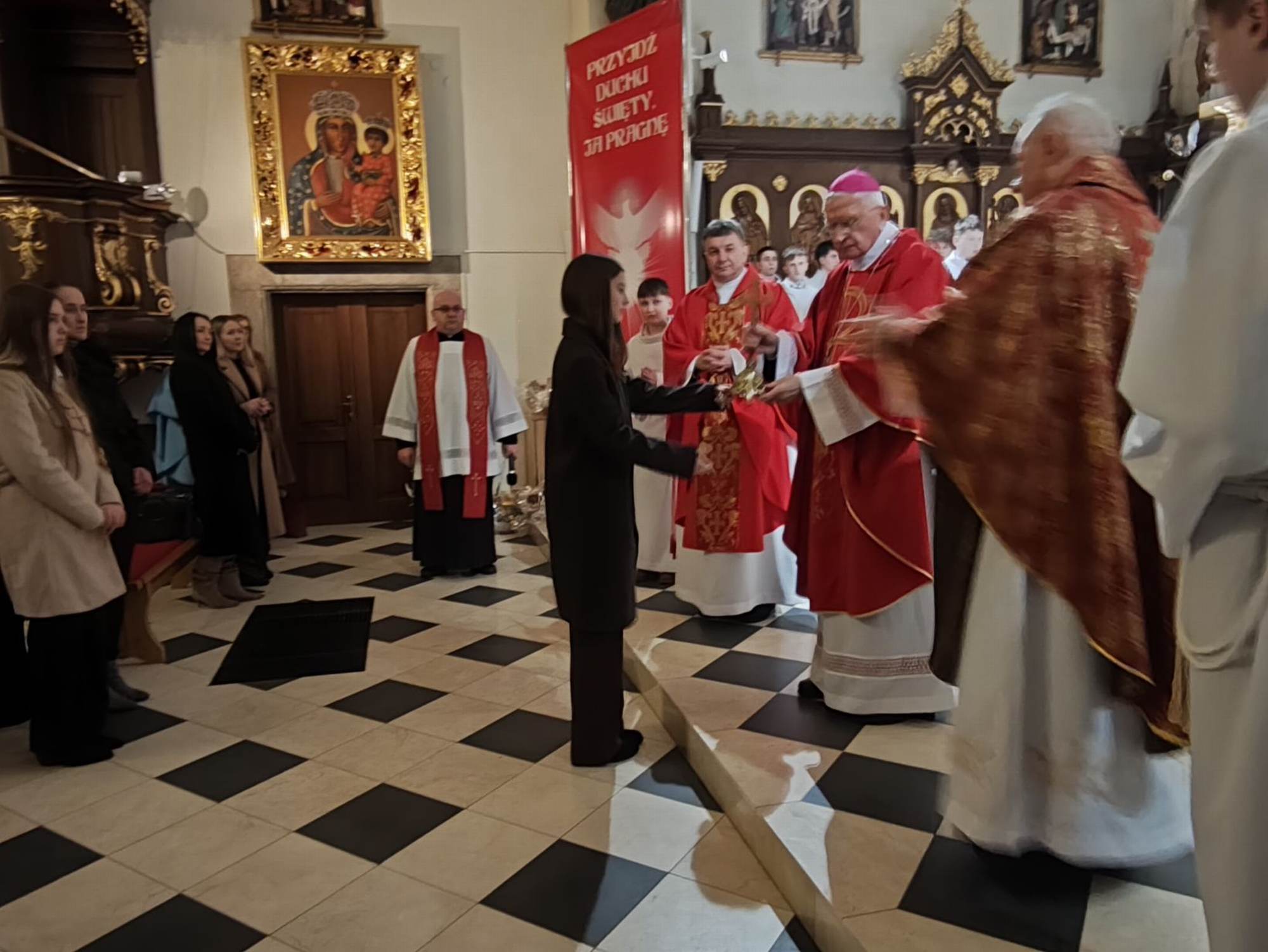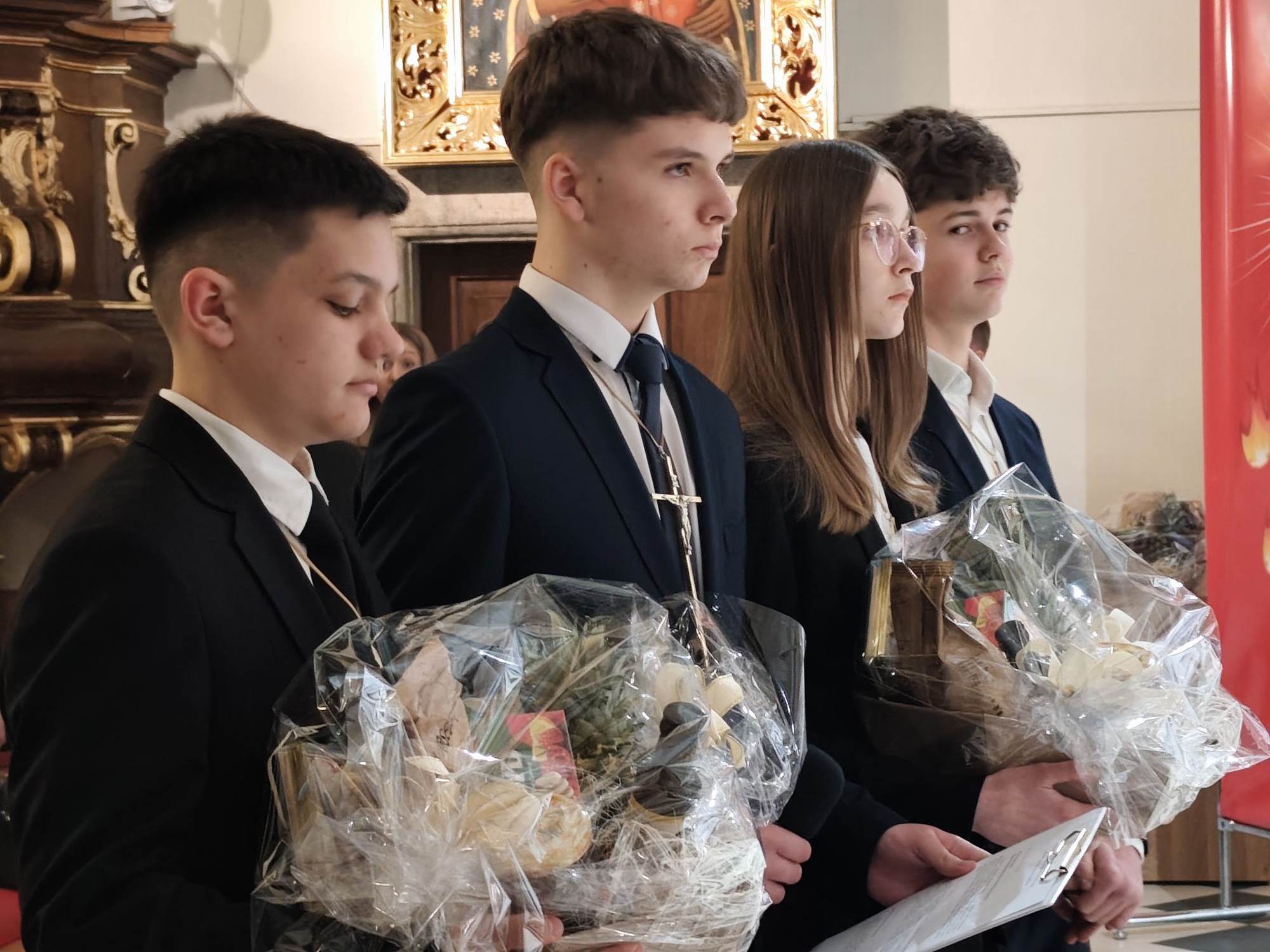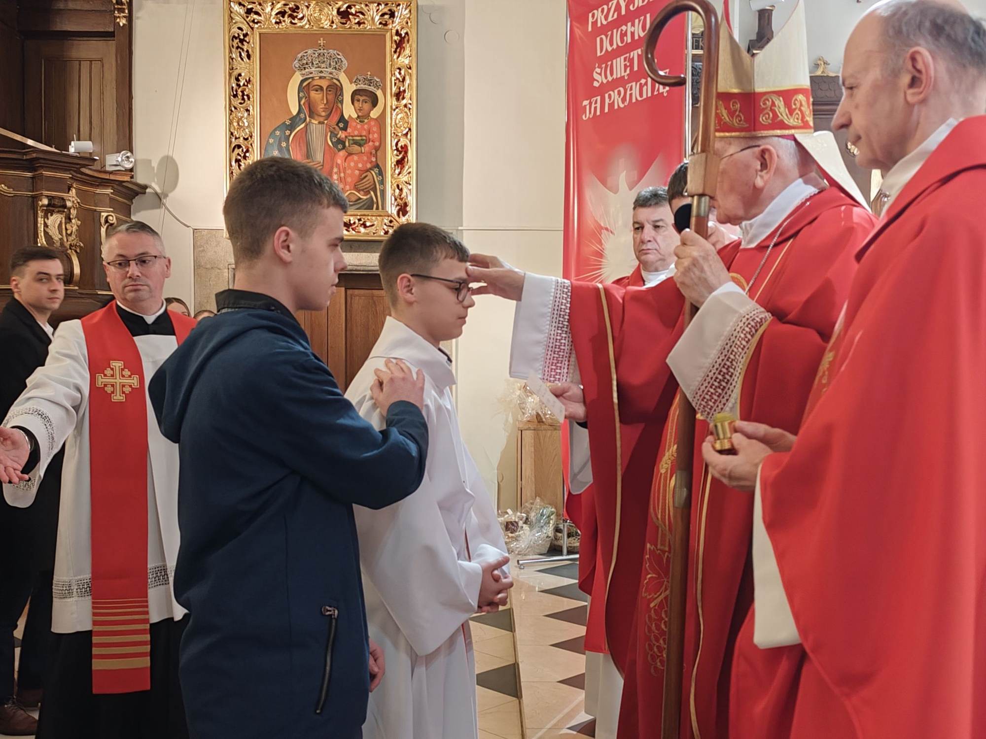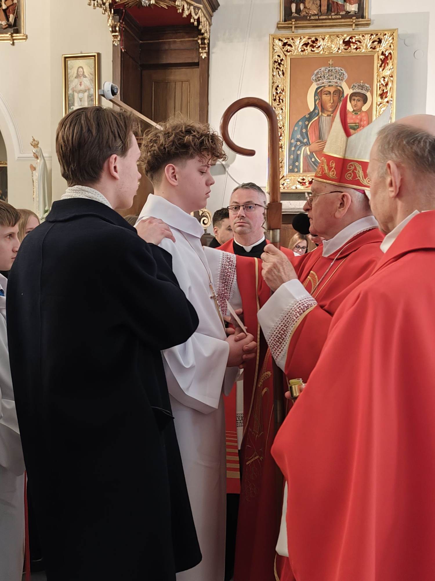 Ósmoklasiści z Bytomska (10), Rozdziela ( 6), Żegociny ( 23) i Kamionnej( 16) otrzymali 17 lutego sakrament bierzmowania, którego udzielił im abp Henryk Józef Nowacki. Sakrament dojrzałości przyjęło 55 młodych ludzi. Do tego sakramentu dojrzałości przygotowywali młodzież naszej parafii w SP Rozdziele – ks. Piotr Klóska, a w SP Żegocina i w SP Bytomsko – Ks. Robert Osak. On też przygotował młodzież parafii do uroczystości bierzmowania przez kilkudniowe spotkania w kościele, Słowo Boże i próby. O udzielenie sakramentu dojrzałości kandydatom poprosiła najpierw delegacja rodziców Państwo Anna i Wojciech Wrona - a w imieniu Parafii Żegocina i Kamionna ks. proboszcz Bogusław Pasierb, który złożył oświadczenie, że kandydaci dobrze przygotowali się do tego sakramentu, będącego uzupełnieniem chrztu świętego. Mszę świętą razem z ks. Arcybiskupem celebrowali księża proboszczowie parafii Kamionna i Żegocina, ks. dziekan dekanatu lipnickiego Ryszard Kołodziej, ks. Jan Wąchała, ks. Mariusz Berko oraz ks. Zbigniew Kępa – nasz rodak pochodzący z Żegociny. Na zakończenie nabożeństwa ks. Arcybiskup udzielił pasterskiego błogosławieństwa, a młodzież podziękowała mu i wszystkim, którzy pomogli jej w drodze do sakramentu. Na pamiątkę tego ważnego wydarzenia bierzmowani otrzymali książki, z podpisem ks. Arcybiskupa, które będą im przypominały ten dzień. Na zakończenie wykonano pamiątkowe zdjęcia.
