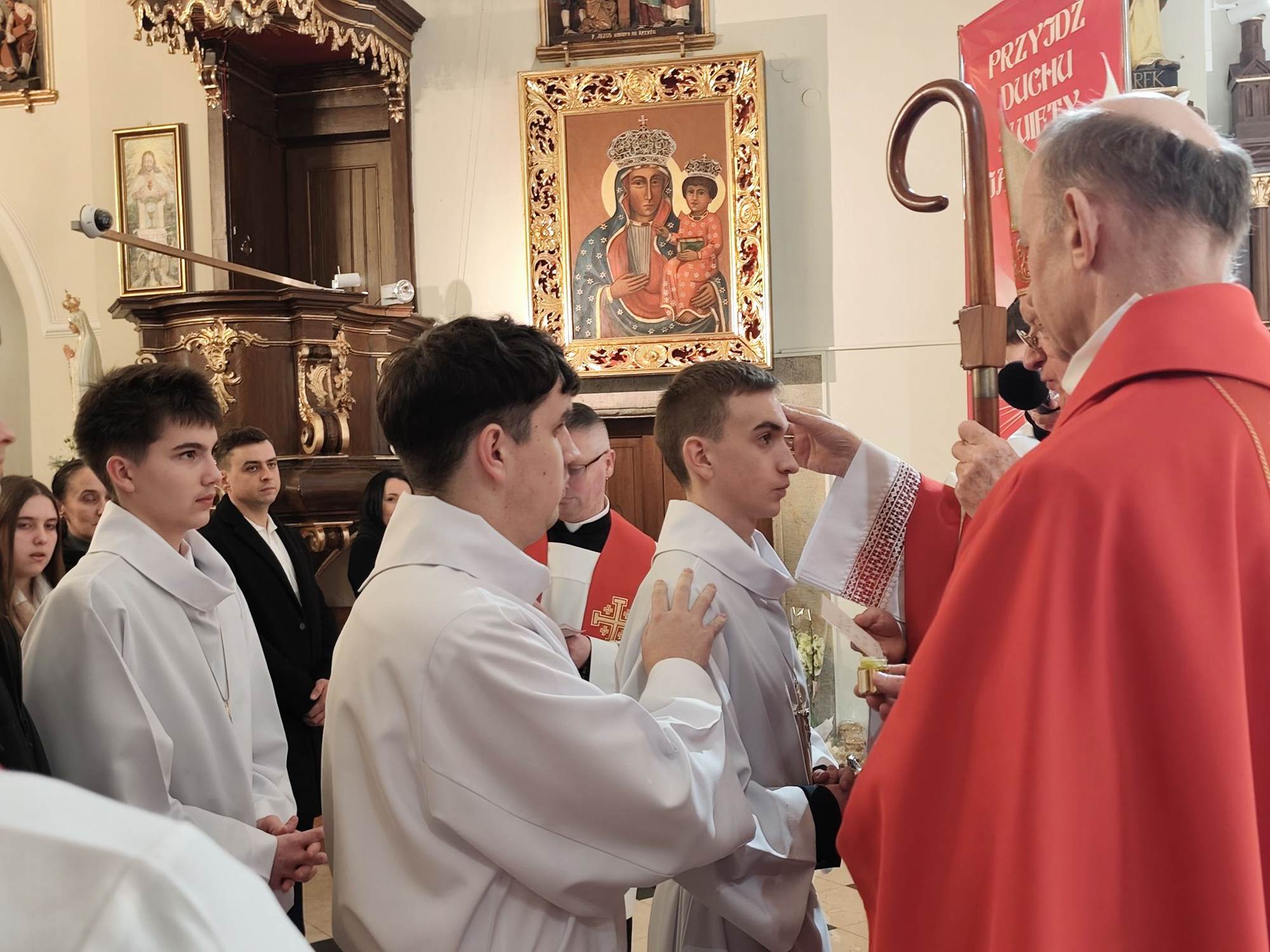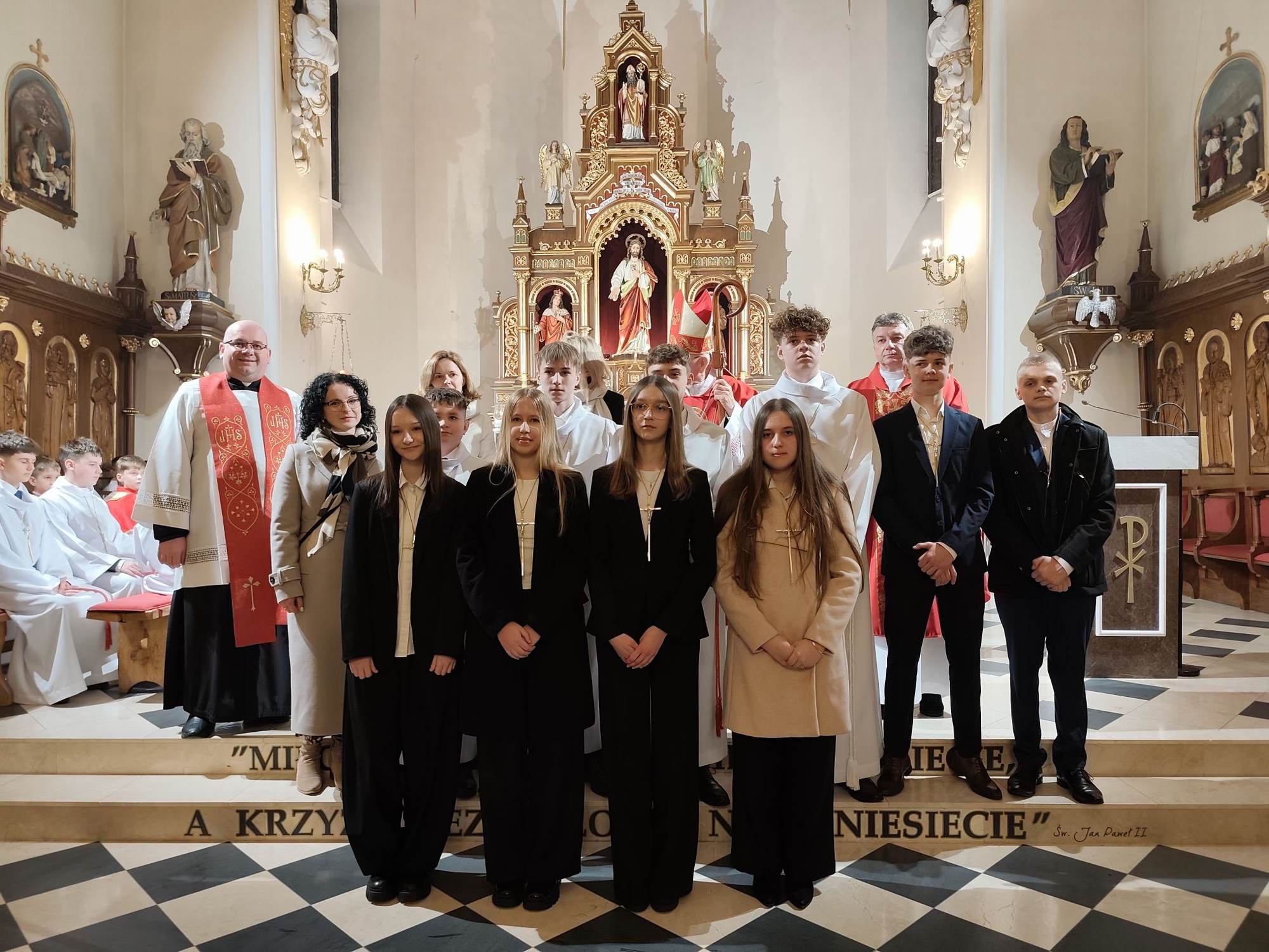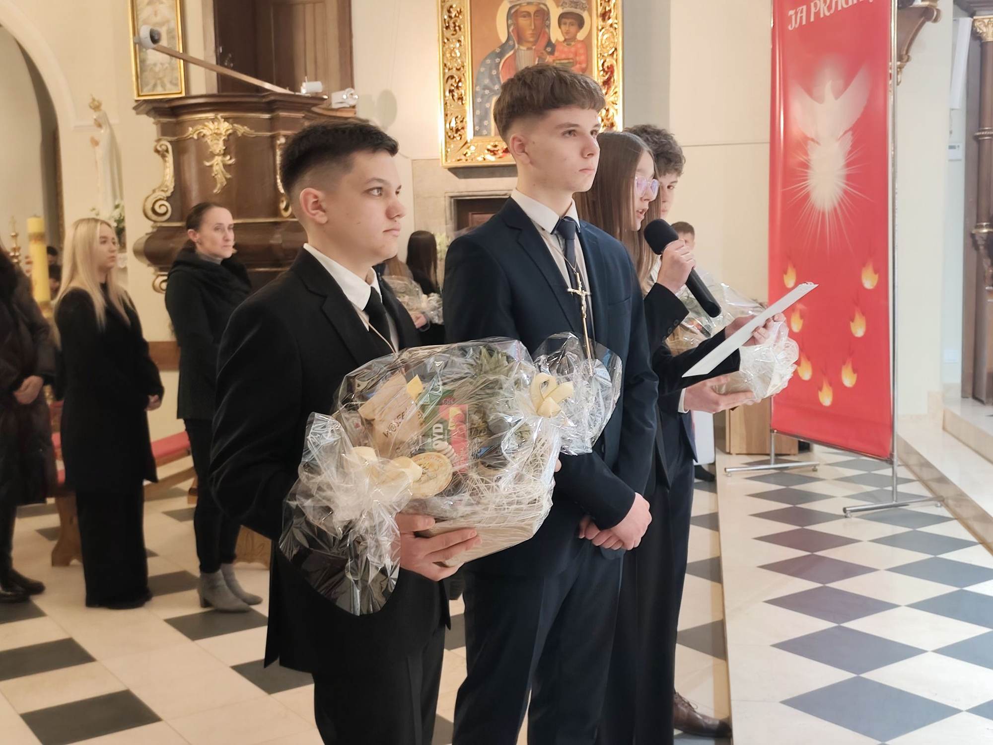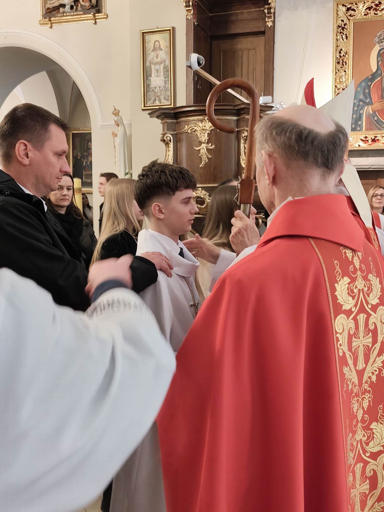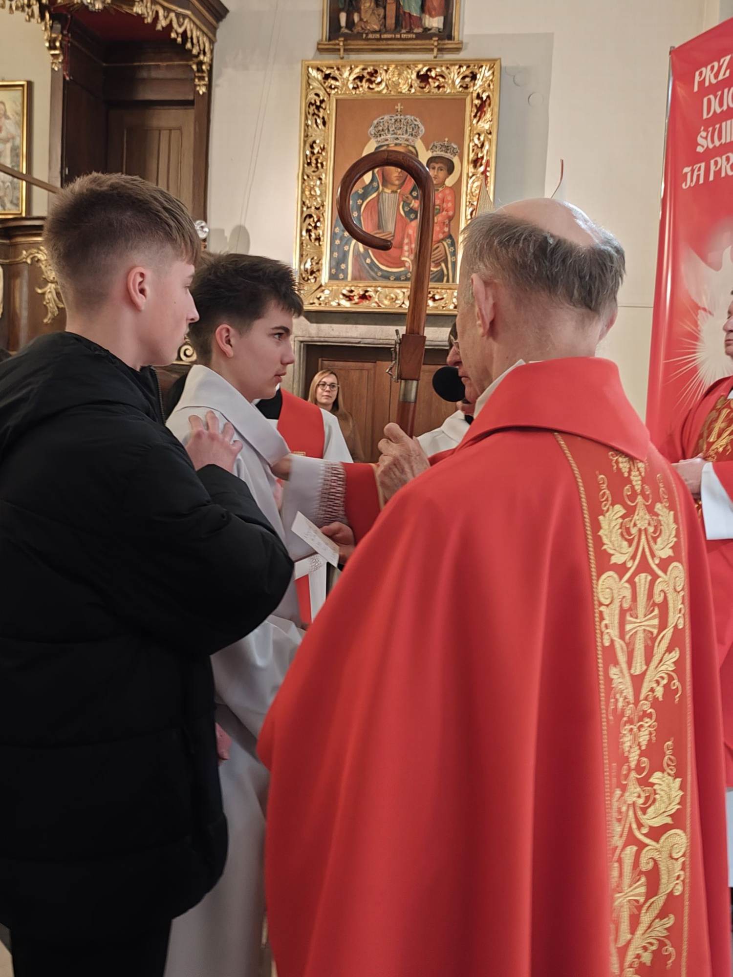 Ósmoklasiści z Bytomska (10), Rozdziela ( 6), Żegociny ( 23) i Kamionnej( 16) otrzymali 17 lutego sakrament bierzmowania, którego udzielił im abp Henryk Józef Nowacki. Sakrament dojrzałości przyjęło 55 młodych ludzi. Do tego sakramentu dojrzałości przygotowywali młodzież naszej parafii w SP Rozdziele – ks. Piotr Klóska, a w SP Żegocina i w SP Bytomsko – Ks. Robert Osak. On też przygotował młodzież parafii do uroczystości bierzmowania przez kilkudniowe spotkania w kościele, Słowo Boże i próby. O udzielenie sakramentu dojrzałości kandydatom poprosiła najpierw delegacja rodziców Państwo Anna i Wojciech Wrona - a w imieniu Parafii Żegocina i Kamionna ks. proboszcz Bogusław Pasierb, który złożył oświadczenie, że kandydaci dobrze przygotowali się do tego sakramentu, będącego uzupełnieniem chrztu świętego. Mszę świętą razem z ks. Arcybiskupem celebrowali księża proboszczowie parafii Kamionna i Żegocina, ks. dziekan dekanatu lipnickiego Ryszard Kołodziej, ks. Jan Wąchała, ks. Mariusz Berko oraz ks. Zbigniew Kępa – nasz rodak pochodzący z Żegociny. Na zakończenie nabożeństwa ks. Arcybiskup udzielił pasterskiego błogosławieństwa, a młodzież podziękowała mu i wszystkim, którzy pomogli jej w drodze do sakramentu. Na pamiątkę tego ważnego wydarzenia bierzmowani otrzymali książki, z podpisem ks. Arcybiskupa, które będą im przypominały ten dzień. Na zakończenie wykonano pamiątkowe zdjęcia.