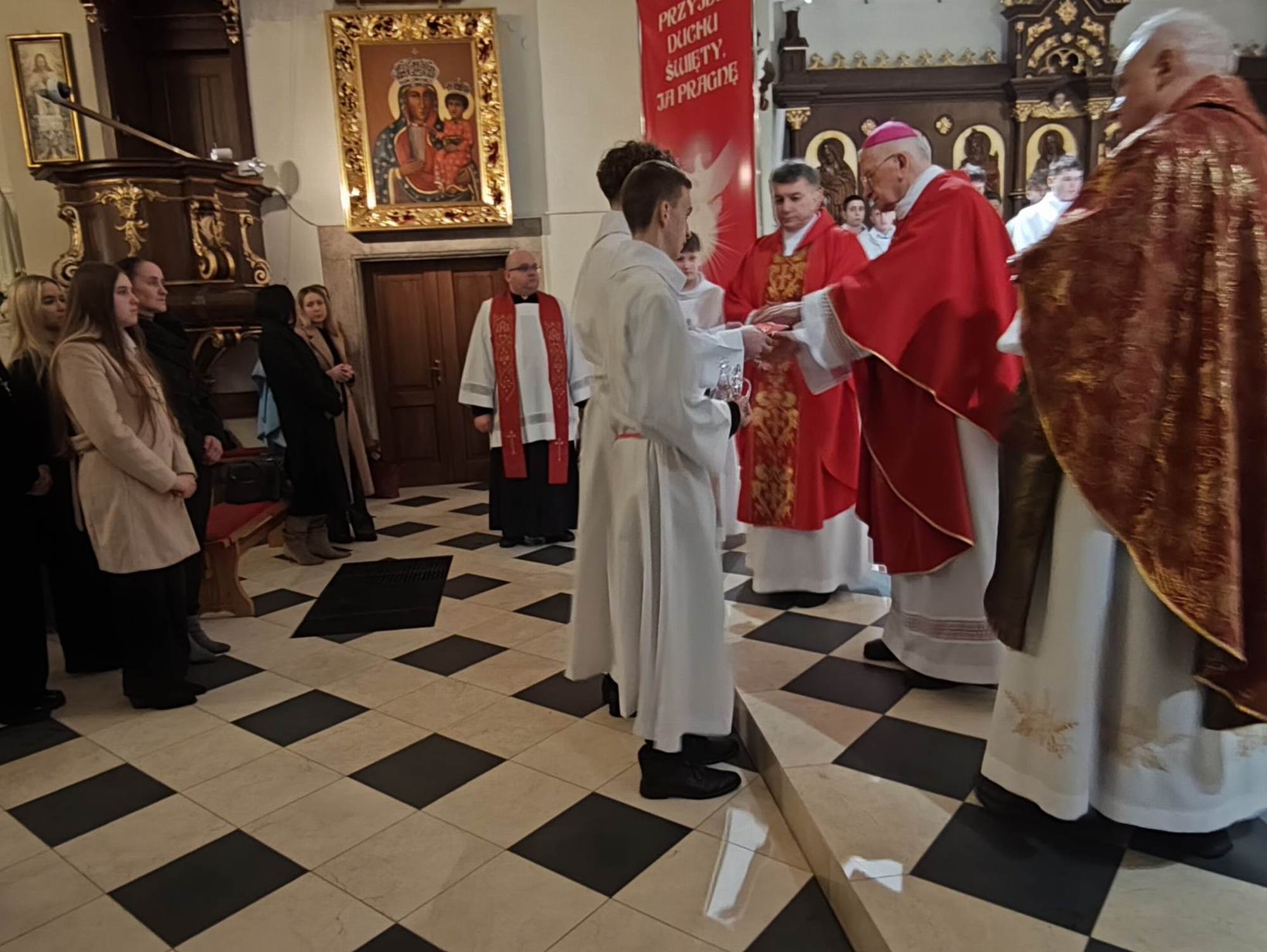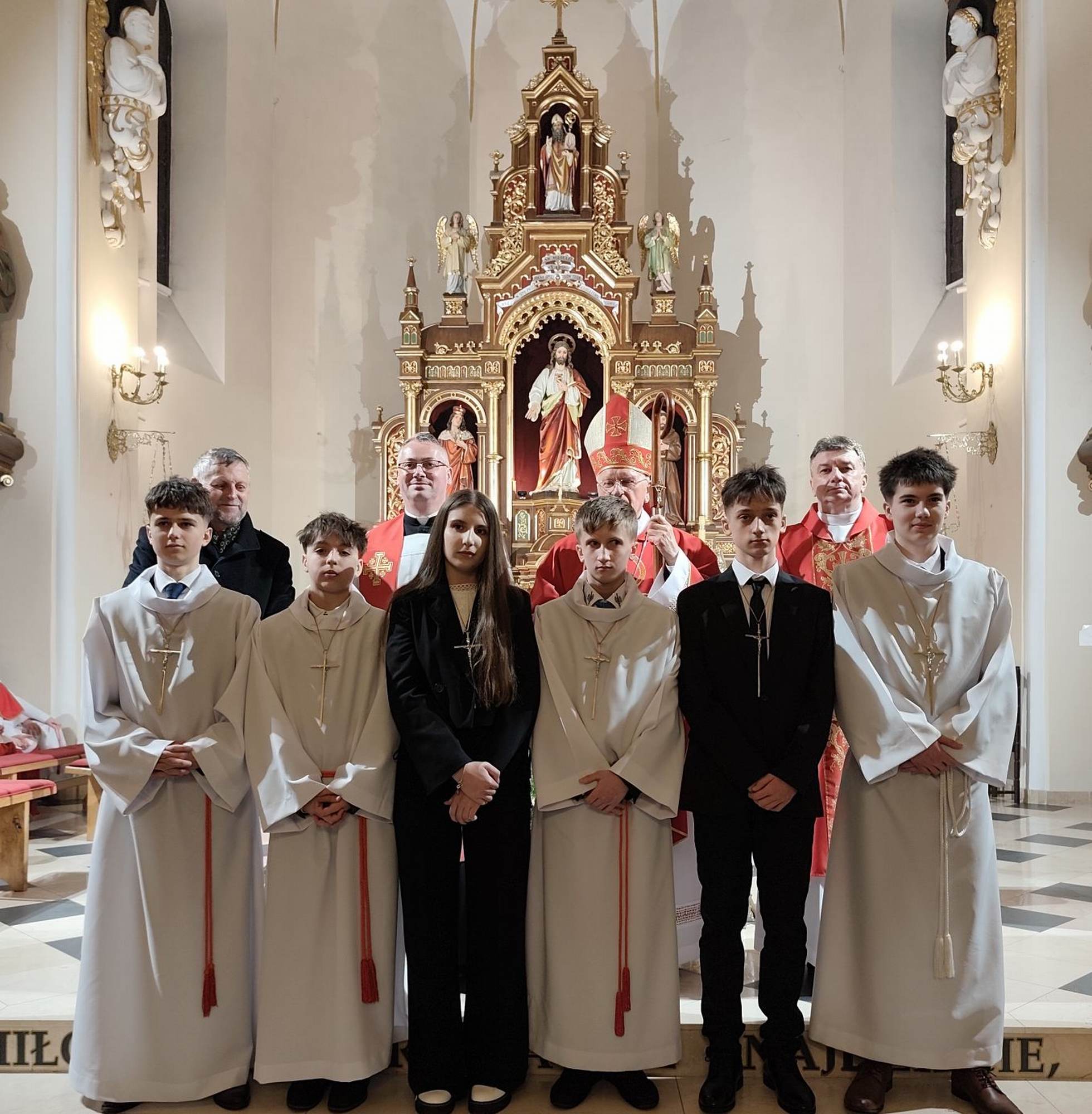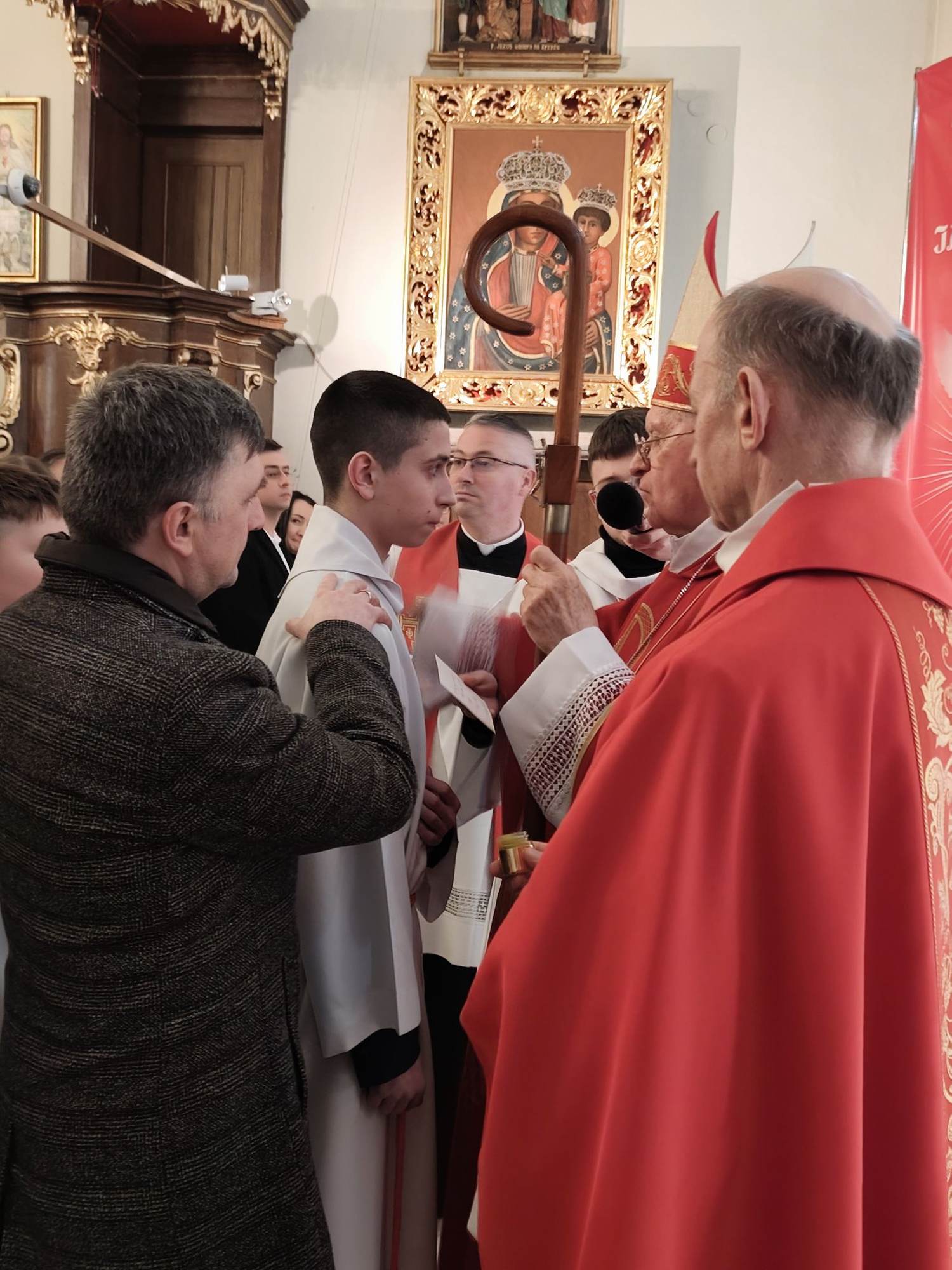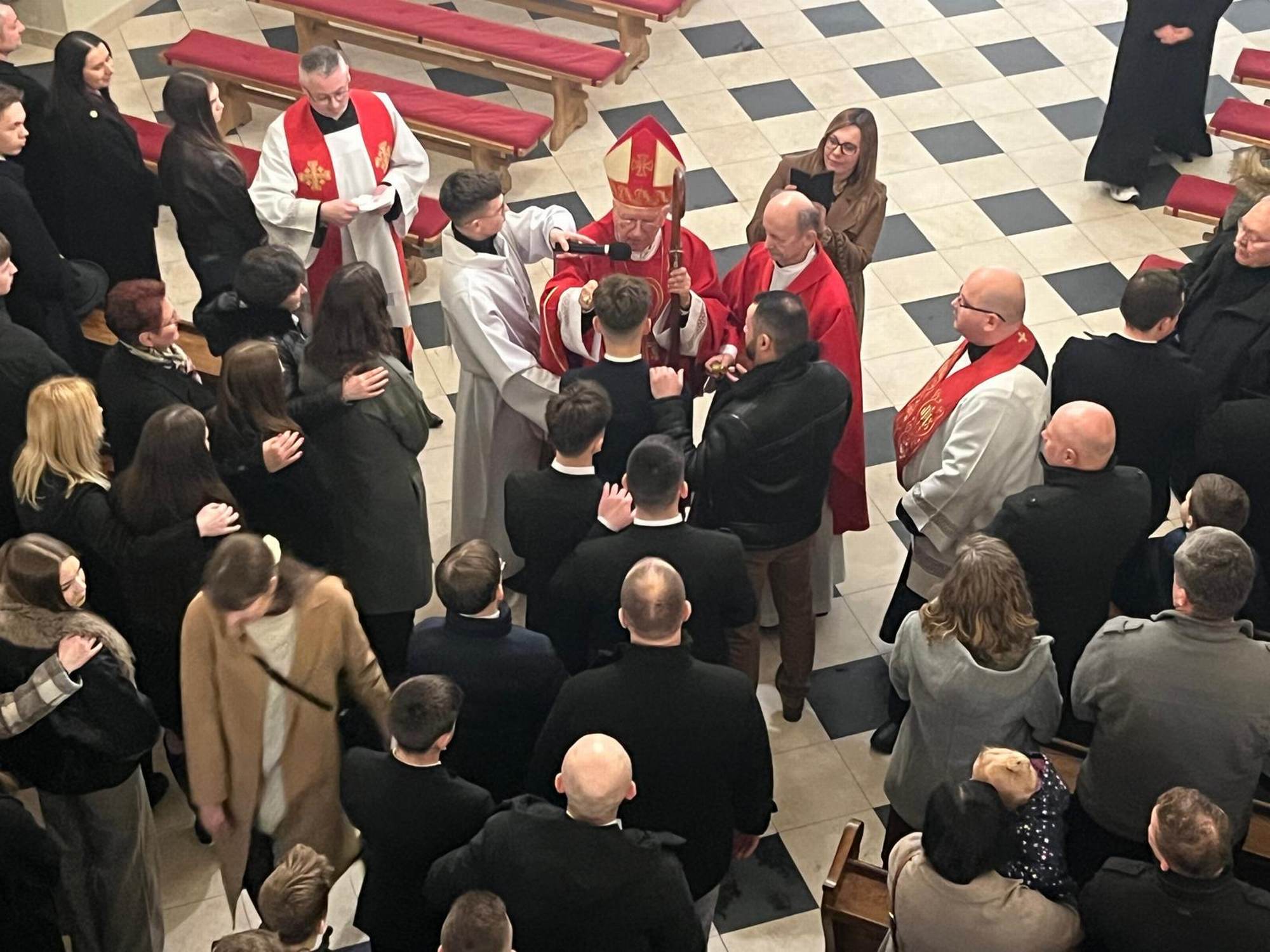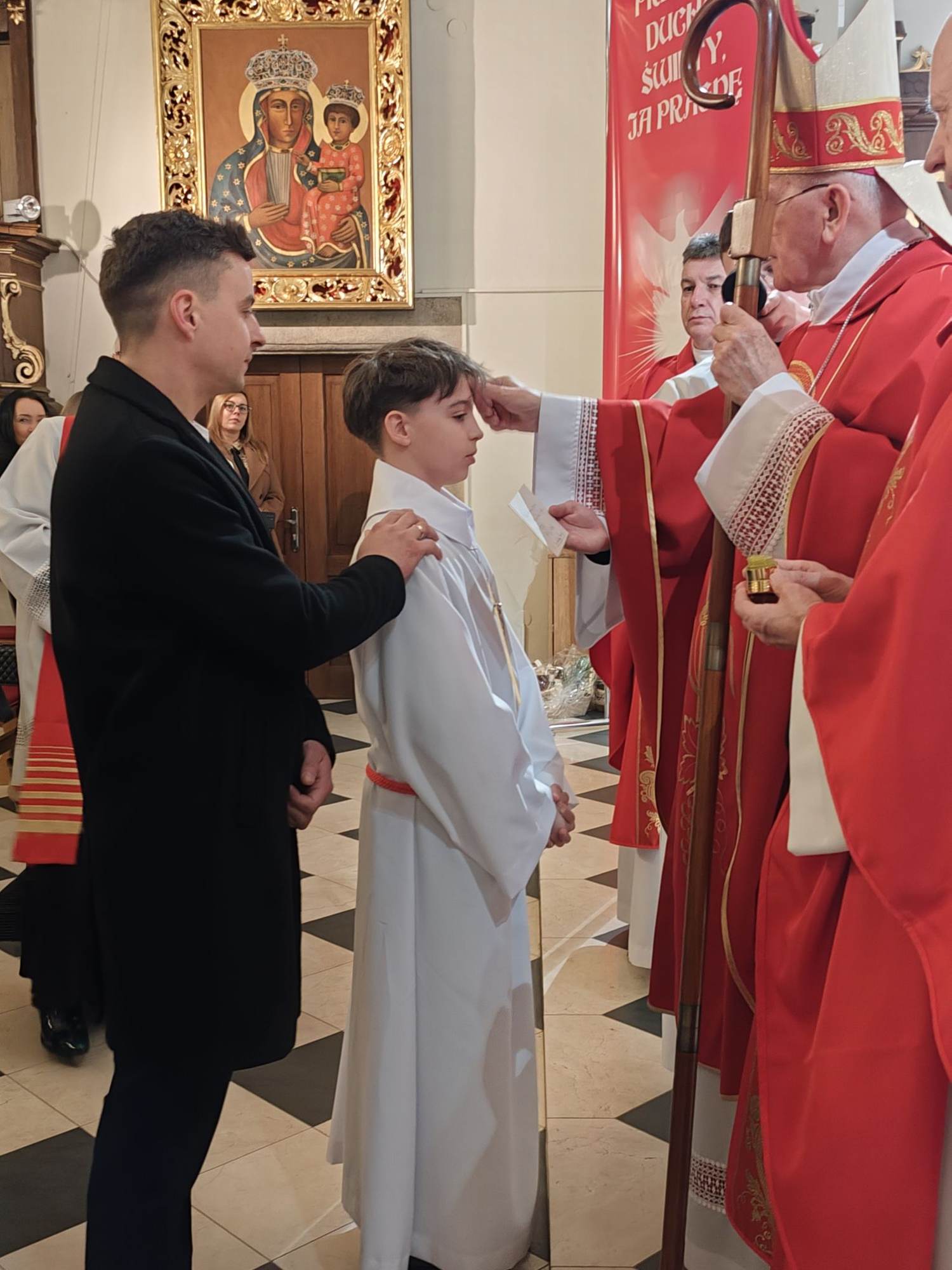 Ósmoklasiści z Bytomska (10), Rozdziela ( 6), Żegociny ( 23) i Kamionnej( 16) otrzymali 17 lutego sakrament bierzmowania, którego udzielił im abp Henryk Józef Nowacki. Sakrament dojrzałości przyjęło 55 młodych ludzi. Do tego sakramentu dojrzałości przygotowywali młodzież naszej parafii w SP Rozdziele – ks. Piotr Klóska, a w SP Żegocina i w SP Bytomsko – Ks. Robert Osak. On też przygotował młodzież parafii do uroczystości bierzmowania przez kilkudniowe spotkania w kościele, Słowo Boże i próby. O udzielenie sakramentu dojrzałości kandydatom poprosiła najpierw delegacja rodziców Państwo Anna i Wojciech Wrona - a w imieniu Parafii Żegocina i Kamionna ks. proboszcz Bogusław Pasierb, który złożył oświadczenie, że kandydaci dobrze przygotowali się do tego sakramentu, będącego uzupełnieniem chrztu świętego. Mszę świętą razem z ks. Arcybiskupem celebrowali księża proboszczowie parafii Kamionna i Żegocina, ks. dziekan dekanatu lipnickiego Ryszard Kołodziej, ks. Jan Wąchała, ks. Mariusz Berko oraz ks. Zbigniew Kępa – nasz rodak pochodzący z Żegociny. Na zakończenie nabożeństwa ks. Arcybiskup udzielił pasterskiego błogosławieństwa, a młodzież podziękowała mu i wszystkim, którzy pomogli jej w drodze do sakramentu. Na pamiątkę tego ważnego wydarzenia bierzmowani otrzymali książki, z podpisem ks. Arcybiskupa, które będą im przypominały ten dzień. Na zakończenie wykonano pamiątkowe zdjęcia.