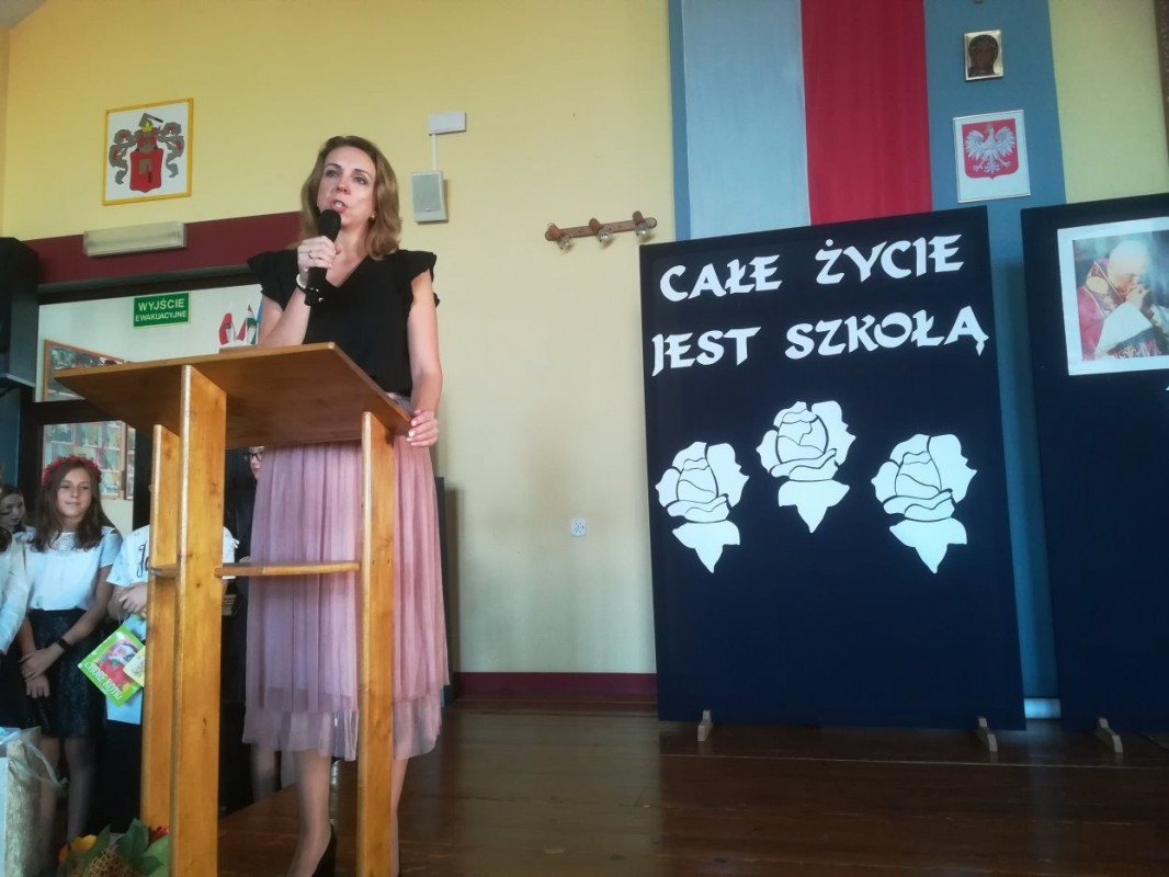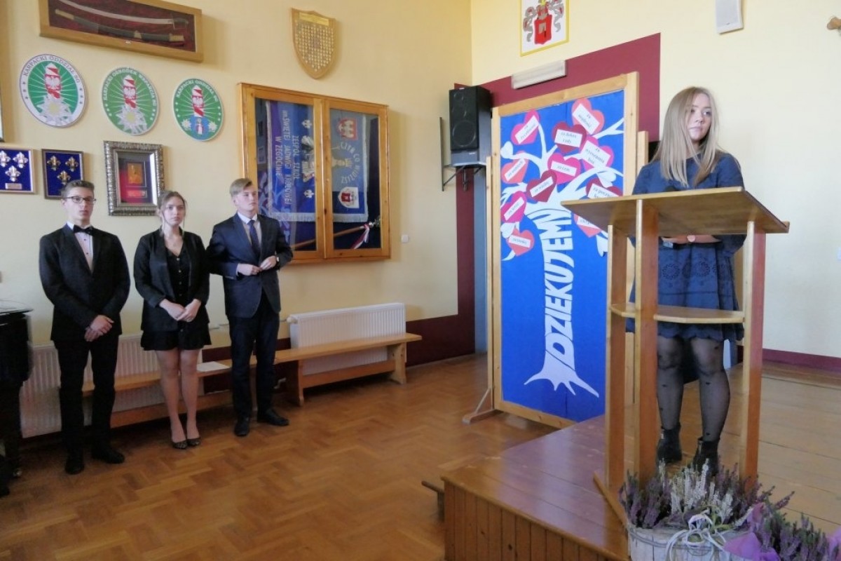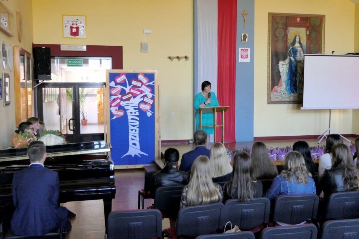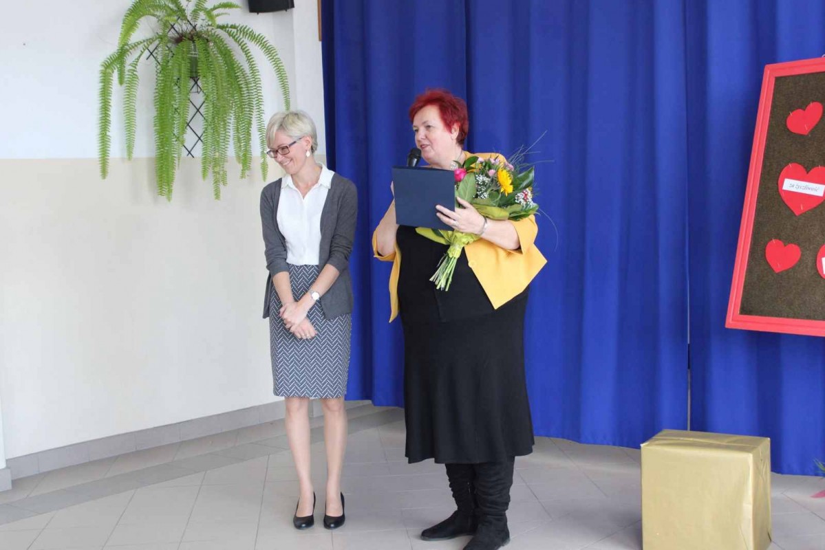 Podczas akademii Dyrektor Katarzyna Sutor, w podziękowaniu za wyróżniająca pracę dydaktyczno – wychowawczą wręczyła Nagrodę Dyrektora Szkoły nauczycielce, polonistce – Pani Stanisławie Ziółkowskiej.