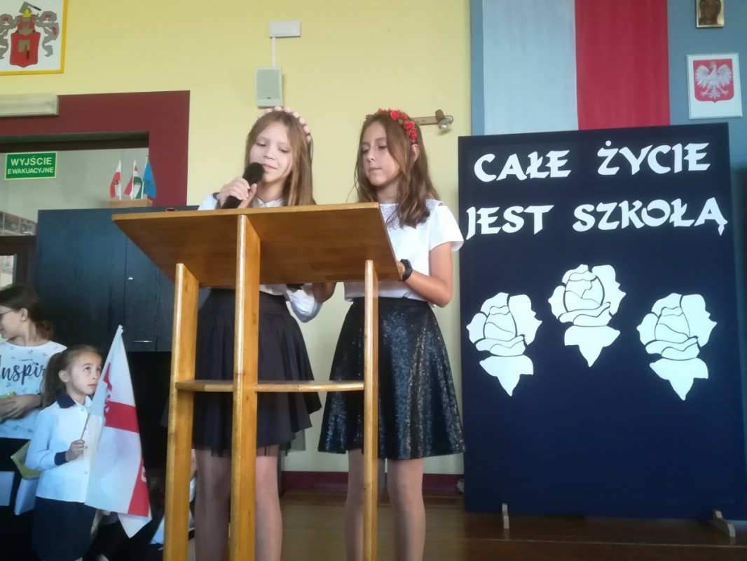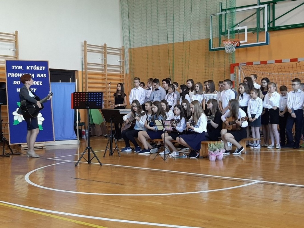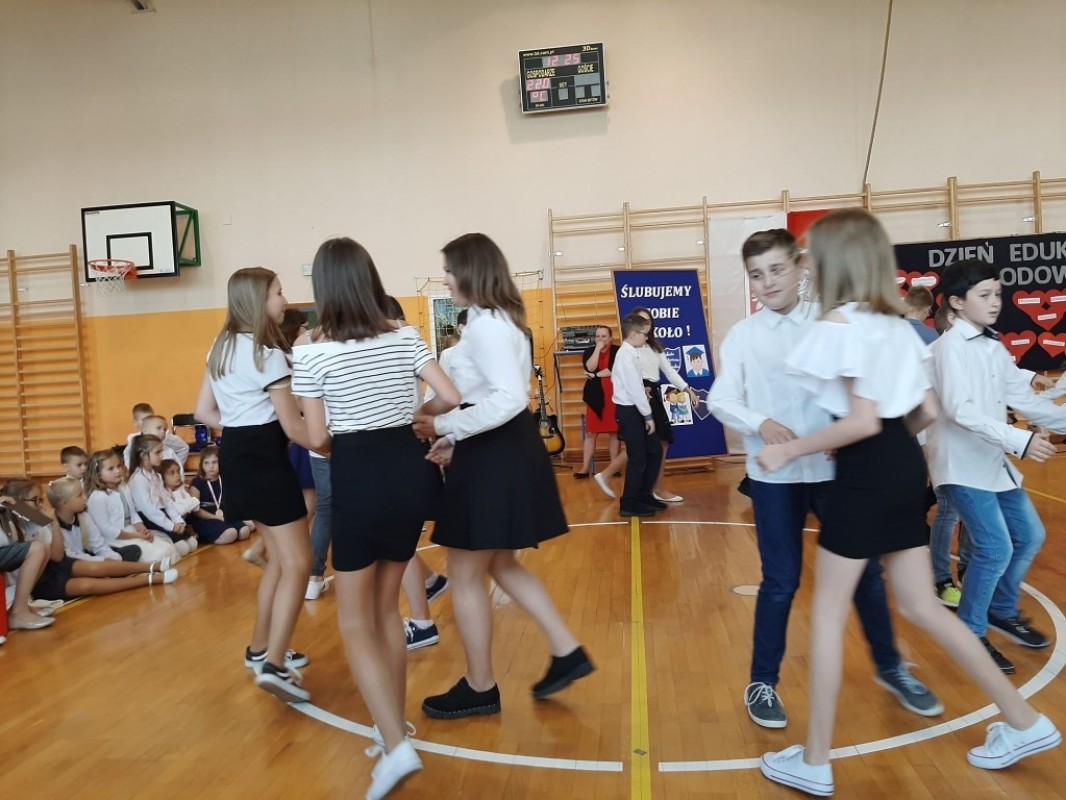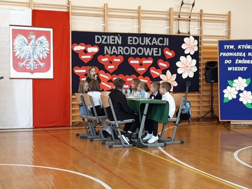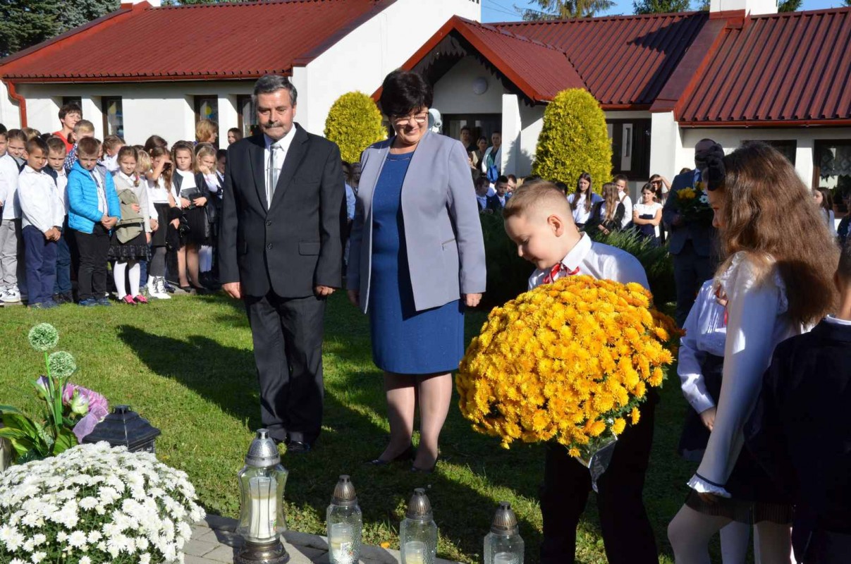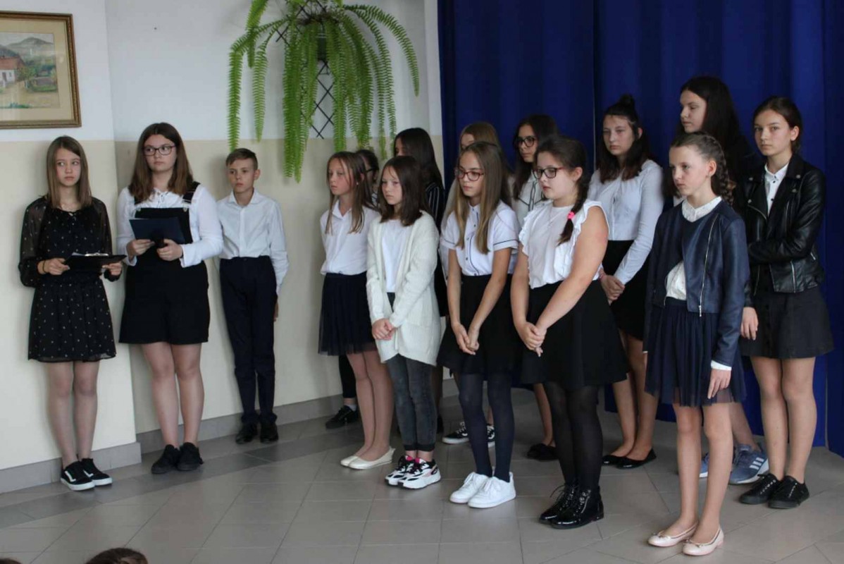 Z kolei 15 października. uczniowie szkoły podstawowej przygotowali uroczystą akademię z okazji XIX Dnia Papieskiego i Dnia Edukacji Narodowej pod kierunkiem Pań: Bożeny Banaś, Anny Maurer – Pasionek i Wiesława Wolaka. W pierwszej części wspominano Pontyfikat Jana Pawła II i odśpiewano jego ulubioną piosenkę oazową „Barkę”. Druga część akademii poświęcona była pracy nauczycieli i pracowników administracji i obsługi szkoły. Uczniowie przygotowali pełną humoru prezentację strojów dla poszczególnych nauczycieli. Przewodnicząca Rady Rodziców – Pani Agnieszka Zbyrowska złożyła wszystkim nauczycielom życzenia oraz na ręce Pani Dyrektor wręczyła kwiaty. Uczniowie przekazali dla nauczycieli prezent –niespodziankę, który będzie służył wszystkim w pokoju nauczycielskim. Na zakończenie Pani Dyrektor podziękowała wszystkim uczniom i rodzicom za życzenia.