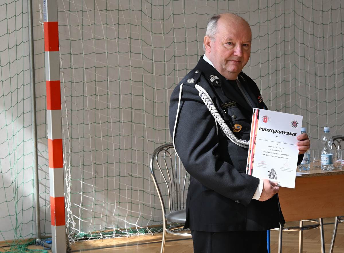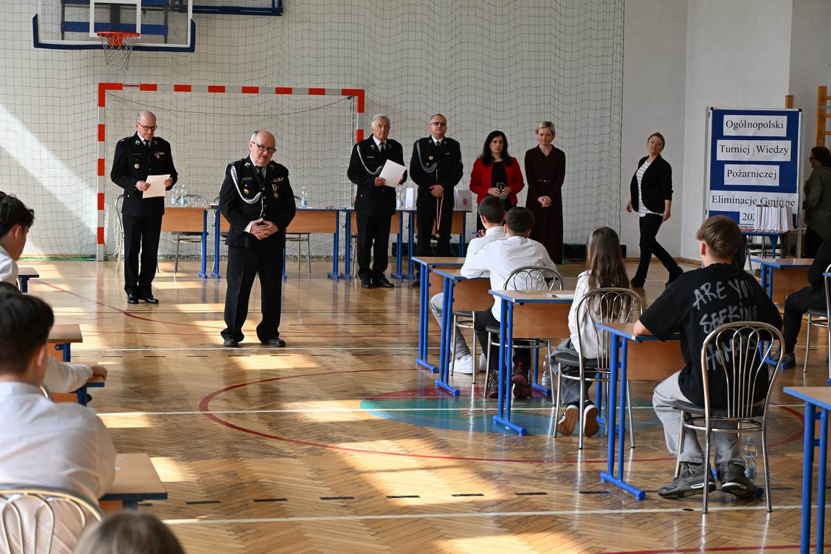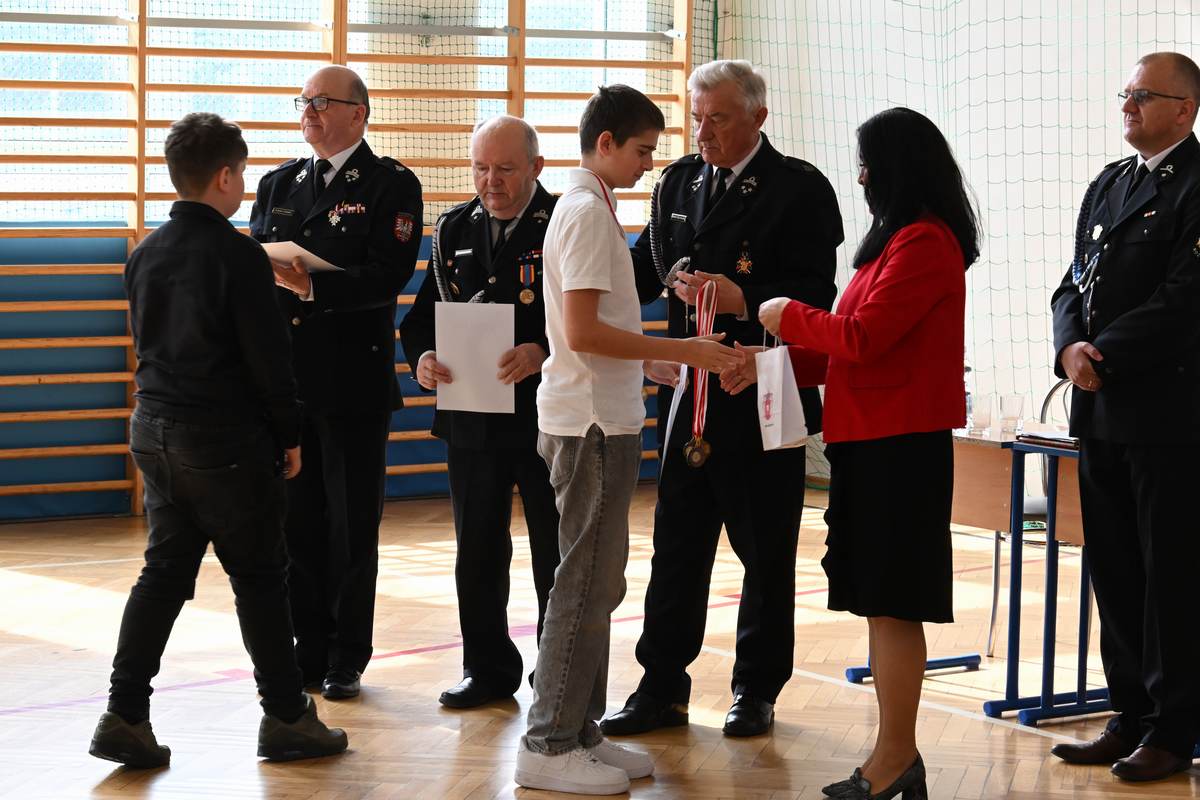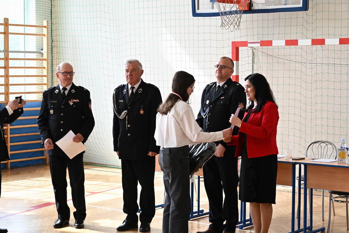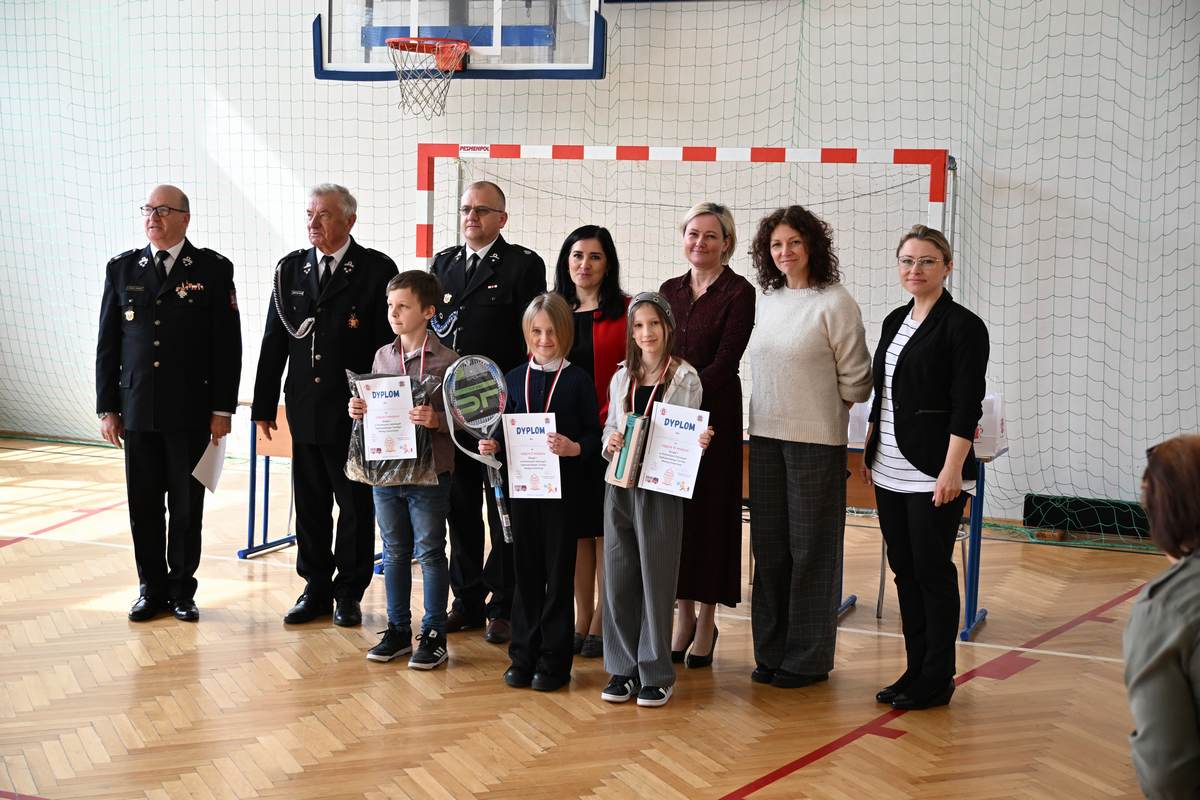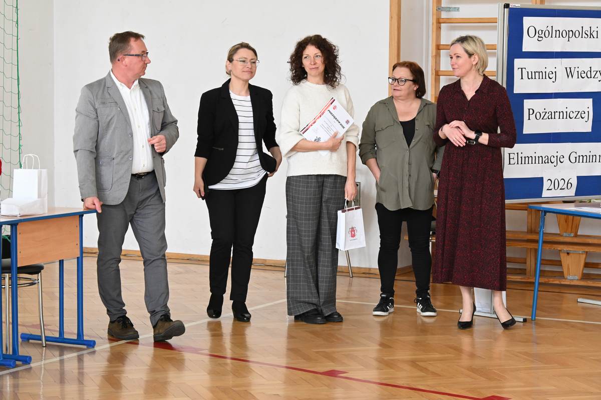 Dziękujemy pani dyrektor Katarzynie Cudejko – gospodarzowi tegorocznego konkursu. Wyrazy wdzięczności kierujemy do pana Tadeusza Olszewskiego za przygotowanie pytań oraz aktywny udział w pracach komisji, a także do pozostałych jej członków: Zastępcy Wójta Joanny Pyrz, Komendanta Gminnego OSP Janusza Stańdo oraz Prezesa Zarządu Oddziału Gminnego OSP RP Jerzego Błoniarza.
