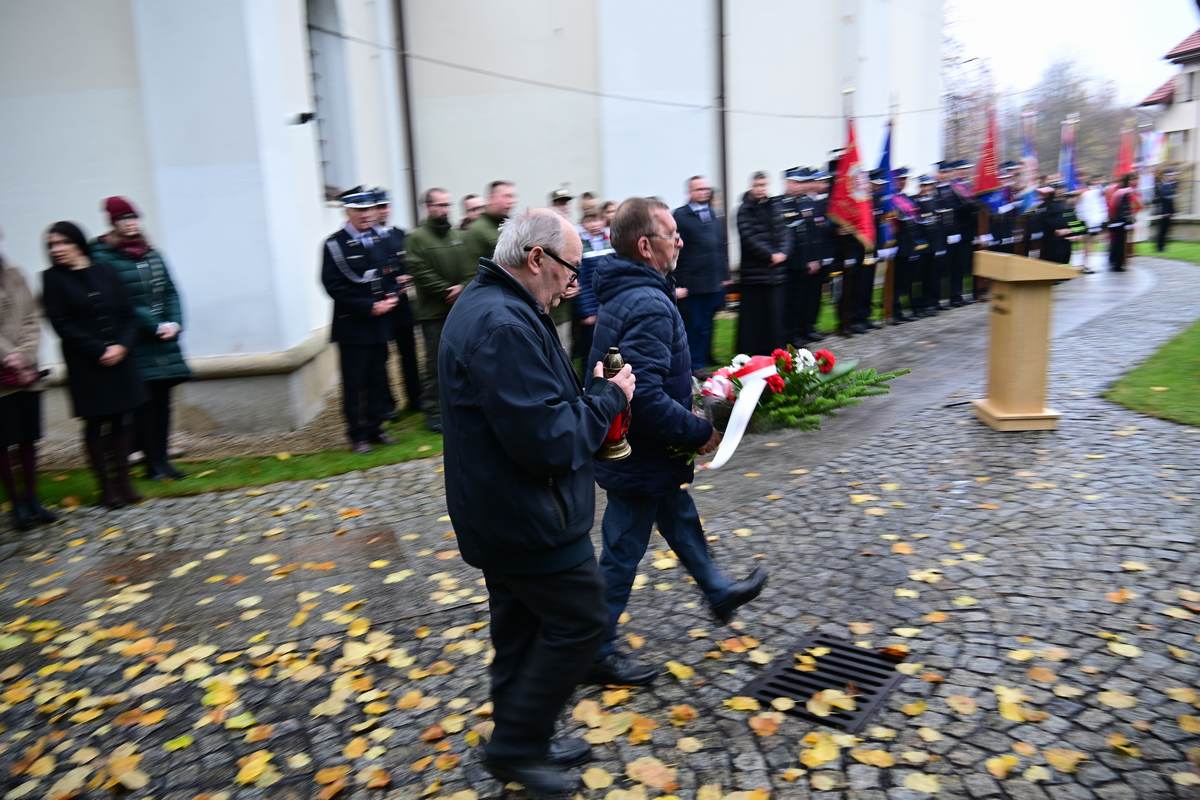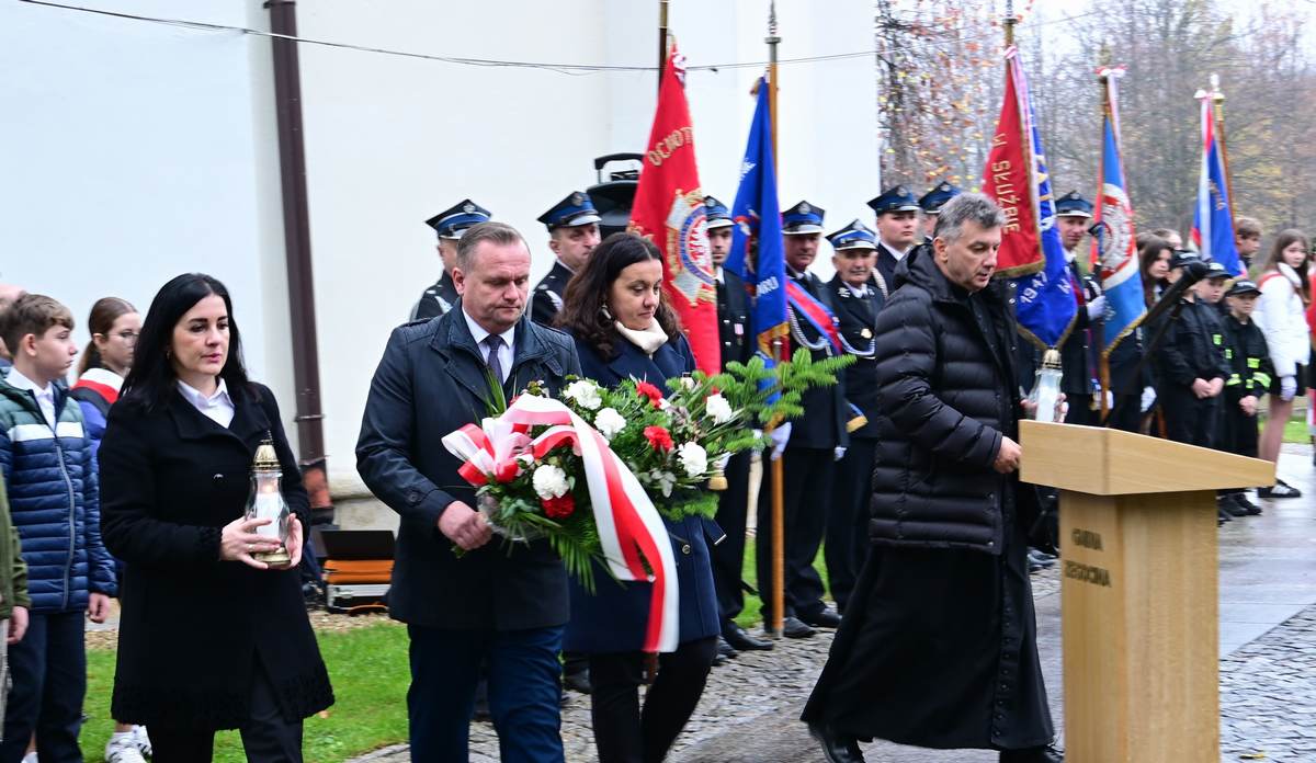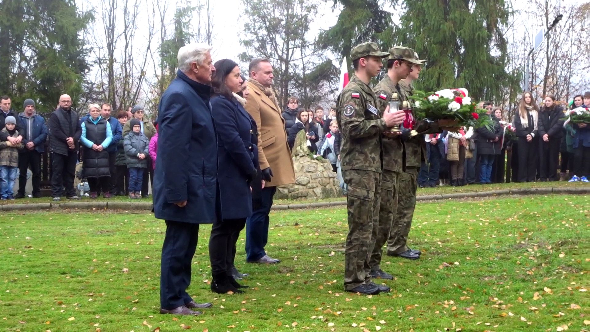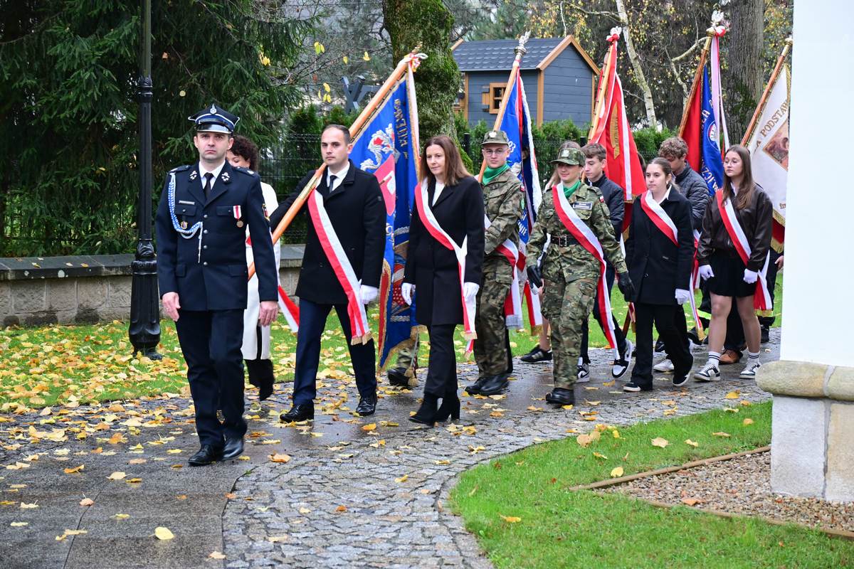 Po zakończeniu Mszy Świętej uczestnicy uroczystości przemaszerowali w asyście pocztów sztandarowych na cmentarz wojenny nr 301, zlokalizowany tuż przy kościele. Tam głos zabrał Wójt Gminy Wojciech Wrona, który podziękował wszystkim zebranym za obecność, pamięć i wspólne uczczenie narodowego święta. Następnie odśpiewano Hymn Narodowy.