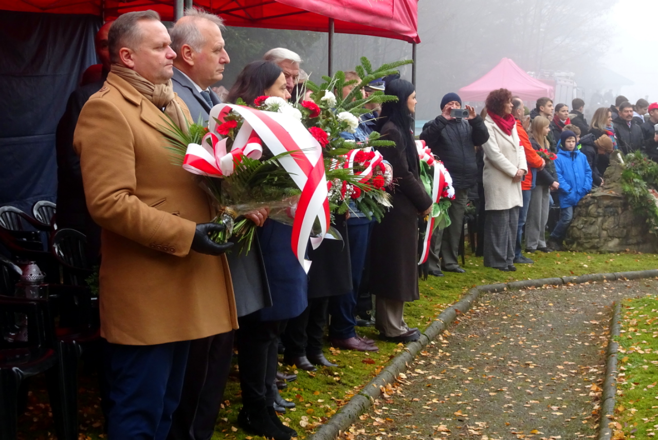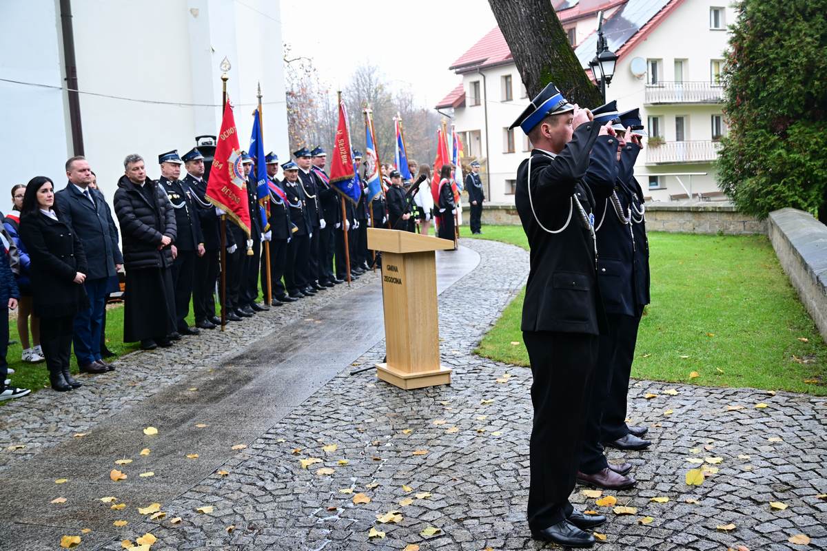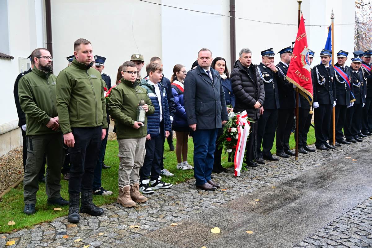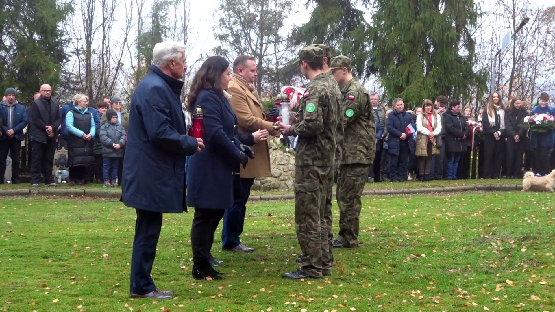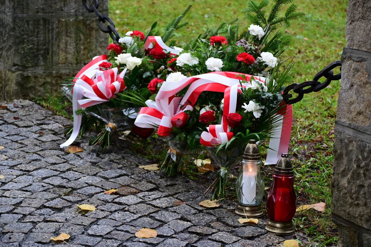 Po zakończeniu Mszy Świętej uczestnicy uroczystości przemaszerowali w asyście pocztów sztandarowych na cmentarz wojenny nr 301, zlokalizowany tuż przy kościele. Tam głos zabrał Wójt Gminy Wojciech Wrona, który podziękował wszystkim zebranym za obecność, pamięć i wspólne uczczenie narodowego święta. Następnie odśpiewano Hymn Narodowy.