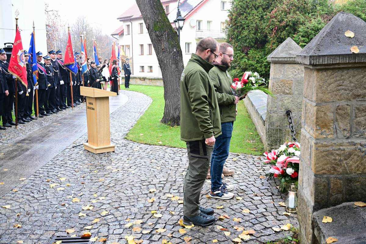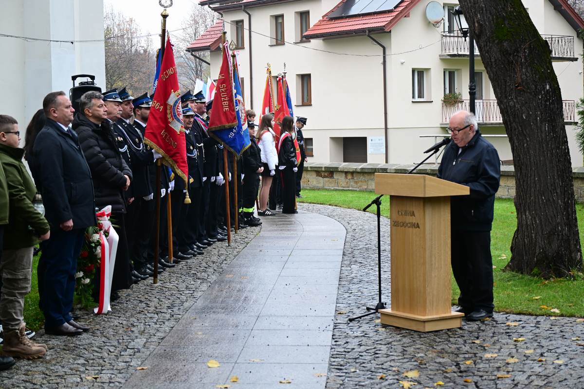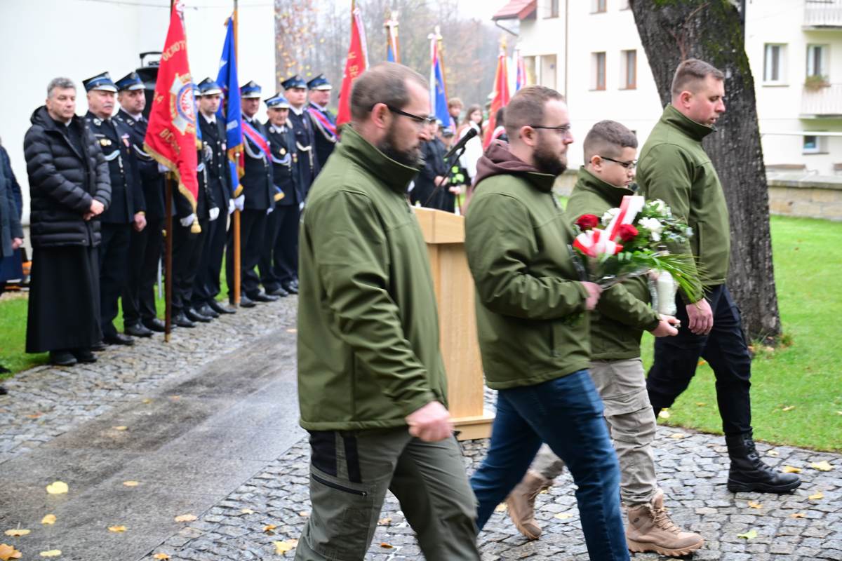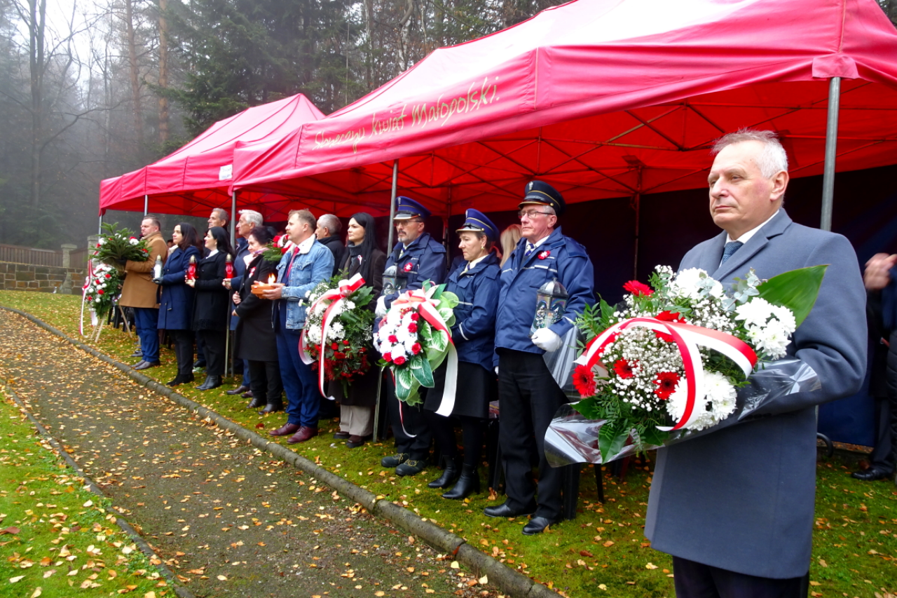 Po zakończeniu Mszy Świętej uczestnicy uroczystości przemaszerowali w asyście pocztów sztandarowych na cmentarz wojenny nr 301, zlokalizowany tuż przy kościele. Tam głos zabrał Wójt Gminy Wojciech Wrona, który podziękował wszystkim zebranym za obecność, pamięć i wspólne uczczenie narodowego święta. Następnie odśpiewano Hymn Narodowy.
