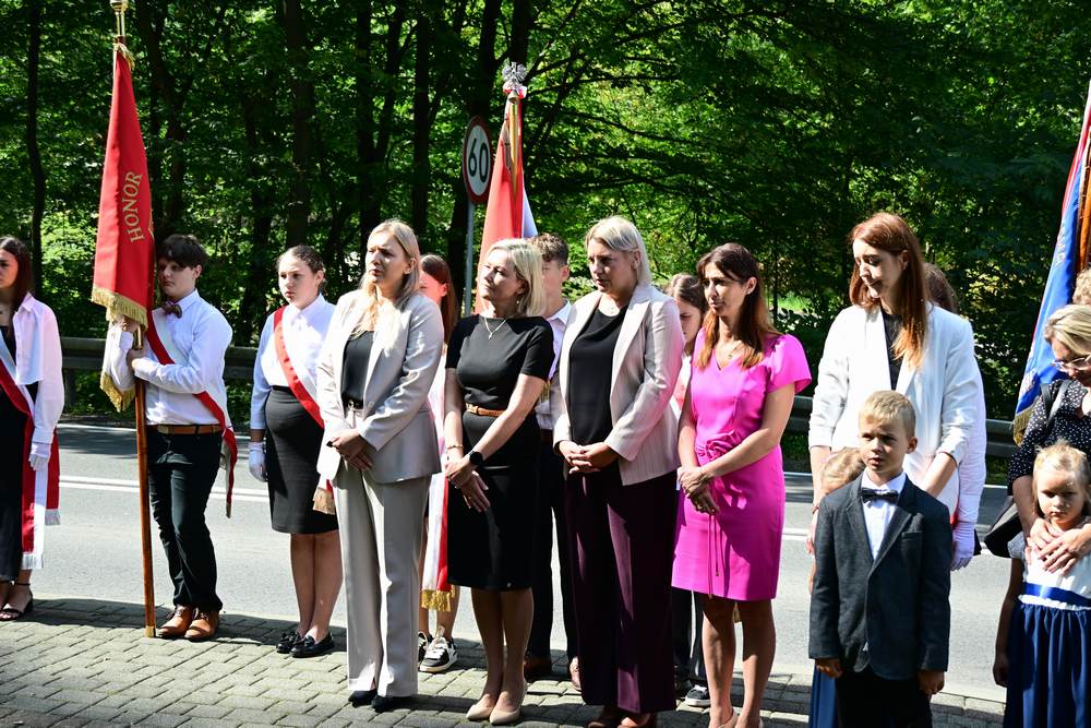 Szczególne słowa wdzięczności skierowane zostały do Pocztów Sztandarowych, Dyrektorów, Nauczycieli oraz najmłodszych: młodzieży i dzieci z przedszkola, które uświetniły uroczystość.
