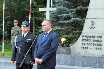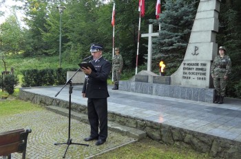 Po zakończeniu nabożeństwa, delegacje samorządu, szkół i organizacji społecznych przeszły pod pomnik Ofiar II Wojny Światowej i tam, po odśpiewaniu hymnu państwowego, słowie wstępnym Wójta Gminy Wojciecha Wrony, apelu pamięci przygotowanym przez Stowarzyszenie Przyjaciół Ziemi Żegocińskiej a odczytanym przez Wojciecha Kępę, złożono przed pomnikiem kwiaty i znicze. Wartę honorową pełnili przy pomniku uczniowie z klasy Straży Granicznej LO w Żegocinie.