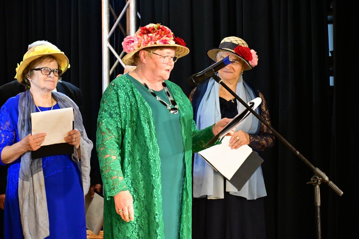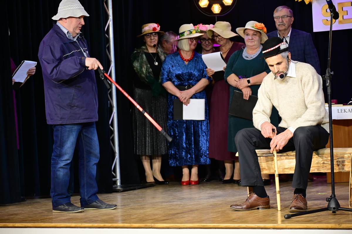 Następnie, po części artystycznej głos zabrał Wójt Gminy, który wyraził wdzięczność za zaangażowanie seniorów oraz życzył wszystkim uczestnikom udanej zabawy, oraz imieniu samorządu przekazał na ręce Pani Prezes okolicznościowy upominek. Dużym zainteresowaniem cieszyły się także konkursy i gry z nagrodami, które rozruszały całą salę.