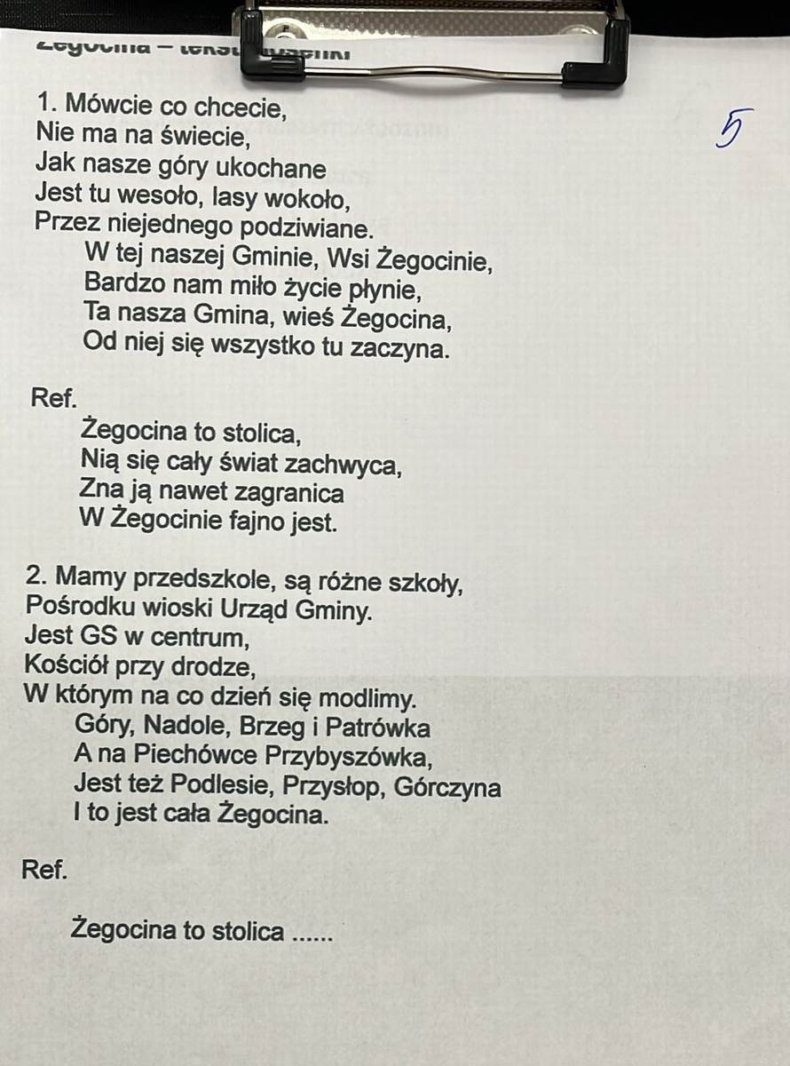 Podczas uroczystości Nasi Seniorzy przygotowali Hymn Żegociny, którego tekst znajduje się w galerii zdjęć z wydarzenia, poniżej.