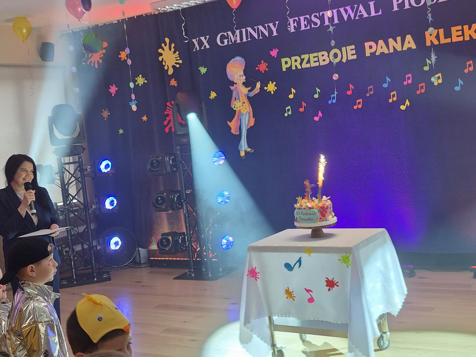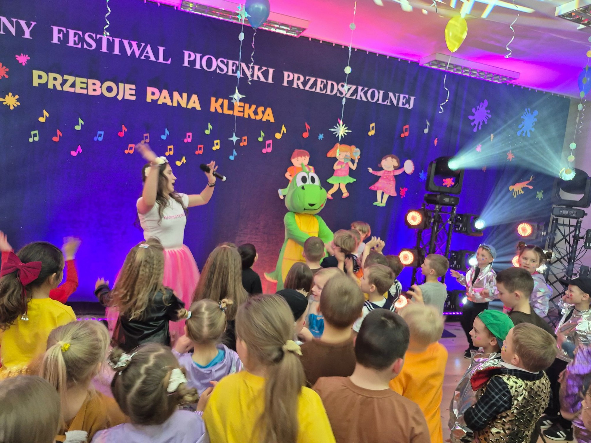 Wszystkie dzieci otrzymały za udział w festiwalu: dyplomy, nagrody oraz puchary. Podczas wydarzenia nie zabrakło pięknego tortu z motywem Pana Kleksa. Następnie dzieci zostały zaproszone na poczęstunek oraz do wspólnej zabawy z animatorką Natalią z firmy „Jak w Bajce”.