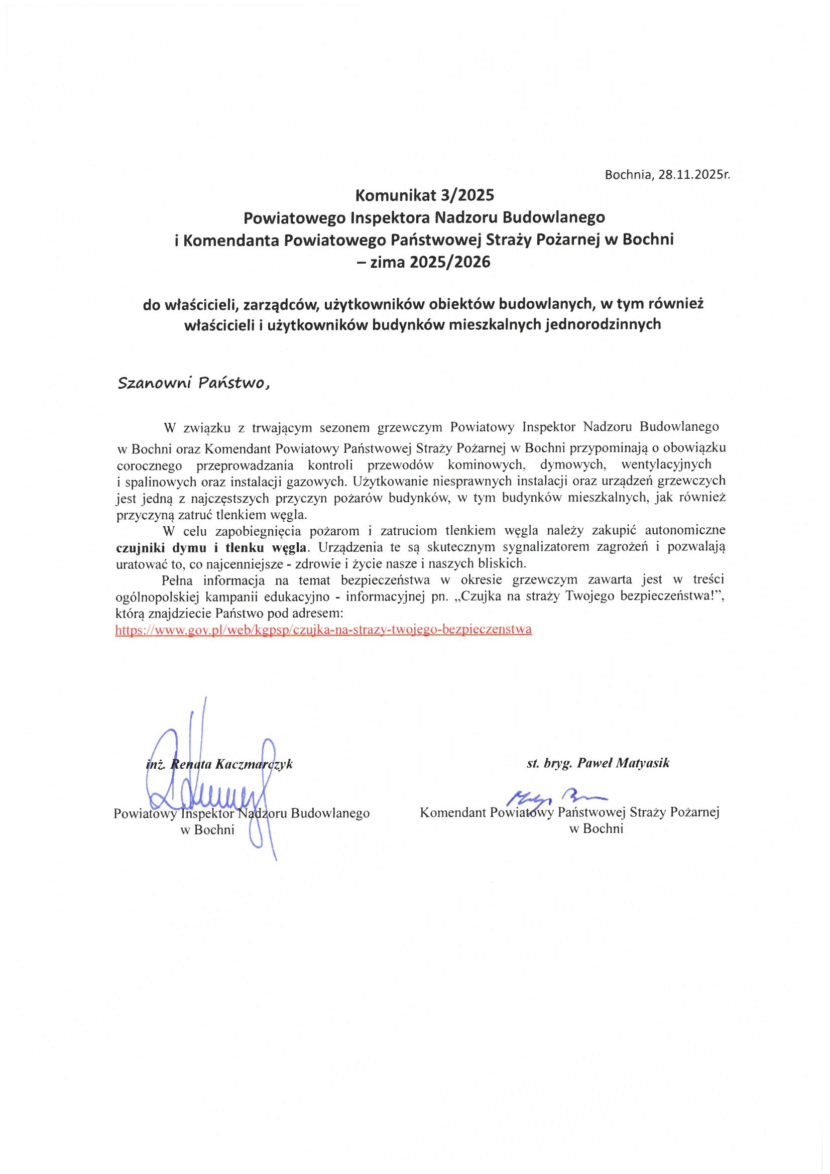 Komunikat 3/2025 PINB i Komendanta PPSP w Bochni
