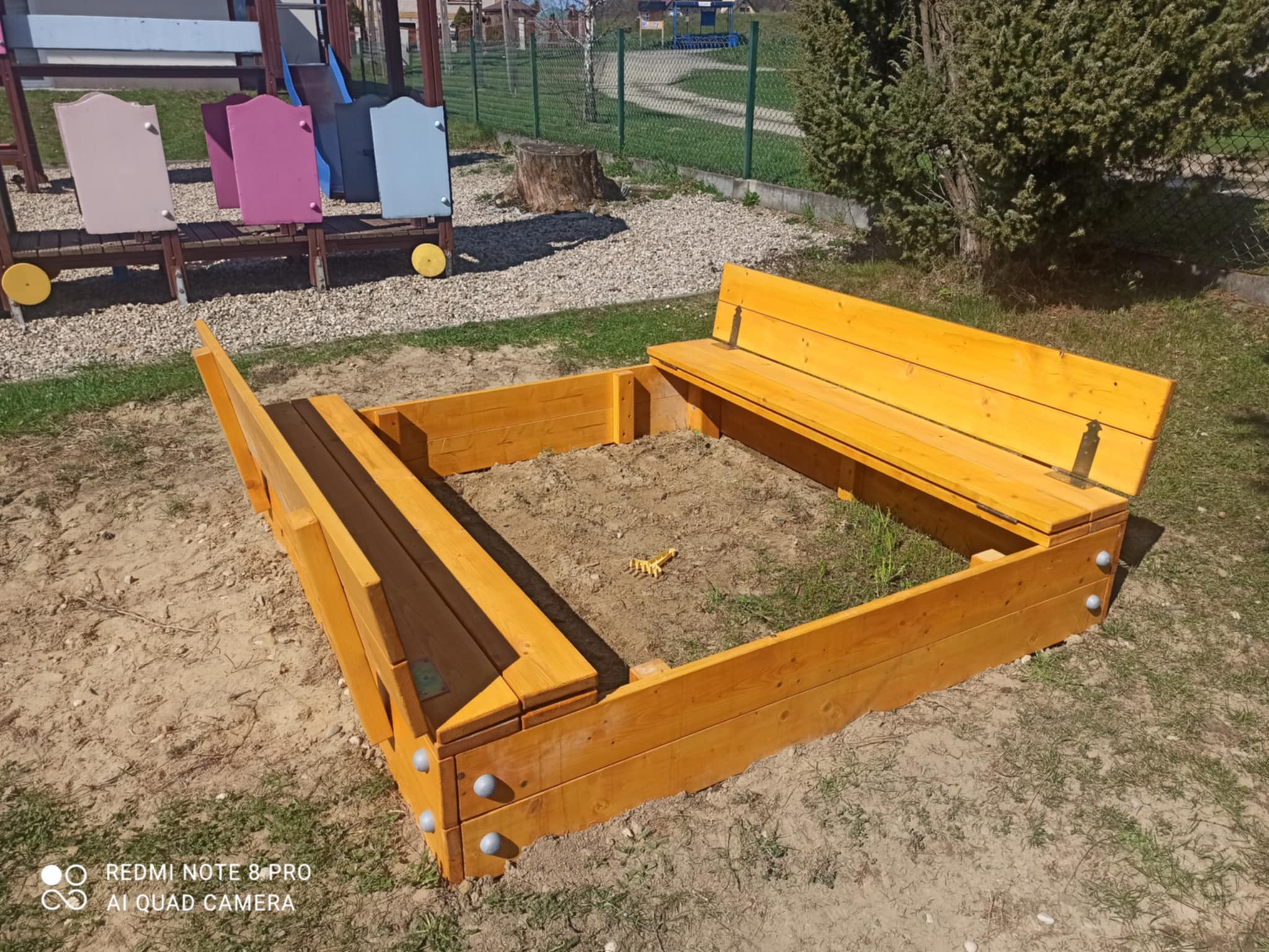 W ramach inwestycji zakupiono: podwójną huśtawkę, zamykaną piaskownicę, stół do gry w chińczyka, tablicę edukacyjną „Farma”, a także ławkę typu PRIMARIO oraz stół piknikowy.
