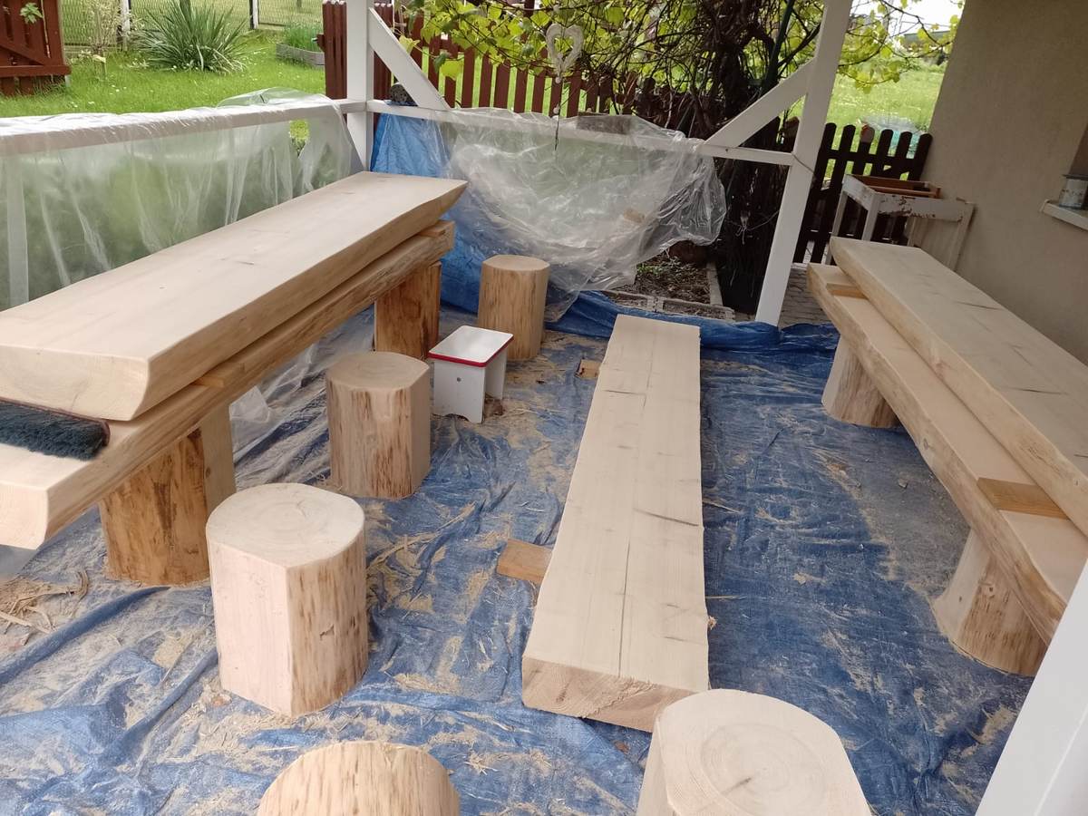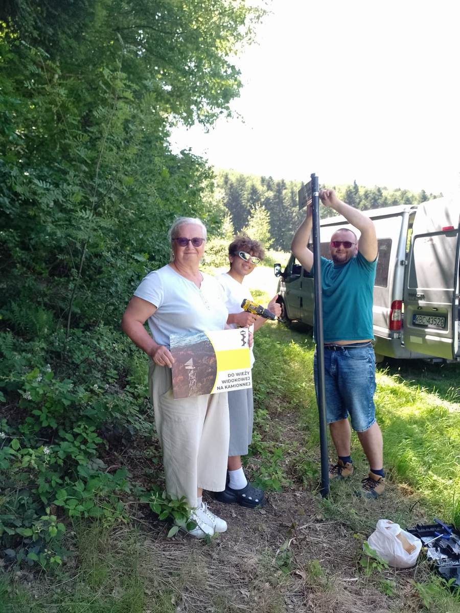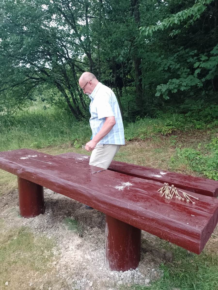 Najwięcej pracy wymagało dokładne szlifowanie i czterokrotne malowanie drewna, aby zapewnić trwałość i estetykę. Gotowe elementy przewieziono na miejsce i rozmieszczono w trzech punktach szlaku. Pod każdą ławką umieszczono zabezpieczającą przed wilgocią konstrukcje.. Przy stoliku wykonano otwory o głębokości 50 cm, dzięki czemu osadzono go stabilnie i bezpiecznie. Po zakończeniu montażu teren został posprzątany, a konstrukcje sprawdzone pod względem bezpieczeństwa użytkowania.