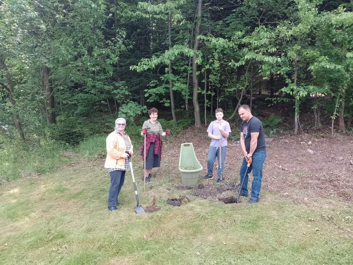 Pracownik urzędu wyznaczył teren pod montaż ławek – został on oczyszczony, wyrównany i obsadzony ozdobnymi roślinami przez mieszkańców.