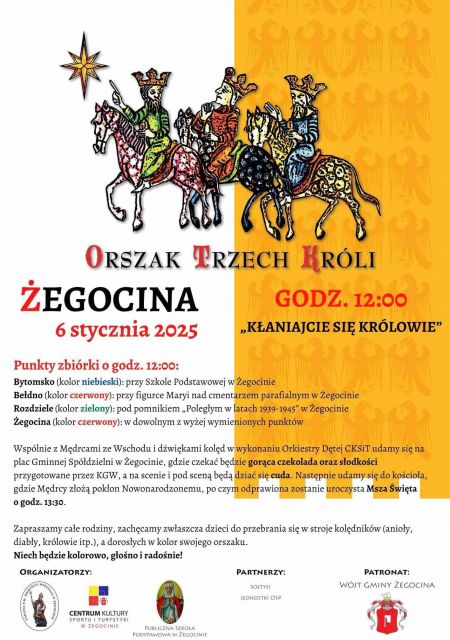 Serdecznie zapraszamy wszystkich na Orszak Trzech Króli, który już po raz szósty odbędzie się w Żegocinie tradycyjnie 6 stycznia 2025 roku.