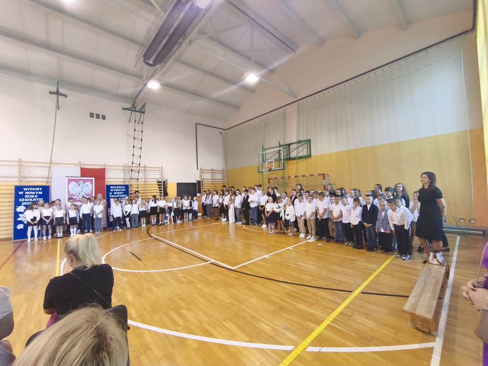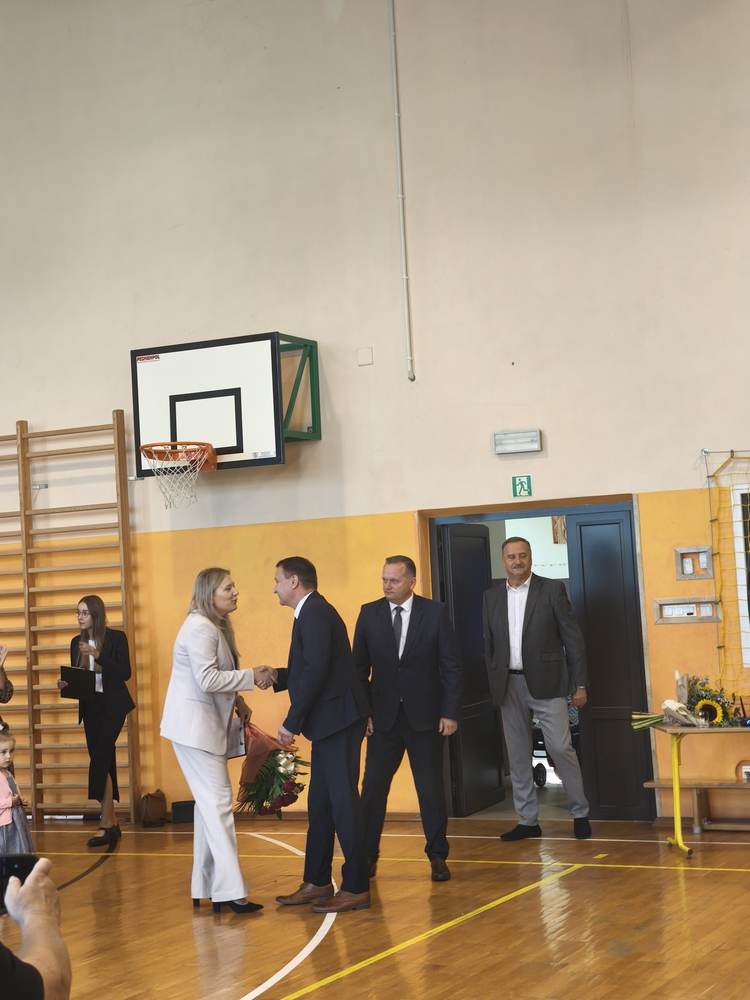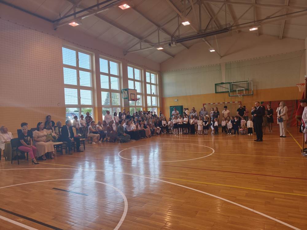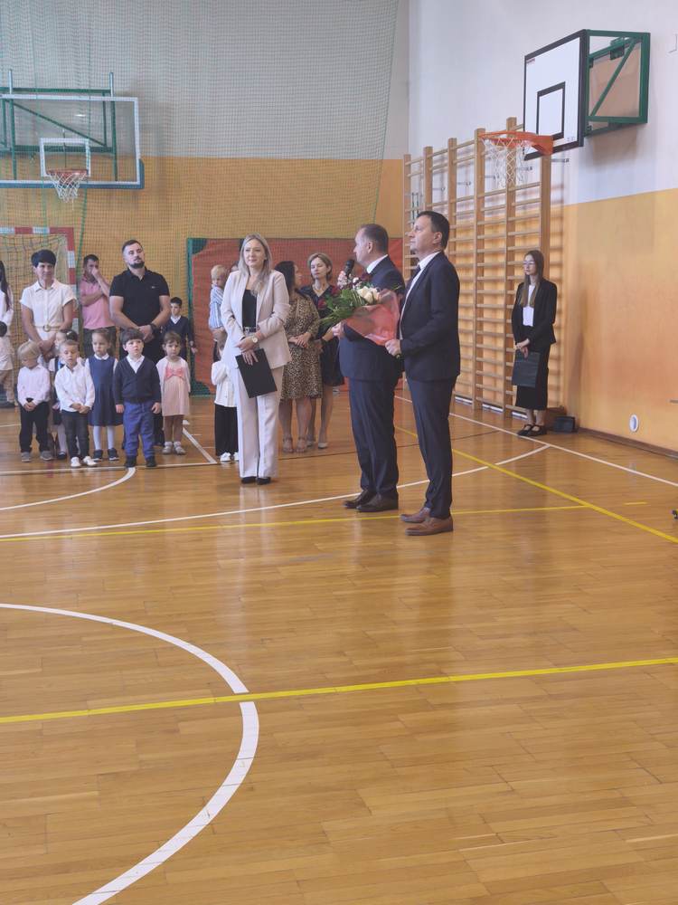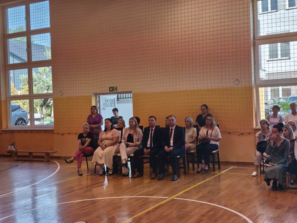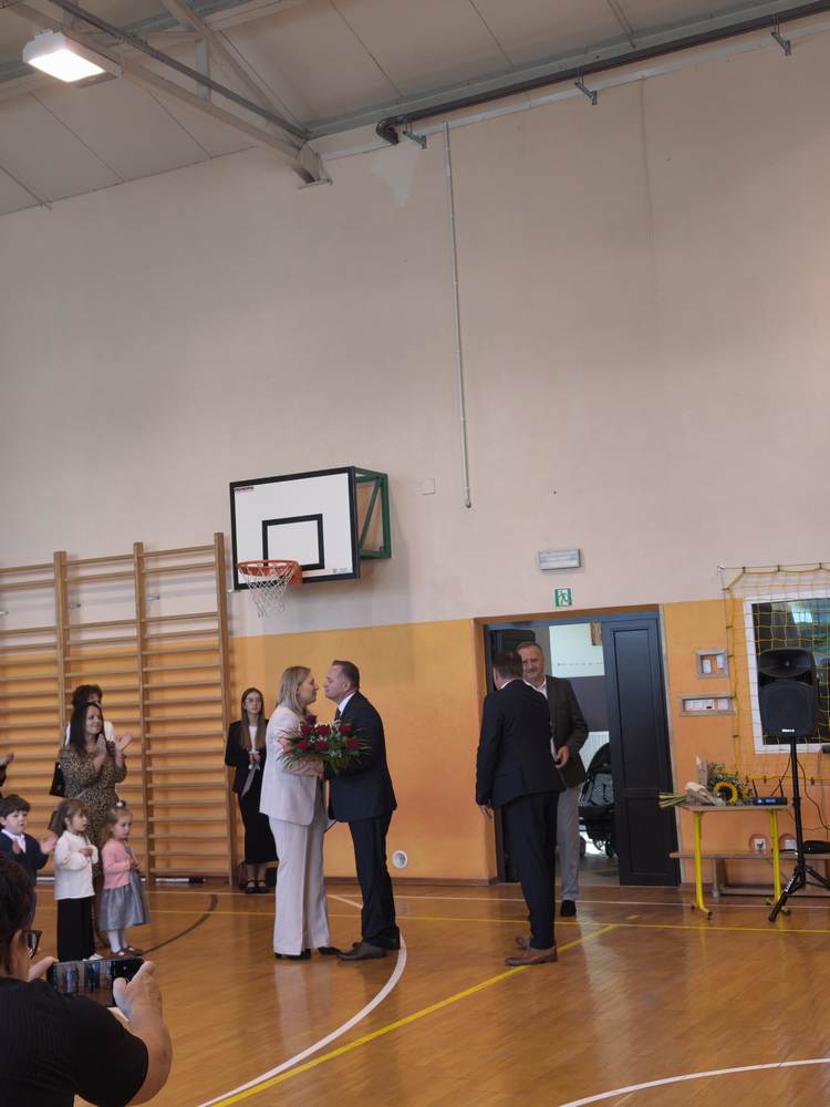 Uroczystość rozpoczęła się od wprowadzenia sztandaru szkoły i odśpiewania hymnu państwowego. Wójt Gminy powitał nową dyrektor szkoły, Panią Joannę Dunikowską, której gratulacje złożyli także przedstawiciele Samorządu Uczniowskiego i Rady Rodziców.