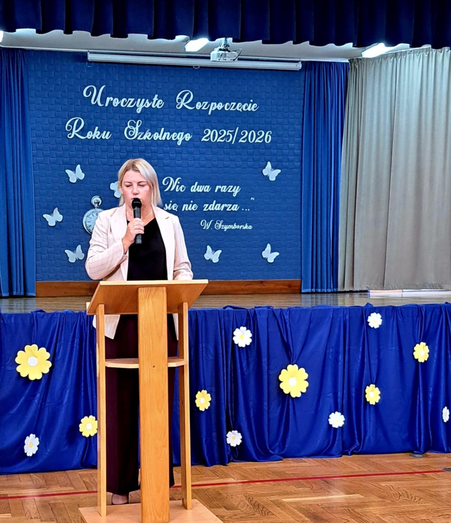 Na zakończenie pani dyrektor życzyła wszystkim udanego roku szkolnego, a pierwszoklasistom – dobrego startu.