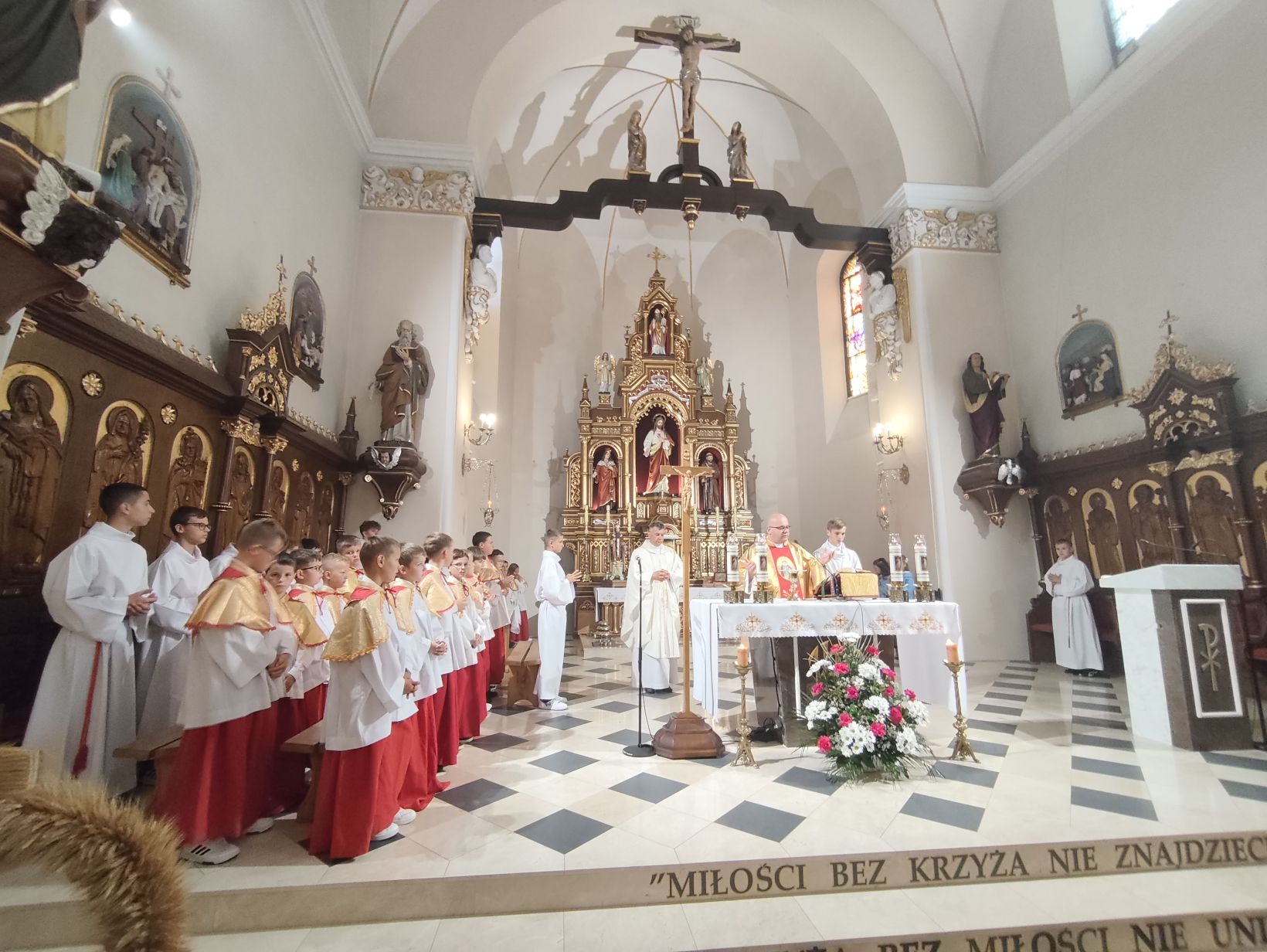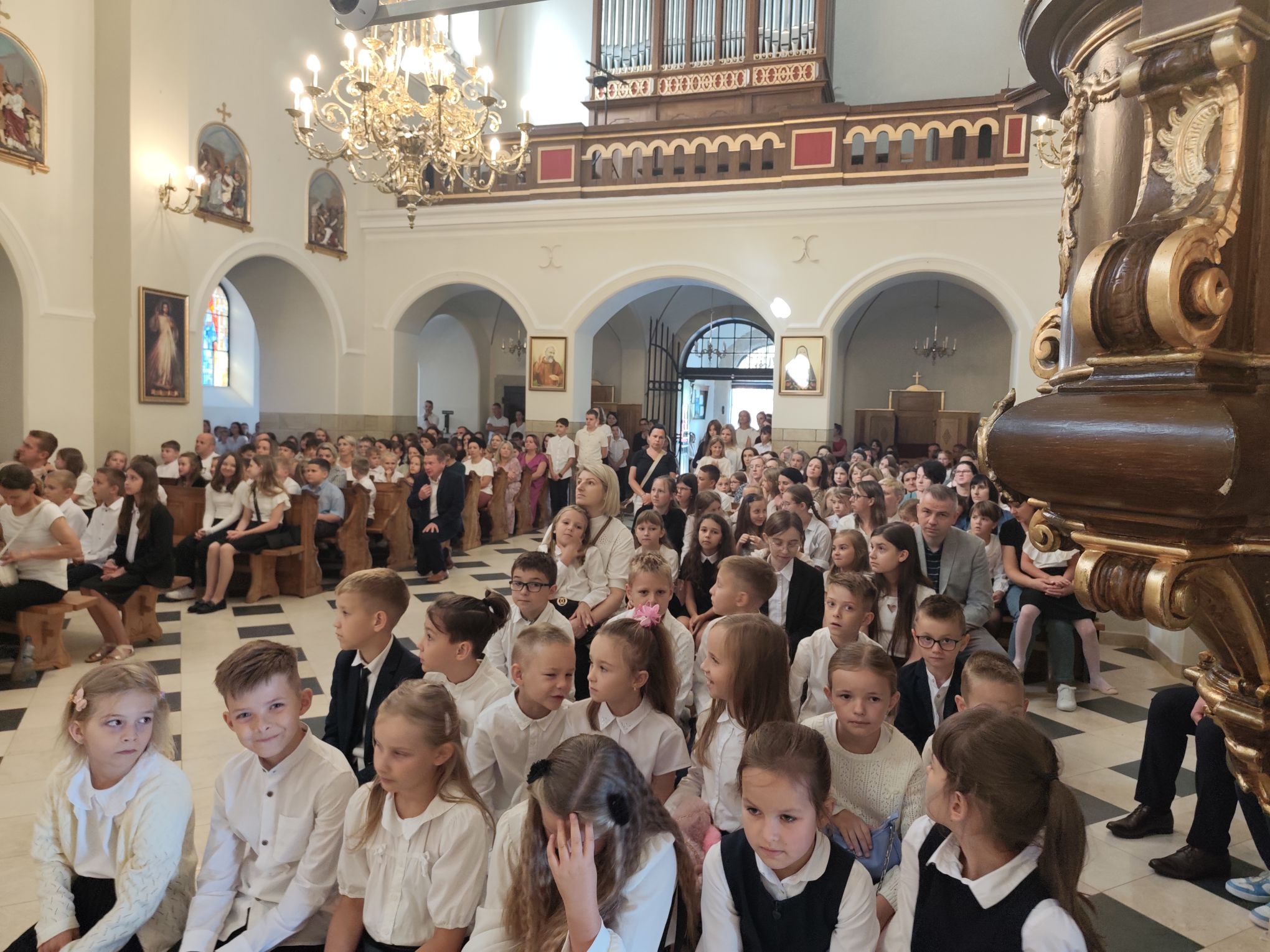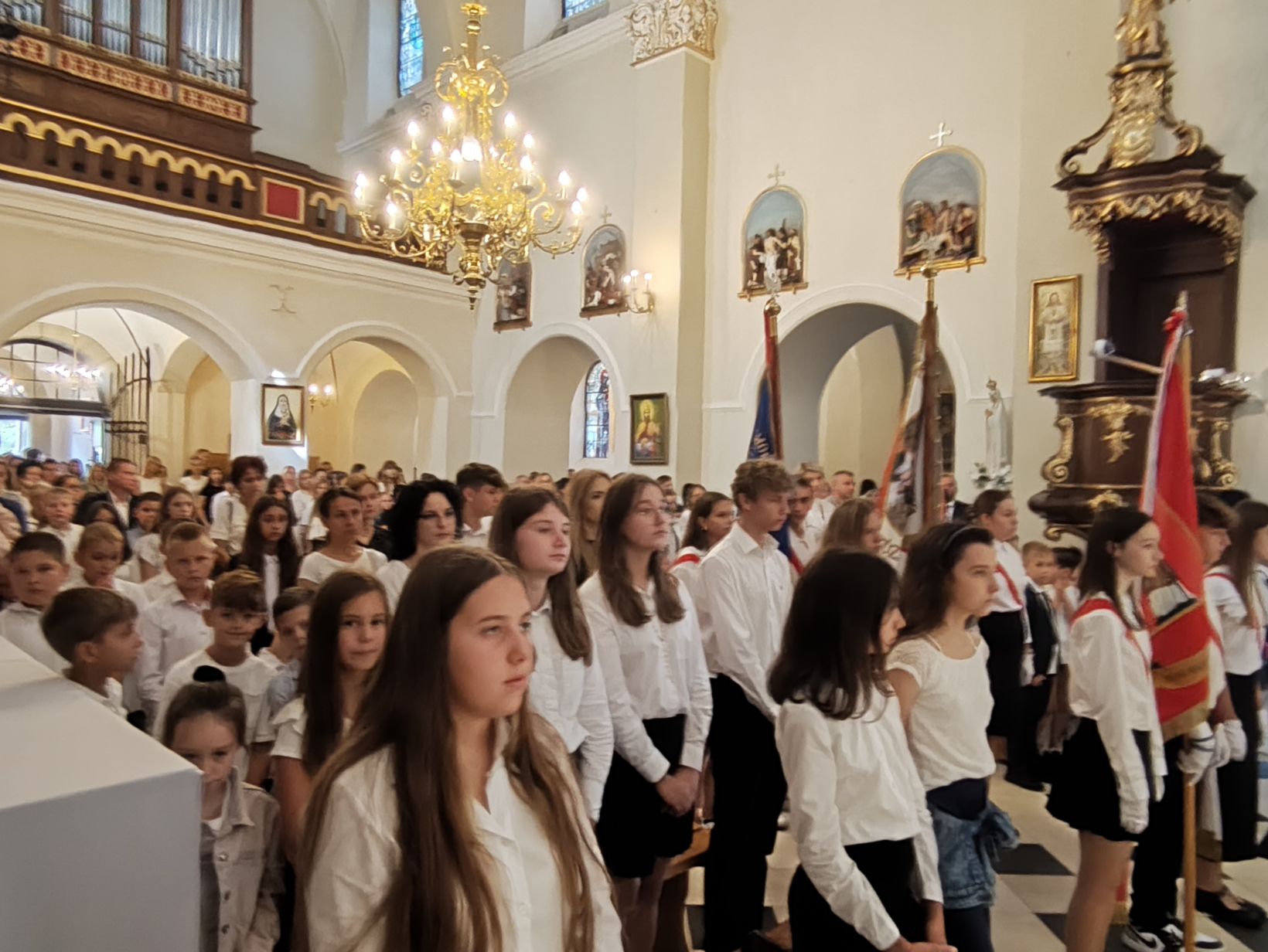 społeczność Szkoły Podstawowej im. Jana Pawła II w Łąkcie Górnej rozpoczęła nowy rok szkolny Mszą Świętą, którą odprawił ks. proboszcz Włodzimierz Chwałek.