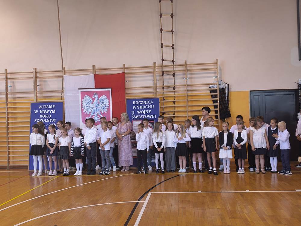 o godz. 8.00 spotkali się na pierwszym w tym roku uroczystym apelu, a potem przez godzinę mogli porozmawiać z wychowawcami. Następnie udali się do kościoła, by podziękować za szczęśliwie wakacje i pomodlić się za pomyślny i bezpieczny nowy rok. Nie zapomnieli także o 86 rocznicy wybuchu II wojny światowej.