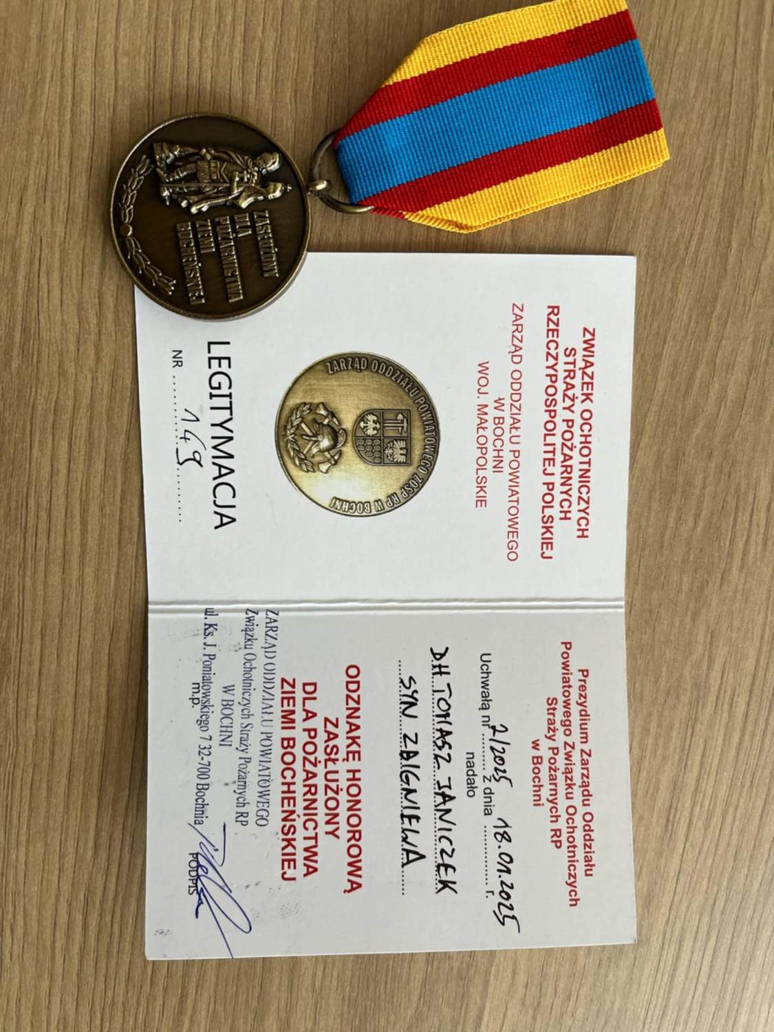 Prezes OSP Żegocina Tomasz Janiczek został uhonorowany Odznaką Honorową „Zasłużony dla Pożarnictwa Ziemi Bocheńskiej”.