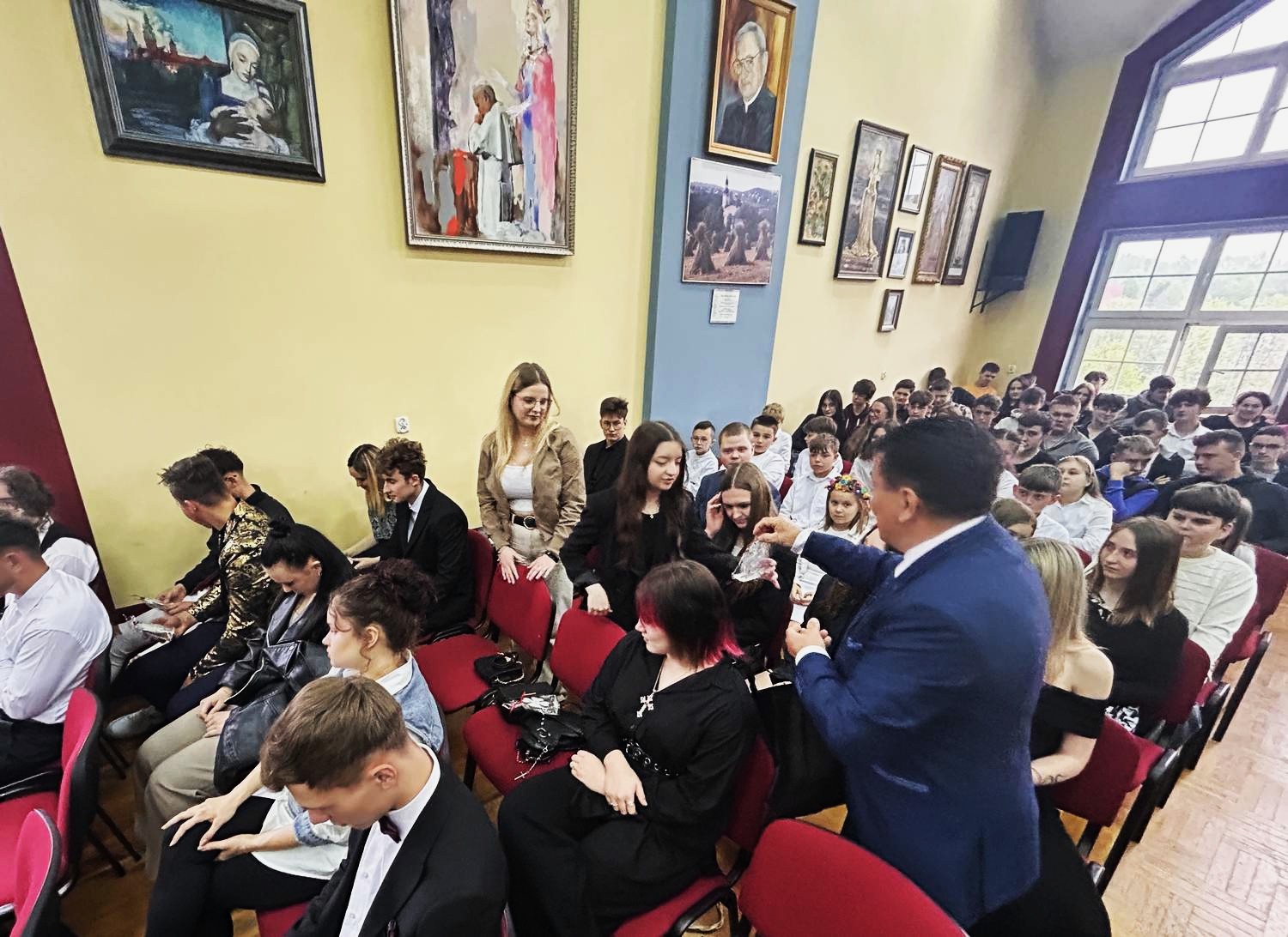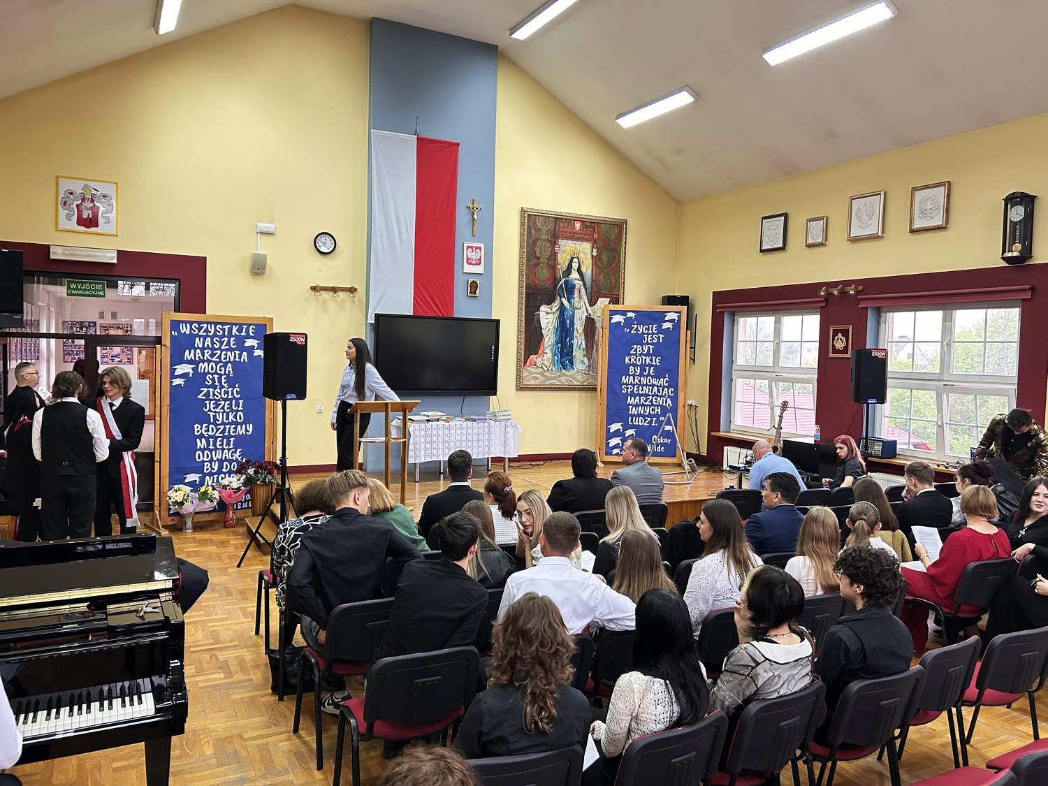 Na końcu głos zabrali Maturzyści, którzy podziękowali każdemu Nauczycielowi. Weronika Wrzyszcz i Wiktoria Dziedzic pięknie wykonały piosenkę „Życia mała garść”, natomiast Mateusz Moćko wyrecytował wiersz Marii Konopnickiej.