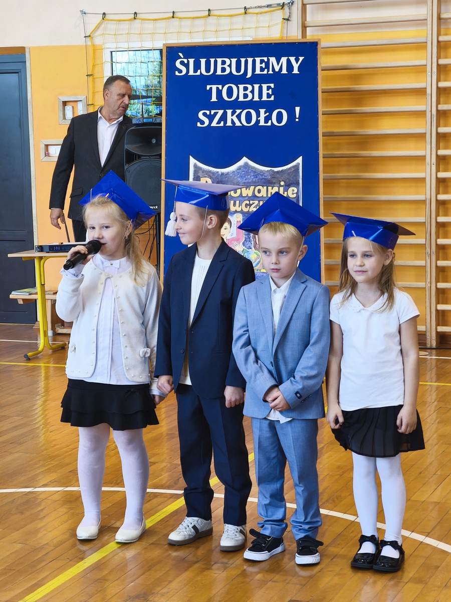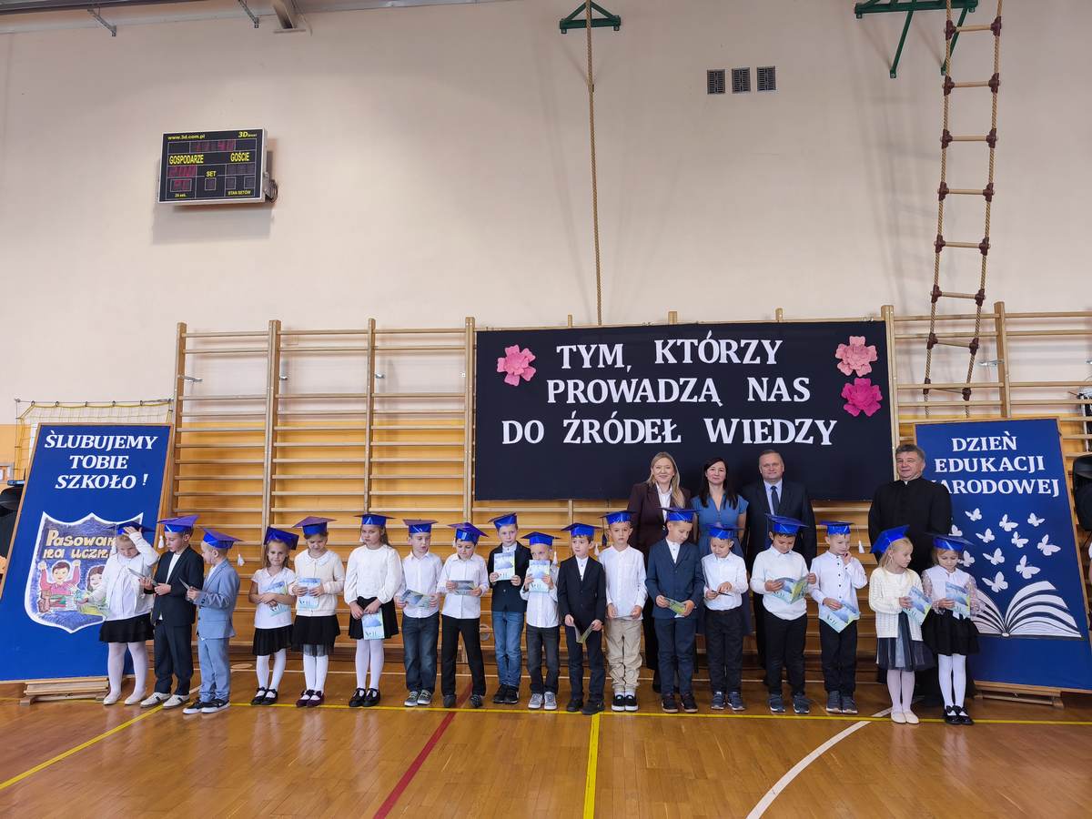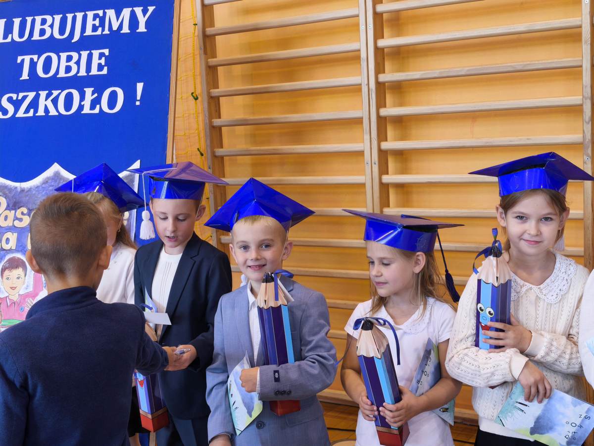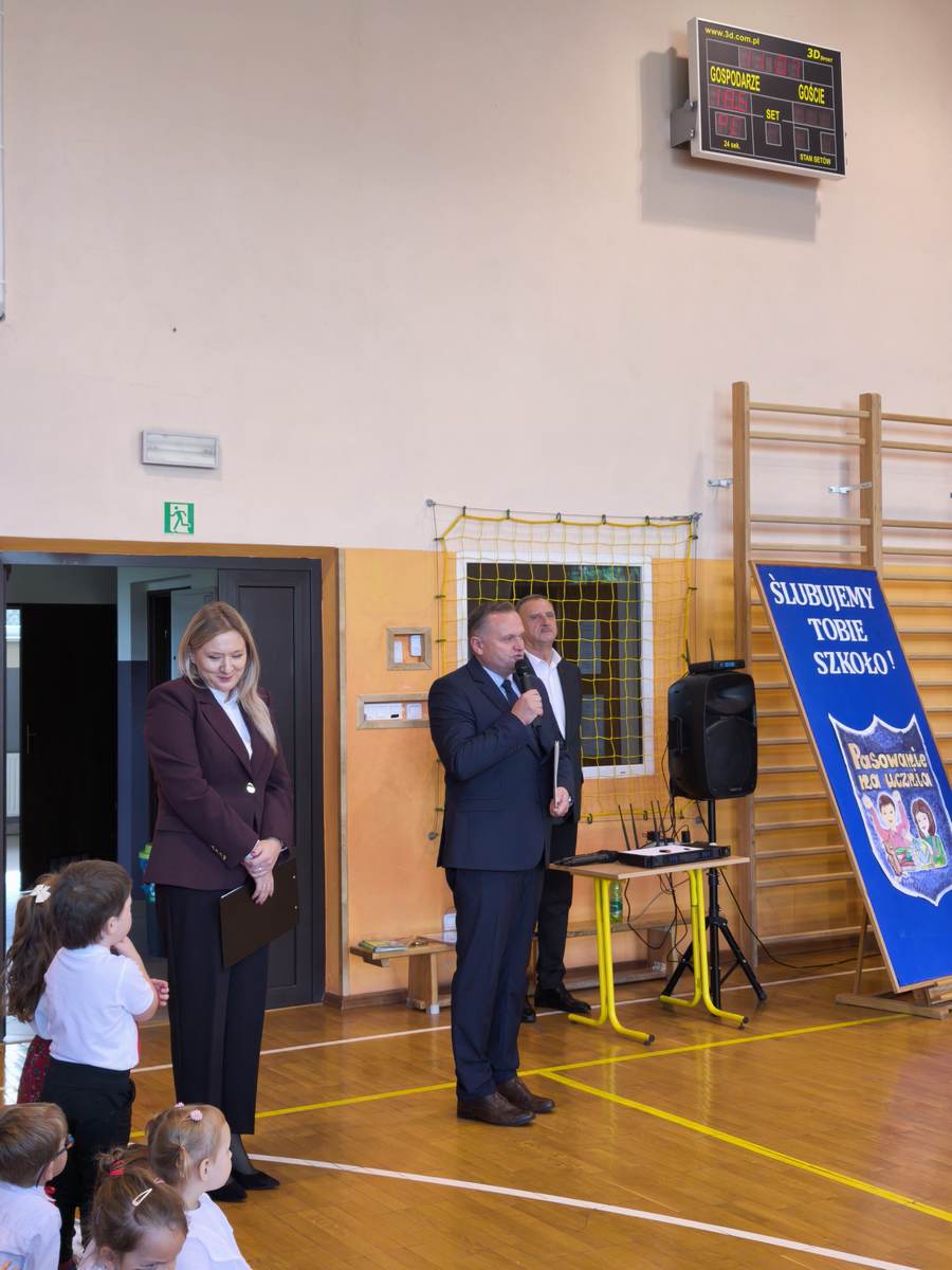 Z okazji tego szczególnego dnia najmłodszym uczniom życzono sukcesów w nauce, radości z poznawania szkolnego świata i wielu przyjaciół. Życzenia te przekazali Wójt Gminy Wojciech Wrona, ks. proboszcz Bogusław Pasierb, Pani Dyrektor Joanna Dunikowska, nauczyciele, rodzice oraz starsi koledzy.