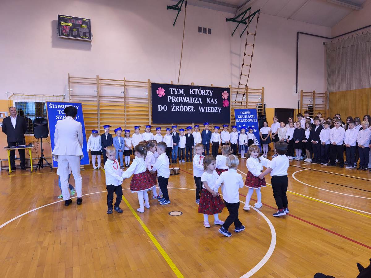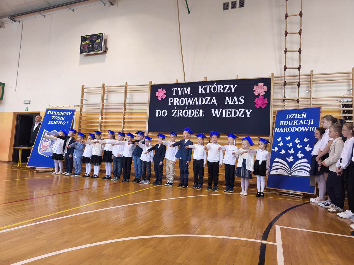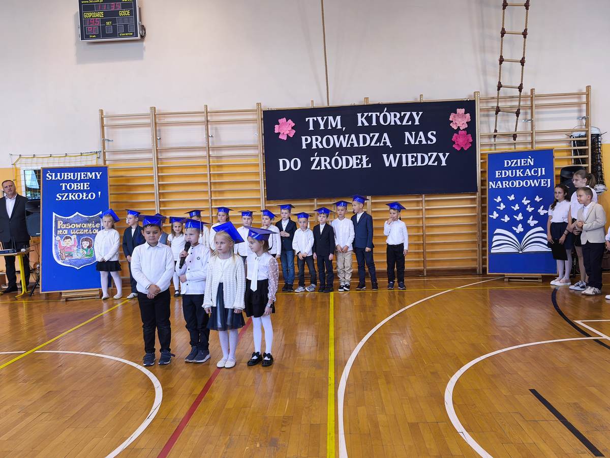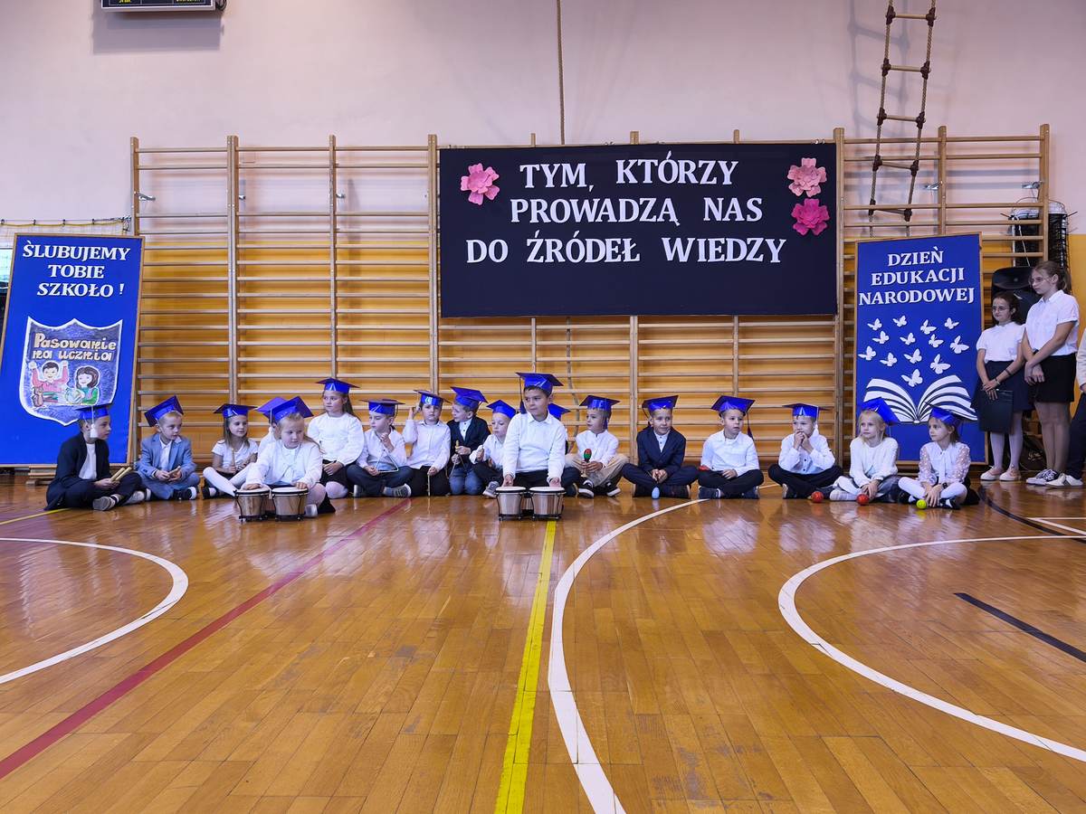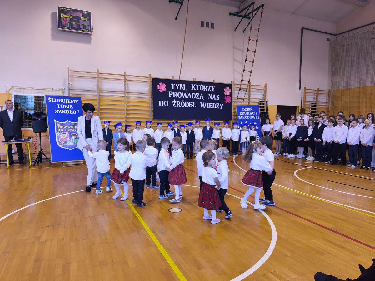 ślubowanie i pasowanie uczniów klasy pierwszej oraz obchody Dnia Edukacji Narodowej.
