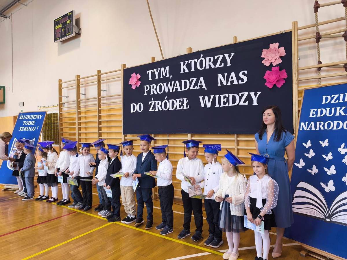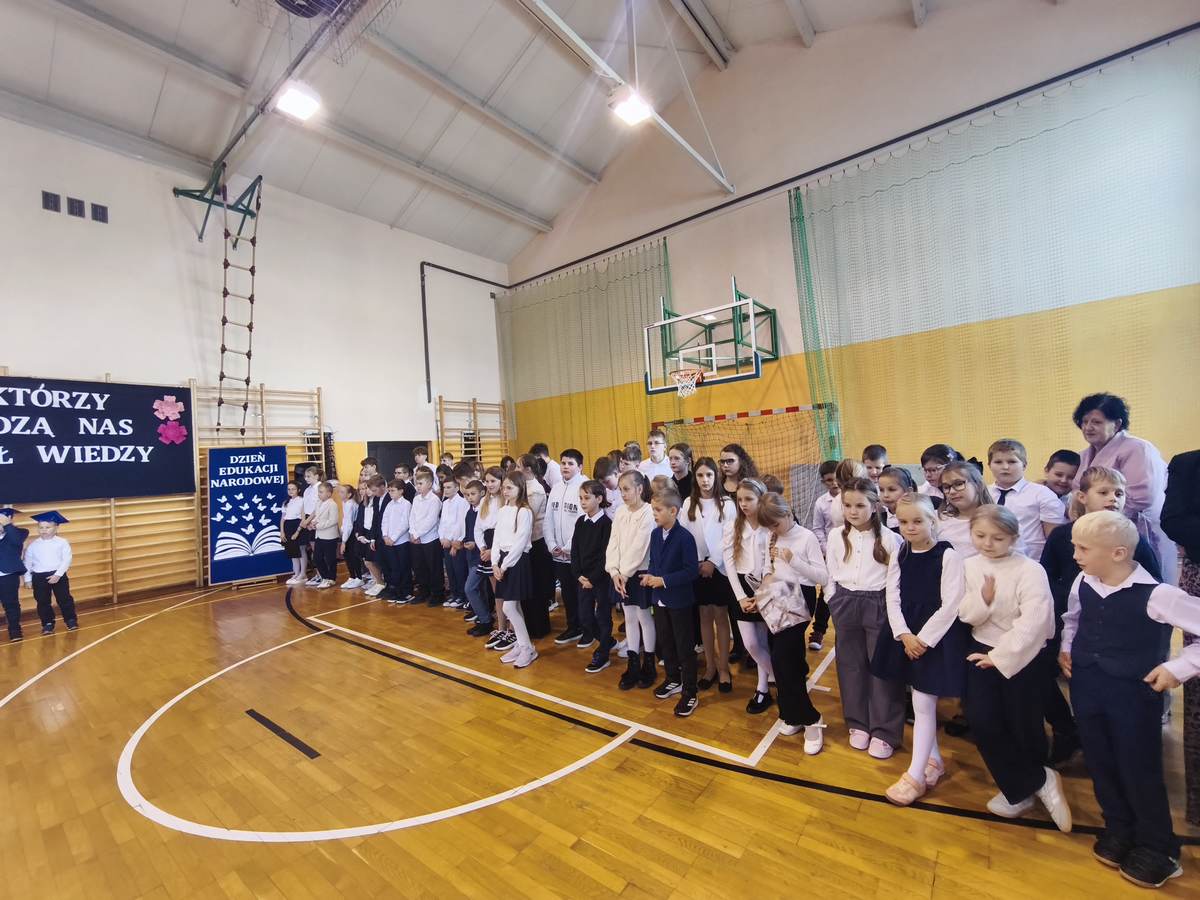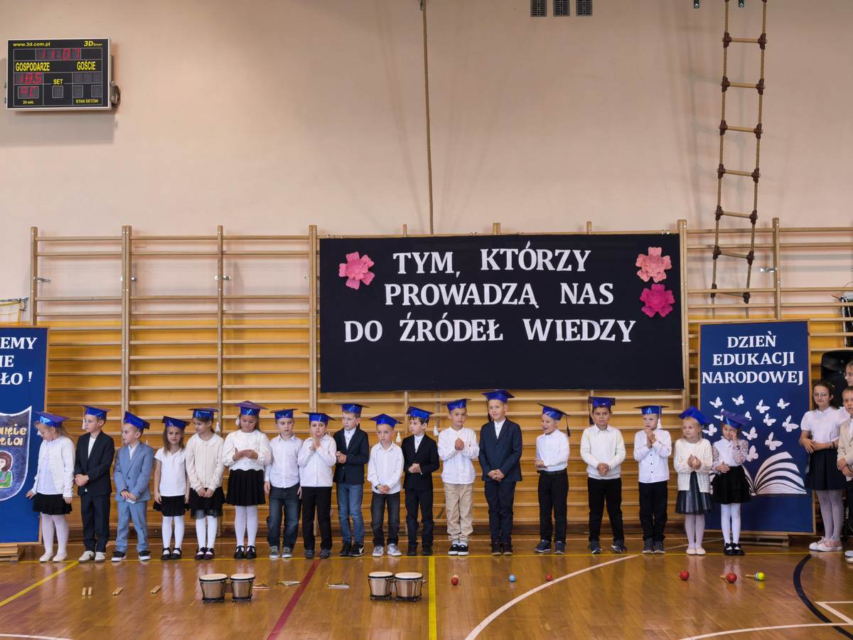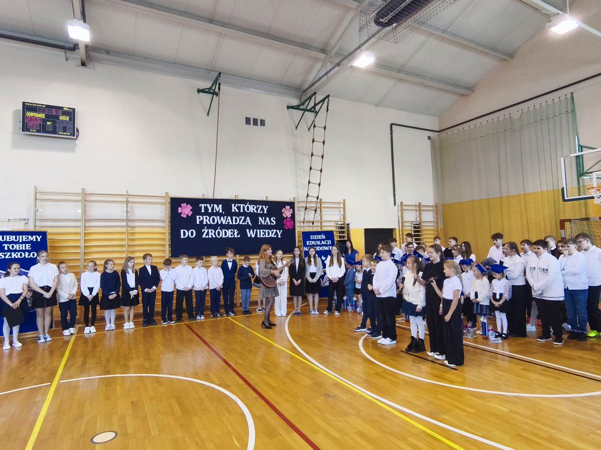 Uczniowie klas starszych, IV–VIII przygotowali występ artystyczny, w którym słowem i piosenką wyrazili swoją wdzięczność wszystkim pracownikom szkoły. Uczniowie podziękowali nauczycielom za codzienny trud, zaangażowanie, serce wkładane w nauczanie i wychowanie, a także za cierpliwość i życzliwość, z jaką spotykają się każdego dnia.