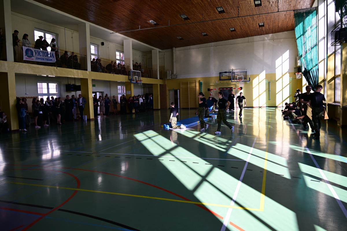 Pierwszym punktem uroczystości było ślubowanie uczniów klas pierwszych, którzy oficjalnie dołączyli do grona uczniów klas mundurowych. Następnie uczestnicy wydarzenia udali się na salę gimnastyczną, gdzie uczniowie zaprezentowali pokaz swoich umiejętności praktycznych zdobytych w trakcie nauki.