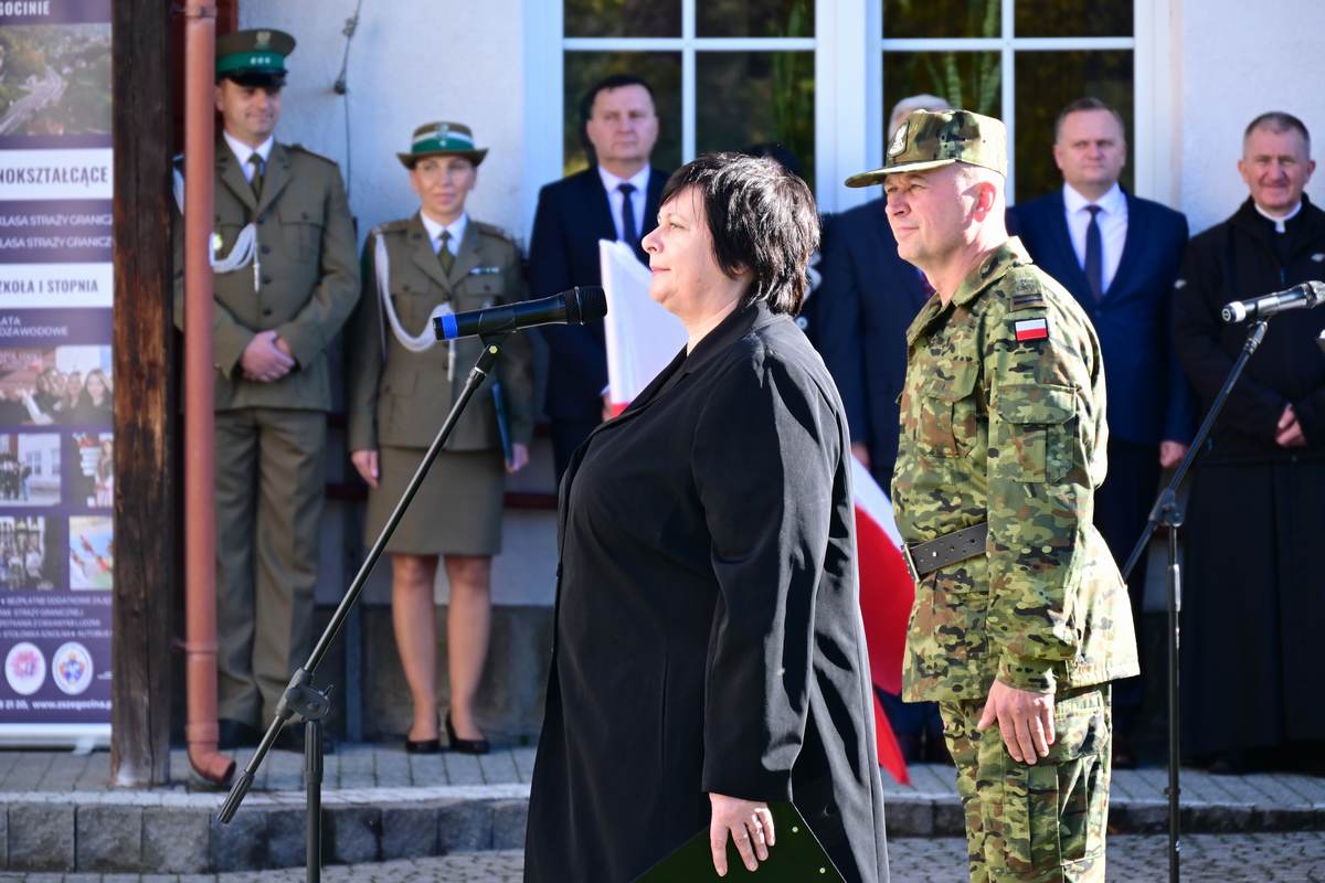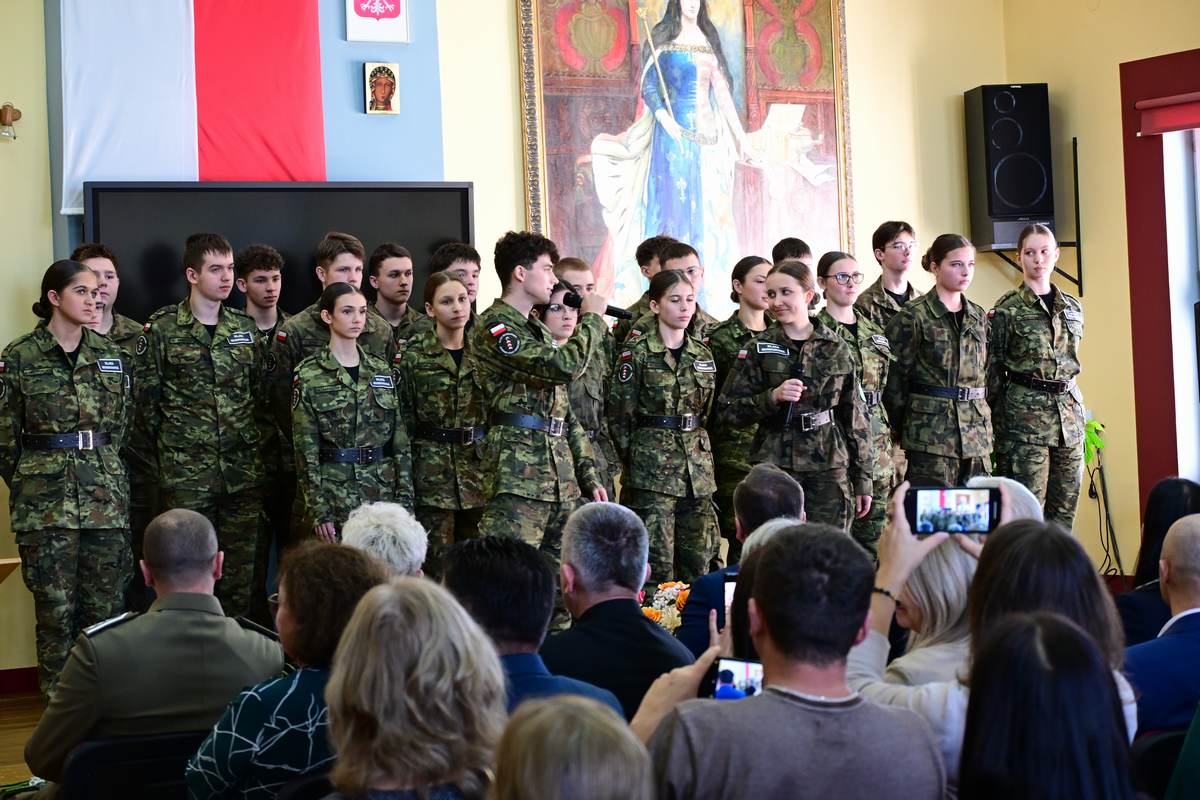 Dalsza część obchodów odbyła się w auli szkolnej. Wydarzenie prowadziła pani Dyrektor Katarzyna Sutor. Podczas uroczystości wygłoszono okolicznościowe przemówienia oraz wspomnienia dotyczące historii współpracy szkoły z Karpackim Oddziałem Straży Granicznej, które przybliżyła obecnym pani Teresa Stachoń. Uroczystość zwieńczyły występy artystyczne uczniów klas mundurowych przygotowane pod opieką i przy czynnym udziale nauczycieli – pani Agaty Flagi oraz pana Marka Kaszuby.