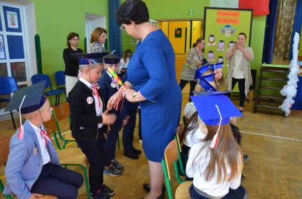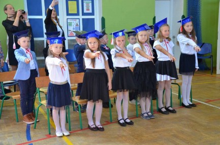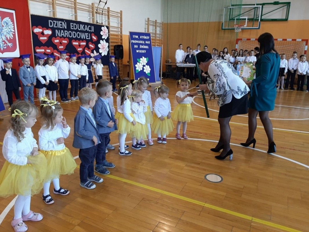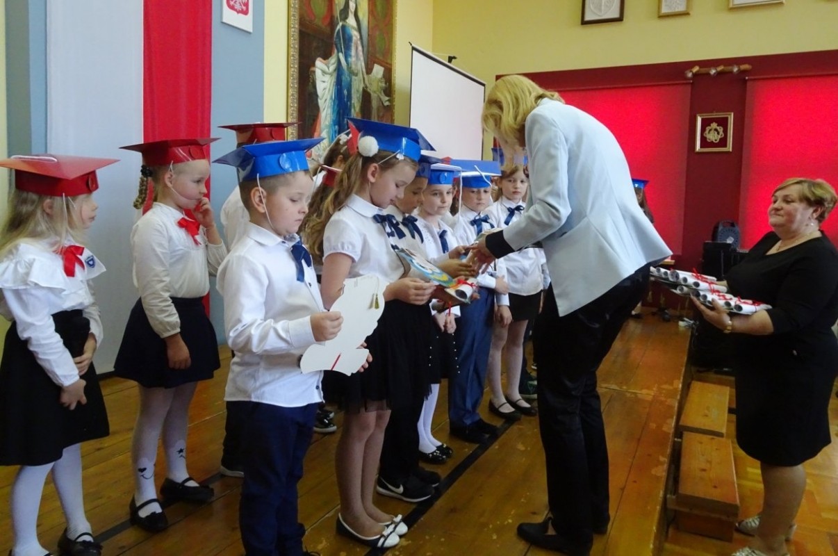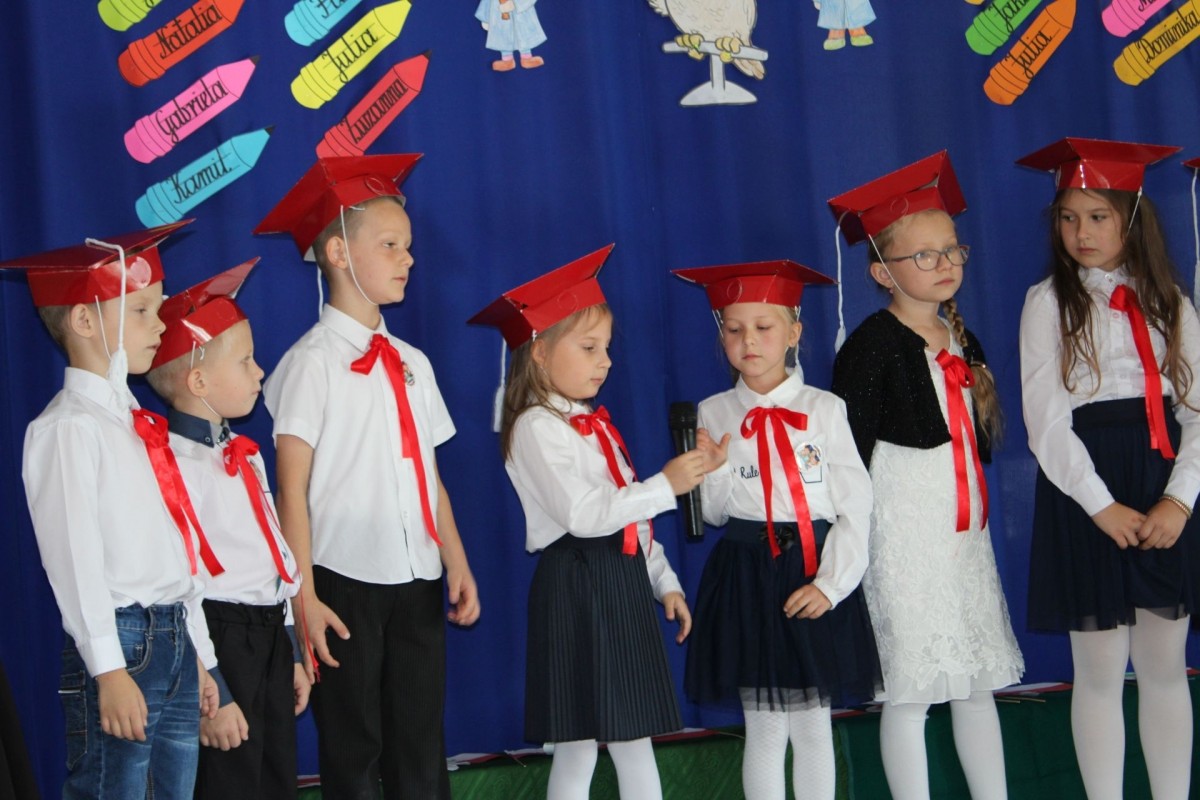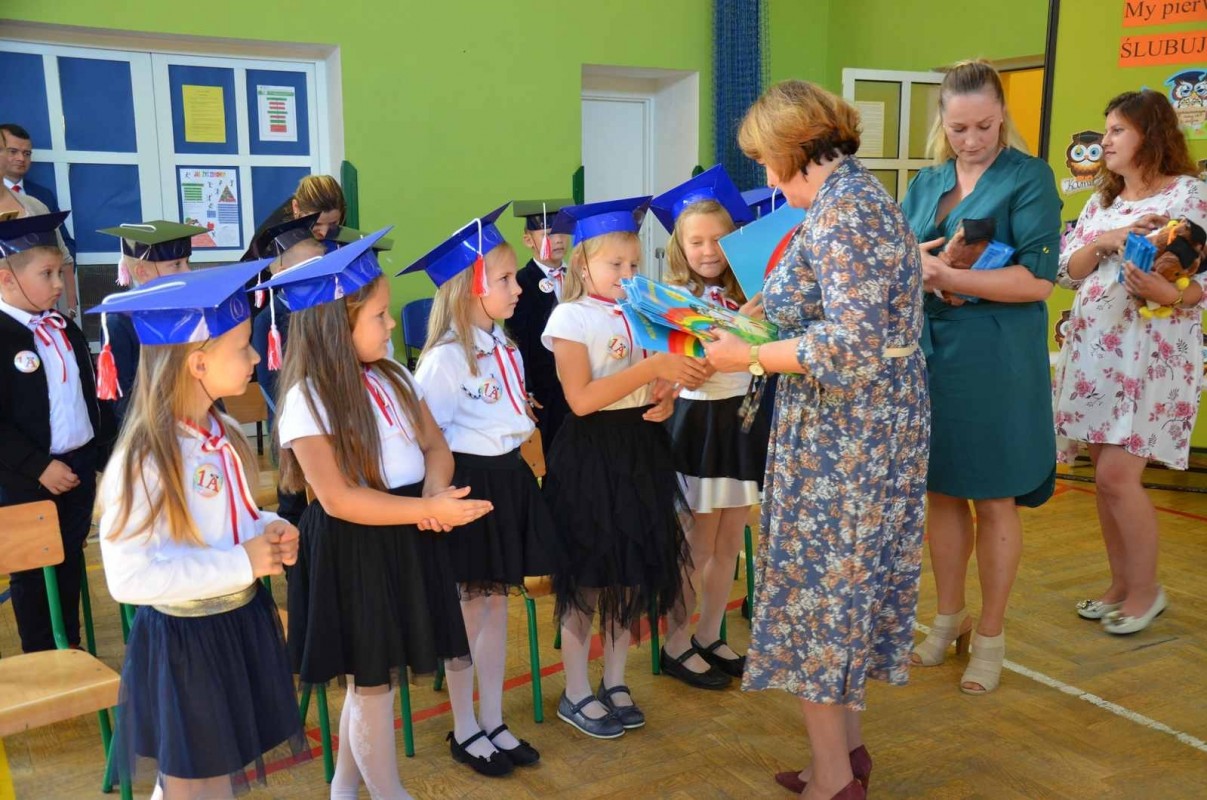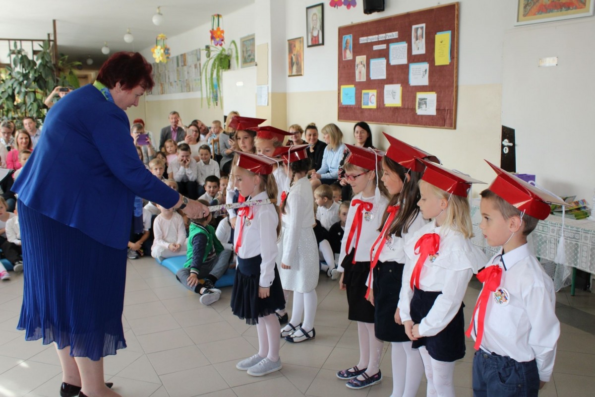 Na pamiątkę tej uroczystości pierwszaki otrzymały kilka prezentów, w tym tarcze szkolne, dyplomy oraz legitymacje szkolne. Były także prezenty i życzenia od Rady Rodziców, którą kieruje pani Agnieszka Zbyrowska i upominki od samorządu. Do uroczystości włączyły się także przedszkolaki, które przybyły na uroczystość i starszym nieco koleżankom i kolegom także przekazały słodki upominek.