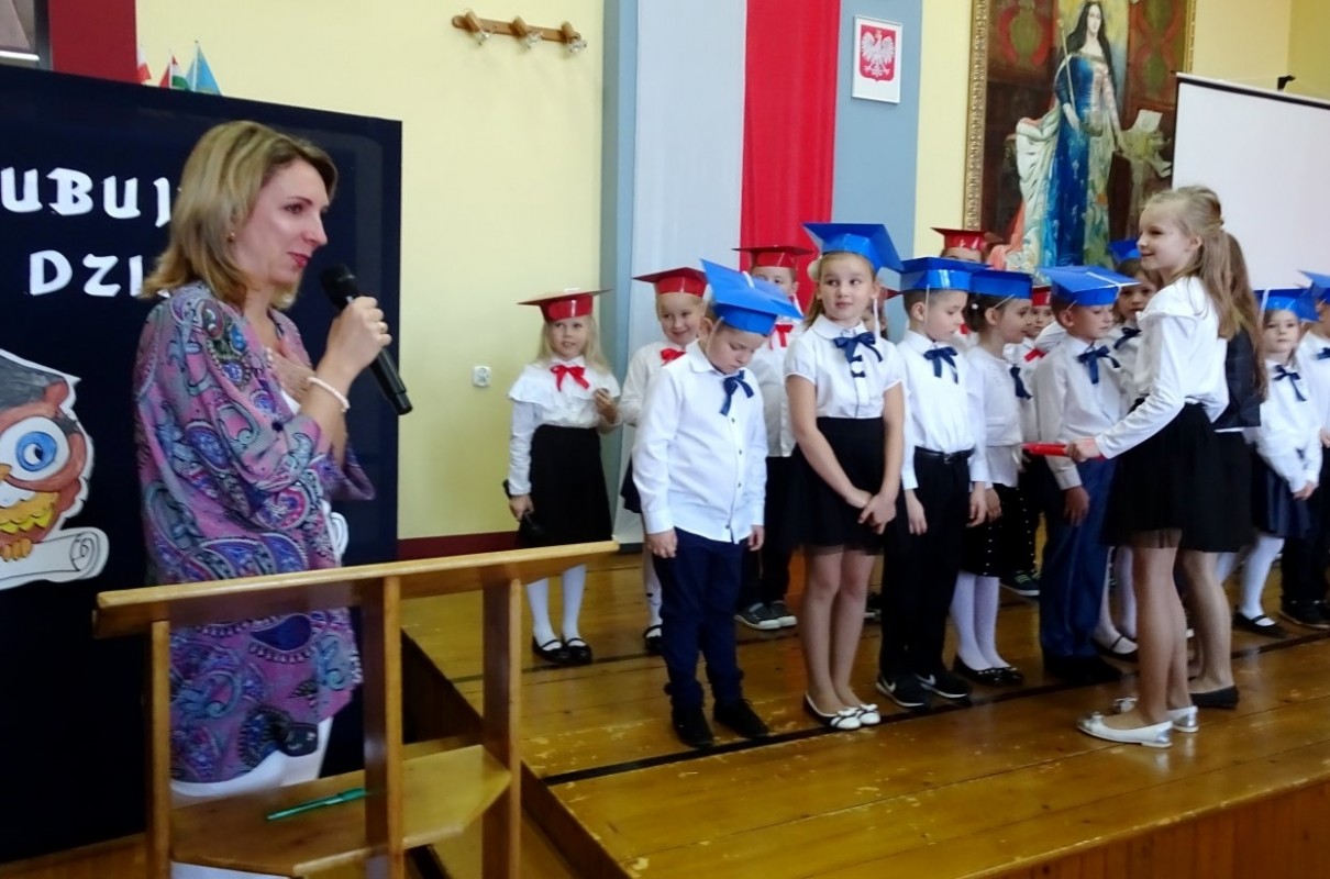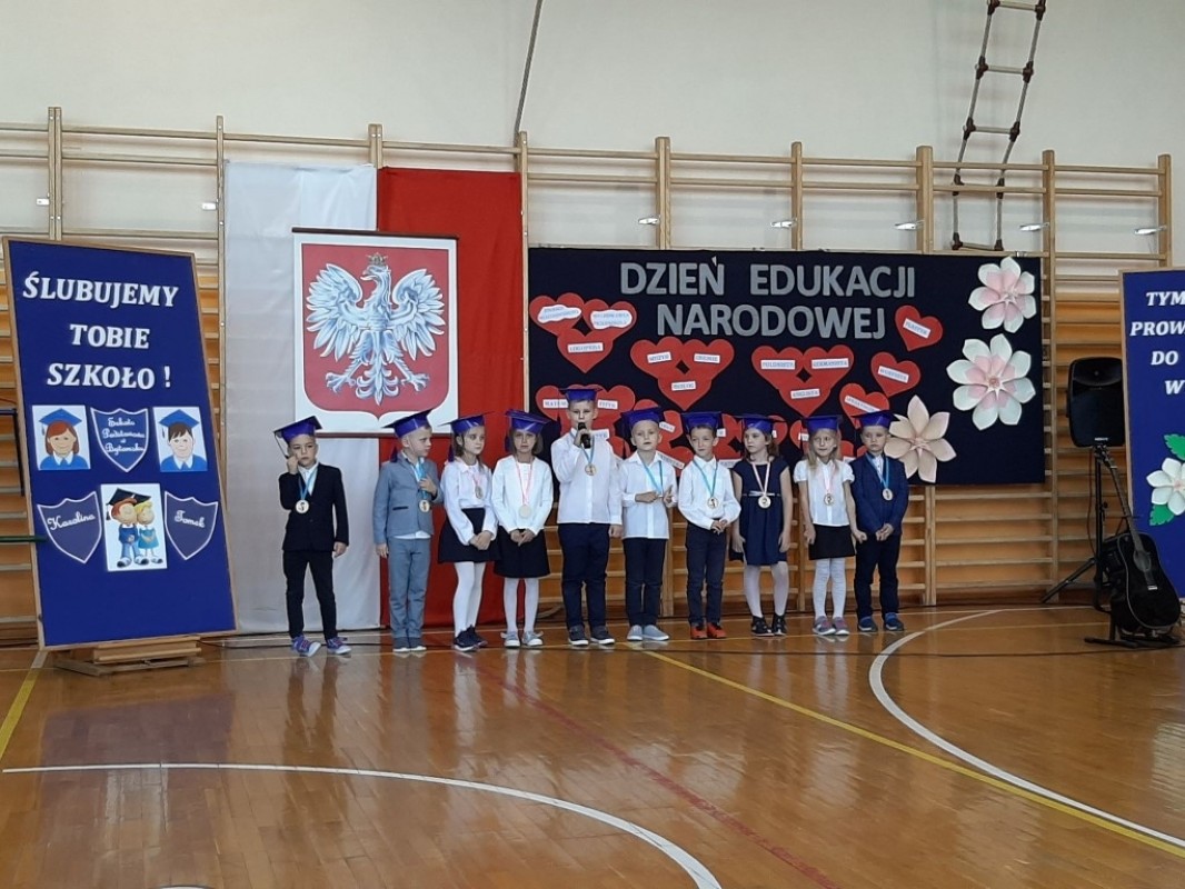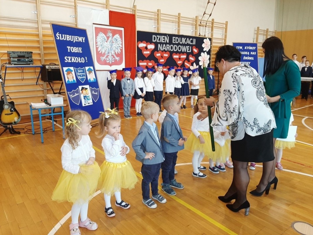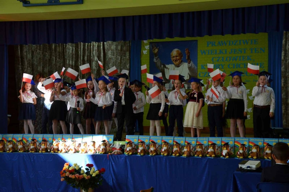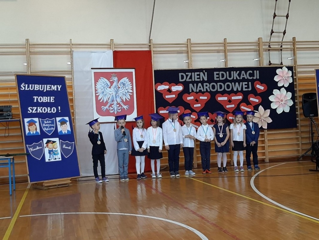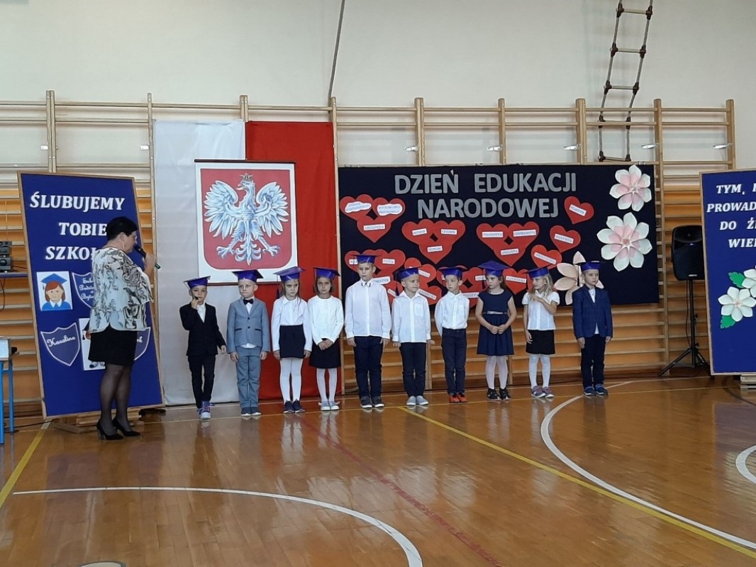 Ślubowanie dzieci z klas pierwszych i uroczyste pasowanie ich na uczniów Szkoły Podstawowej im. Jana Pawła II w Łąkcie Górnej zostało połączone z obchodami Dnia Edukacji Narodowej i miało miejsce w środę 16 października.