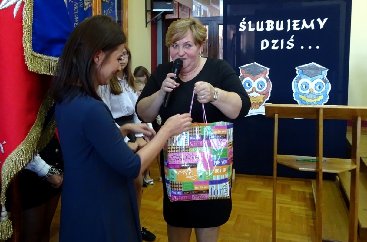 Ta pierwsza tak ważna szkolna uroczystość, która swoją genezą sięga przyjęcia do rycerskiego stanu, uczniowie klas pierwszych będą pamiętać długo.