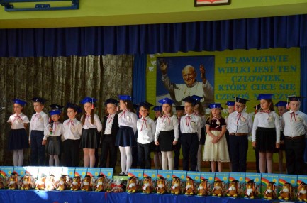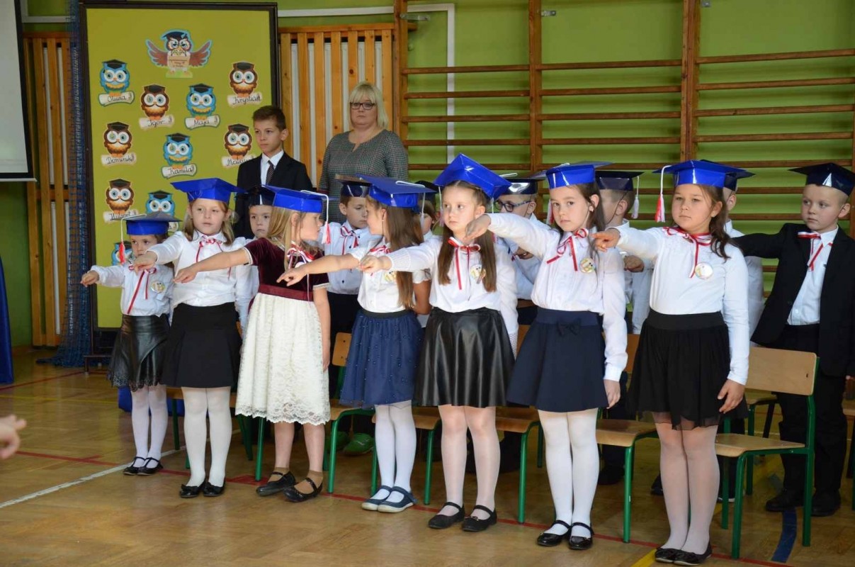 W poczet zostało przyjętych łącznie 26 uczniów, jednak zanim to nastąpiło, dzieci przedstawiły bogatą część artystyczną. W trakcie jej trwania zatańczyły poloneza, co zostało nagrodzone gromkimi brawami nauczycieli, gości oraz rodziców, a także odśpiewały tematyczne piosenki i przedstawiły swoją wiedzę na temat Polski, patrona swojej szkoły – Jana Pawła II i podstawowych zasad ruchu pieszego.