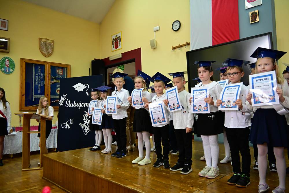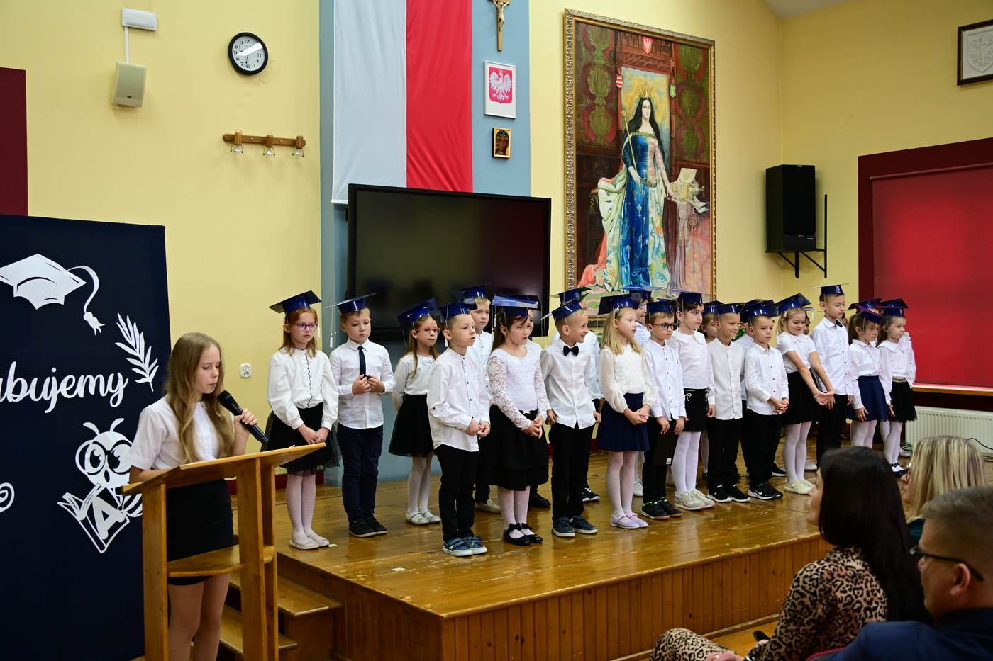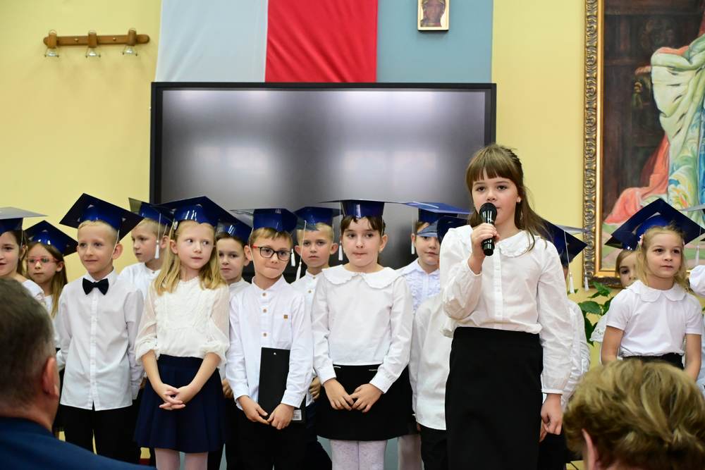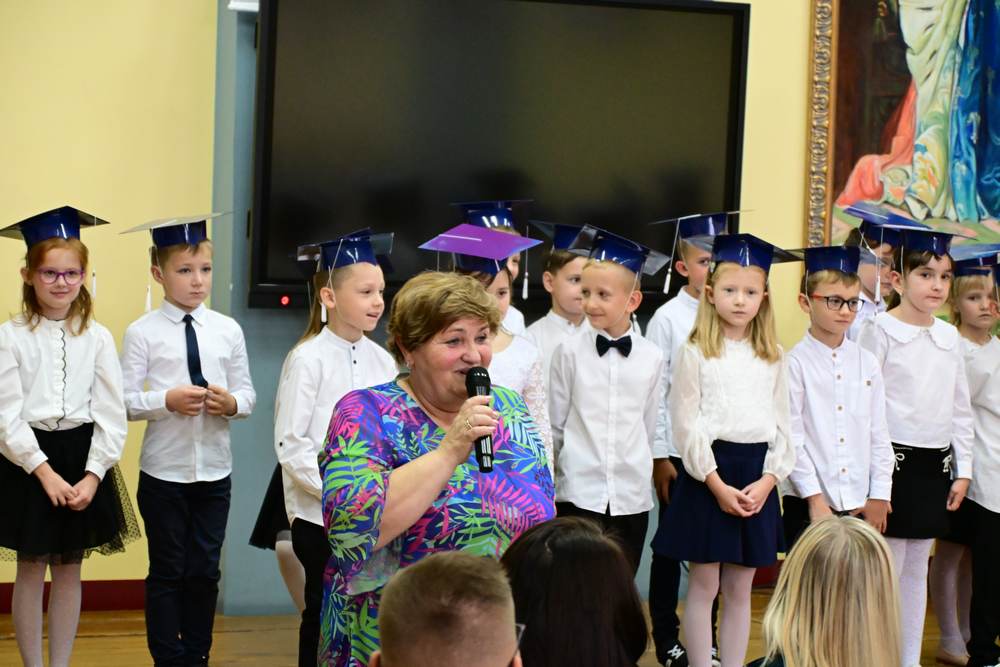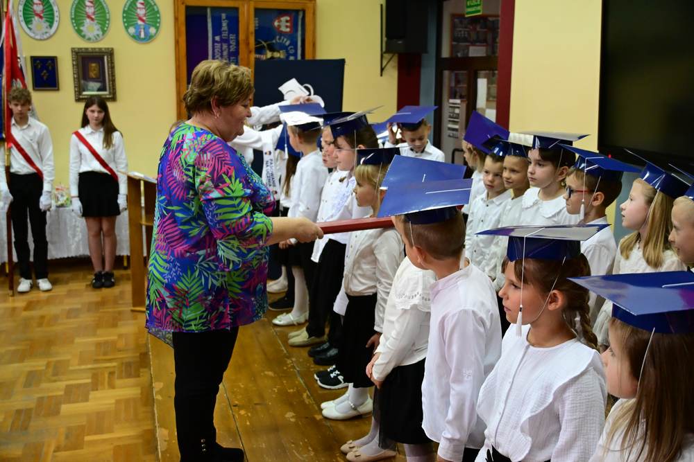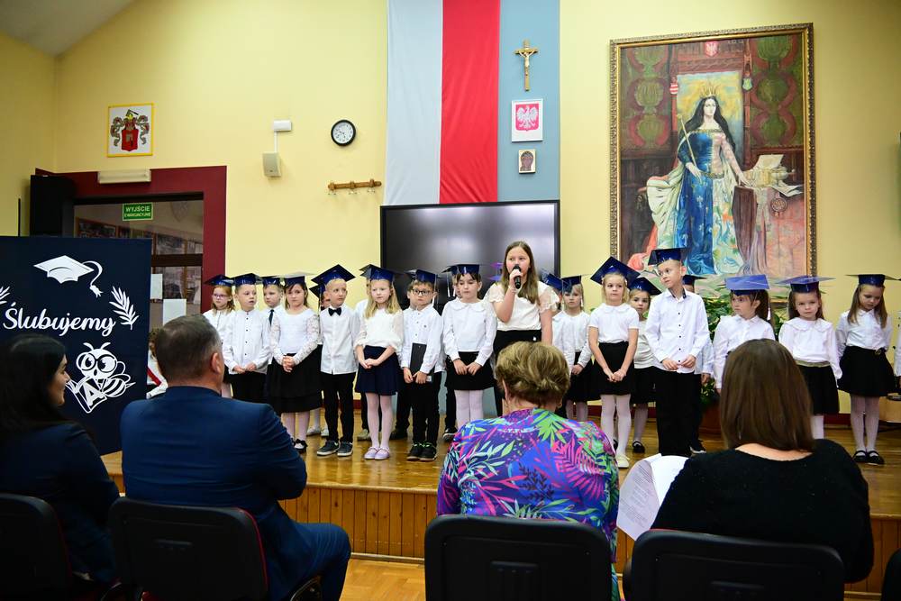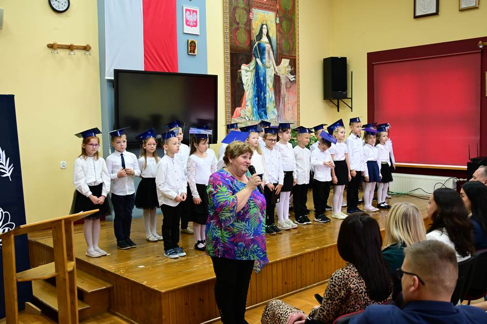 Po okolicznościowych przemówieniach uczniowie, pod czujnym okiem swoich wychowawczyń, zaprezentowali program artystyczny. Po występach – pełnych śpiewu i wierszy – dzieci przystąpiły do symbolicznego egzaminu, który zdały z wyróżnieniem!