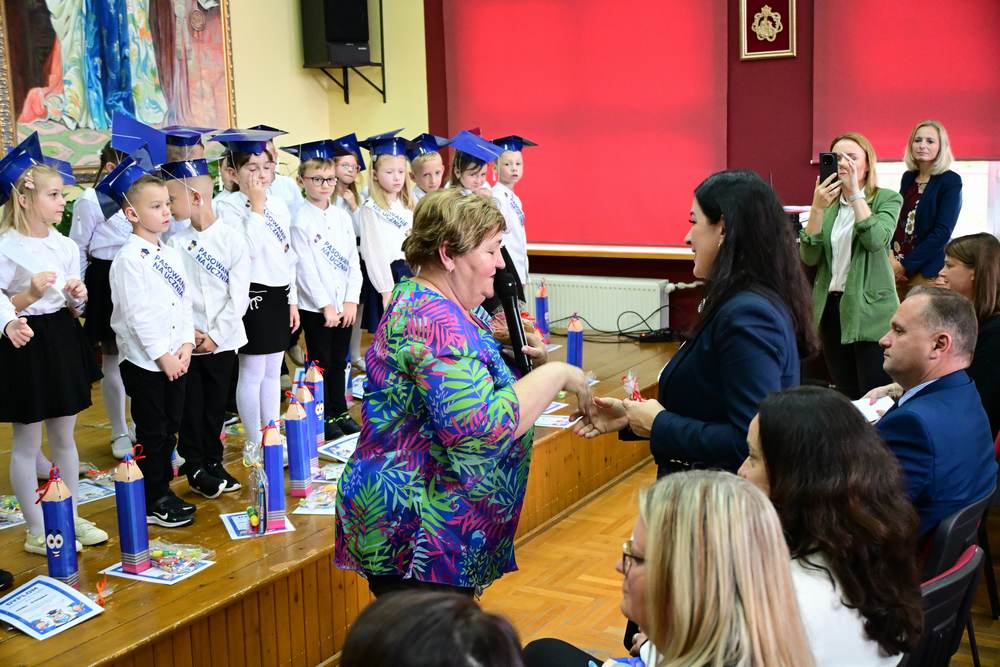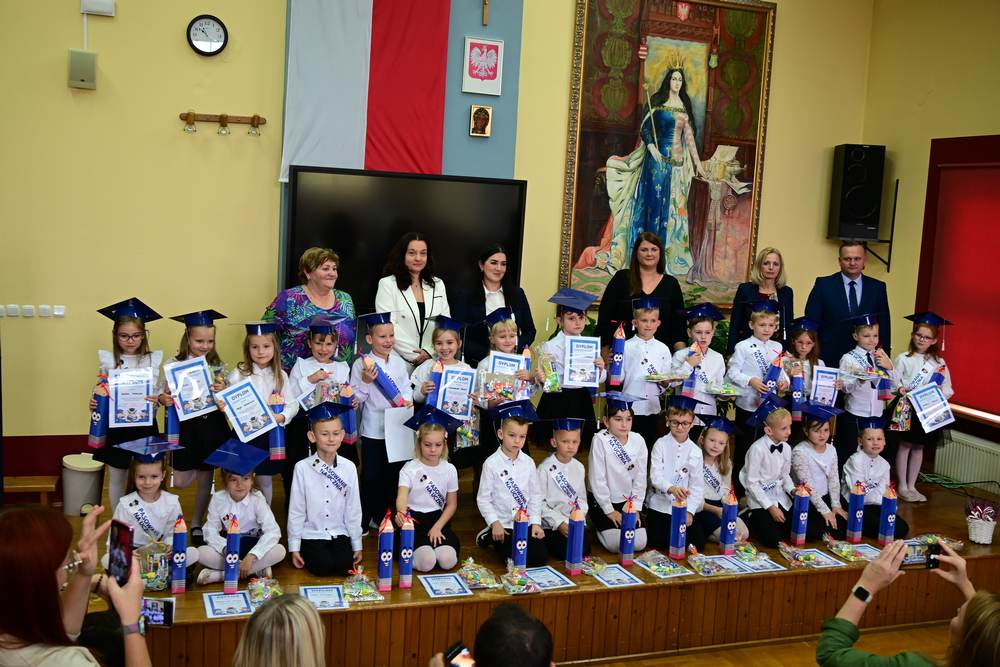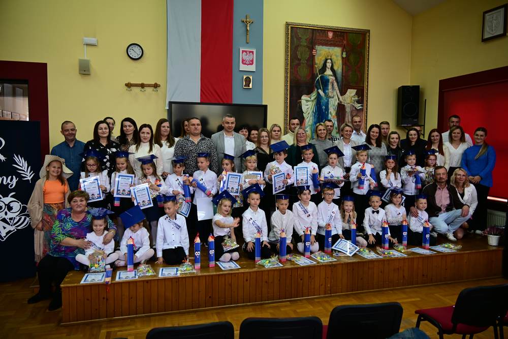 W ceremonii wzięli udział wyjątkowi goście, w tym Pan Wojciech Wrona – Wójt Gminy Żegocina, Pani Joanna Pyrz – Zastępca Wójta Gminy Żegocina i Sekretarz Gminy, oraz Pani Magdalena Adamska-Urban – Przewodnicząca Rady Rodziców. To właśnie oni, wraz z Panią Dyrektor Anną Rogalą oraz Panią Ewą Paruch – Dyrektor Przedszkola, złożyli pierwszoklasistom serdeczne gratulacje i życzenia sukcesów w nauce oraz w życiu .