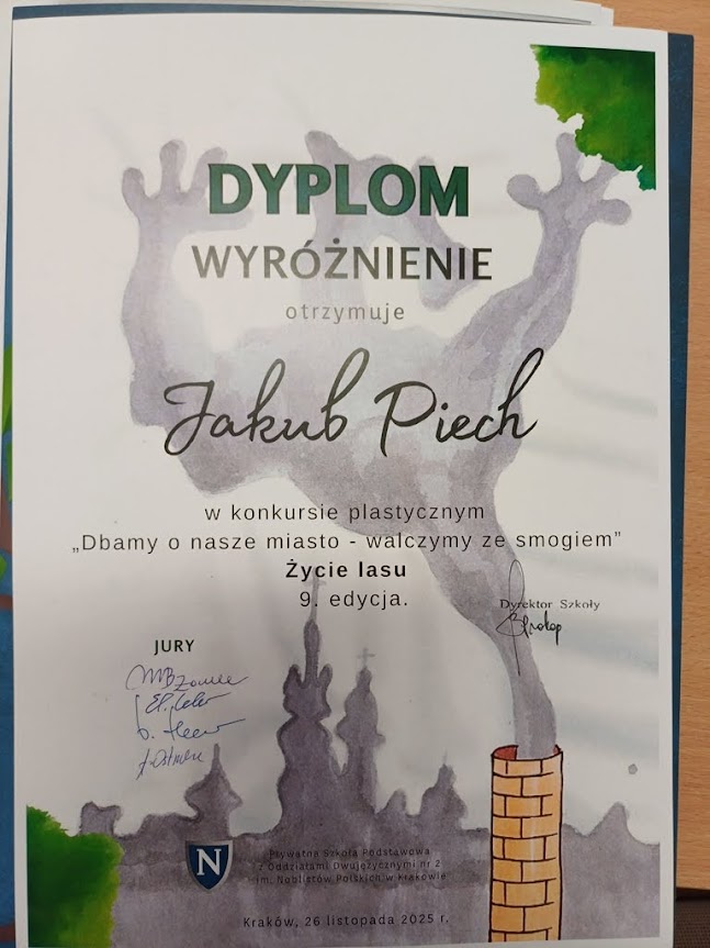 26 listopada 2025 r. w Prywatnej Szkole Podstawowej z Oddziałami Dwujęzycznymi nr 2 im. Noblistów Polskich w Krakowie miała miejsce uroczysta gala rozdania nagród 9 edycji wojewódzkiego konkursu „Dbamy o nasze miasto – walczymy ze smogiem”. Tegoroczna odsłona zorganizowana została pod hasłem „Życie lasu”.