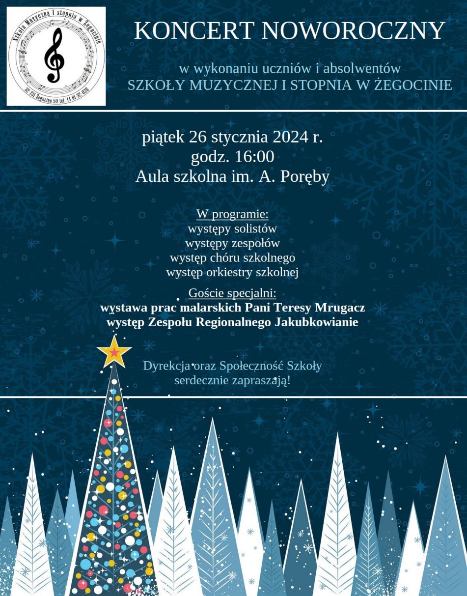 SZKOŁA MUZYCZNA W ŻEGOCINIE ZAPRASZA NA KONCERT NOWOROCZNY - 26.01.2024
