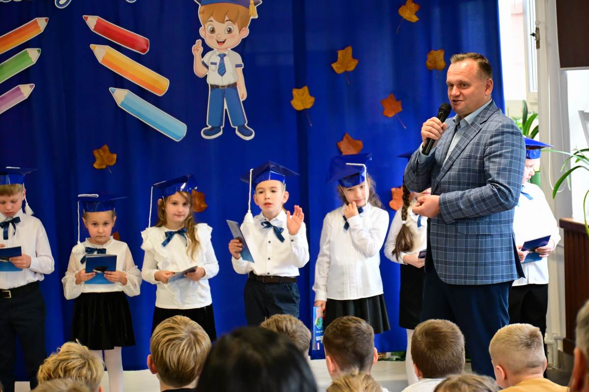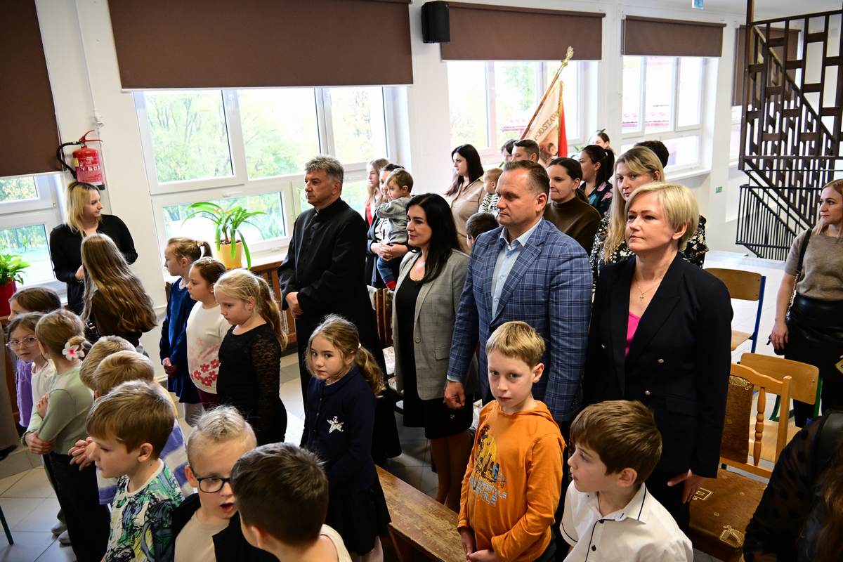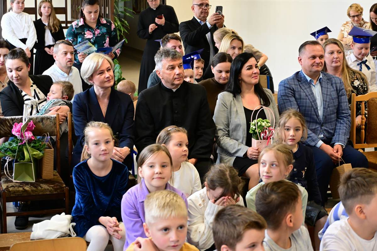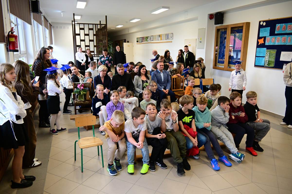 Ciepłe życzenia najmłodszym uczniom – samych sukcesów, radości ze zdobywania wiedzy oraz prawdziwych szkolnych przyjaźni – złożyli: Ksiądz Proboszcz Bogusław Pasierb, Wójt Gminy Wojciech Wrona oraz Zastępca Wójta Pani Joanna Pyrz.