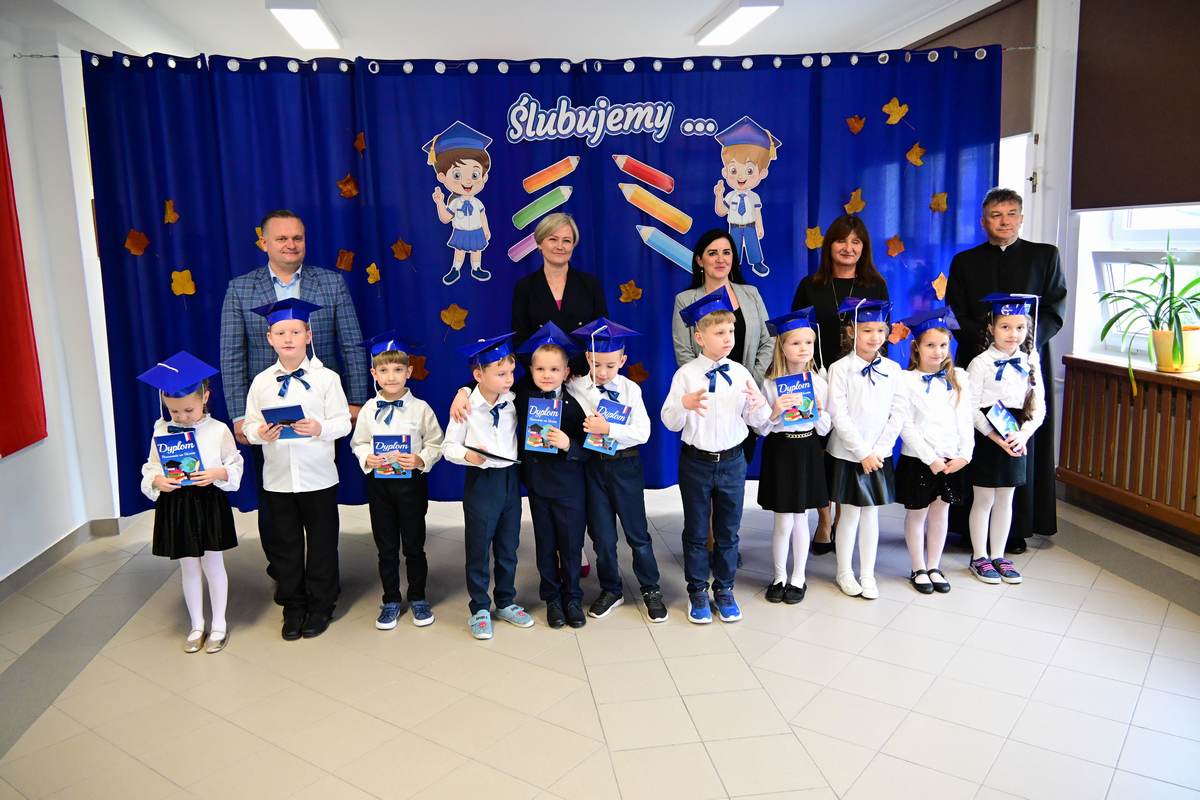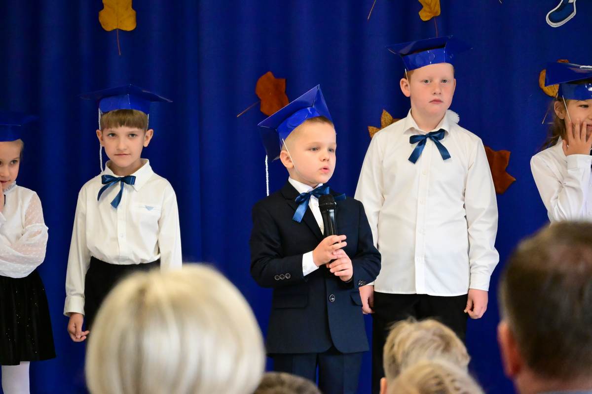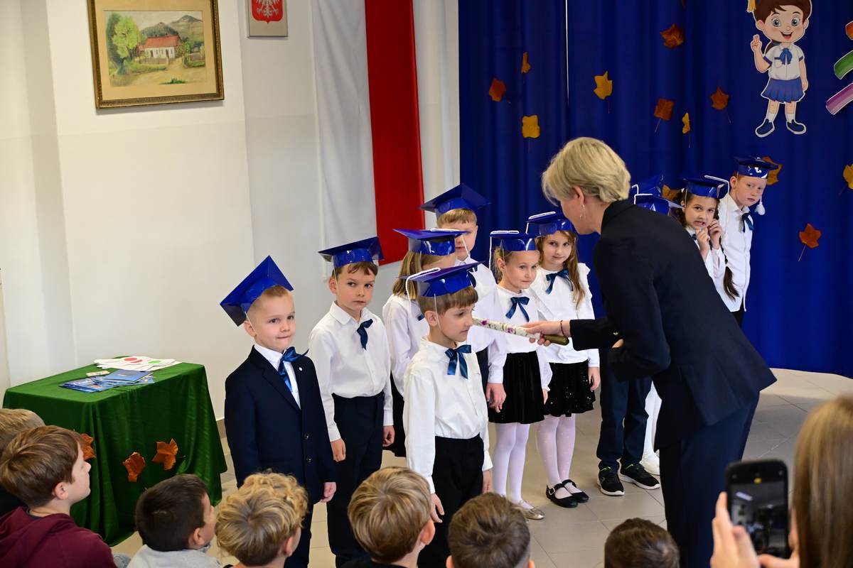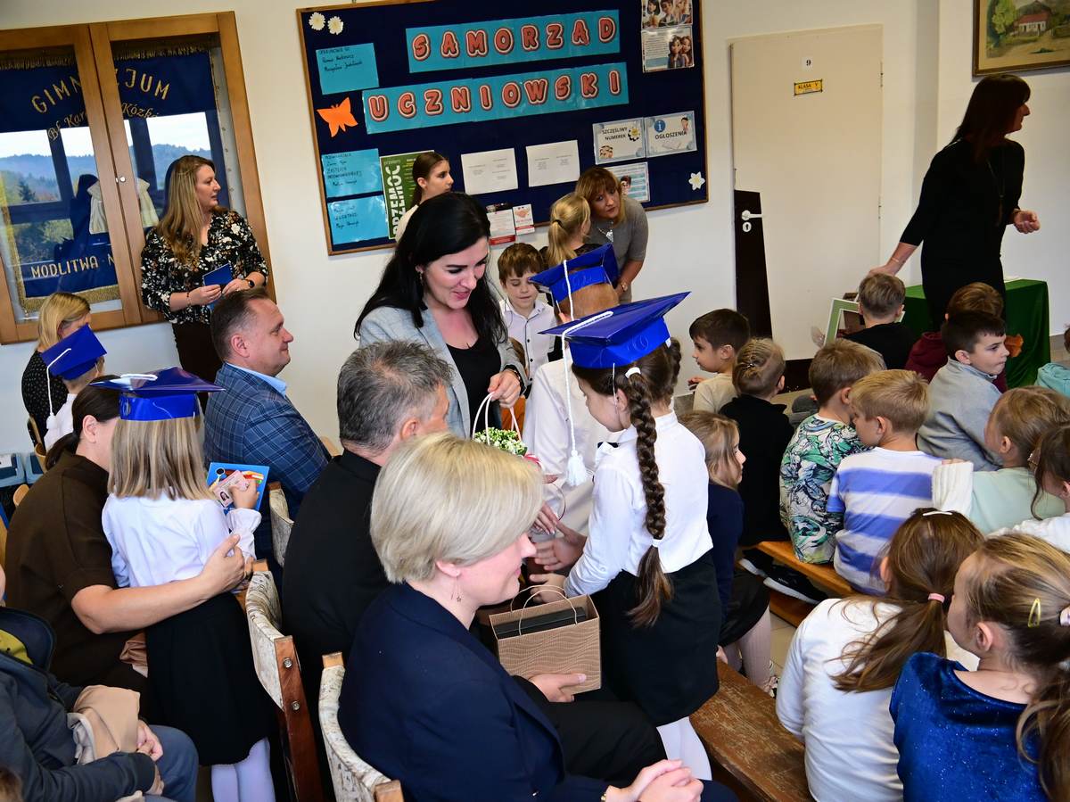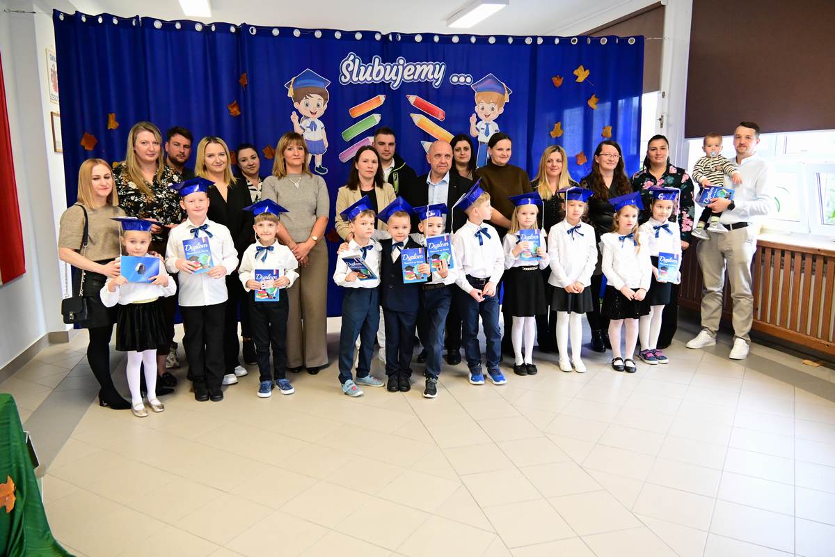 Ciepłe życzenia najmłodszym uczniom – samych sukcesów, radości ze zdobywania wiedzy oraz prawdziwych szkolnych przyjaźni – złożyli: Ksiądz Proboszcz Bogusław Pasierb, Wójt Gminy Wojciech Wrona oraz Zastępca Wójta Pani Joanna Pyrz.