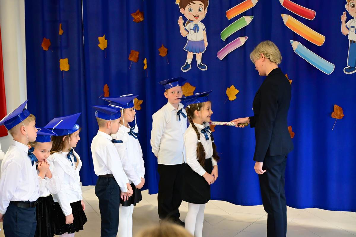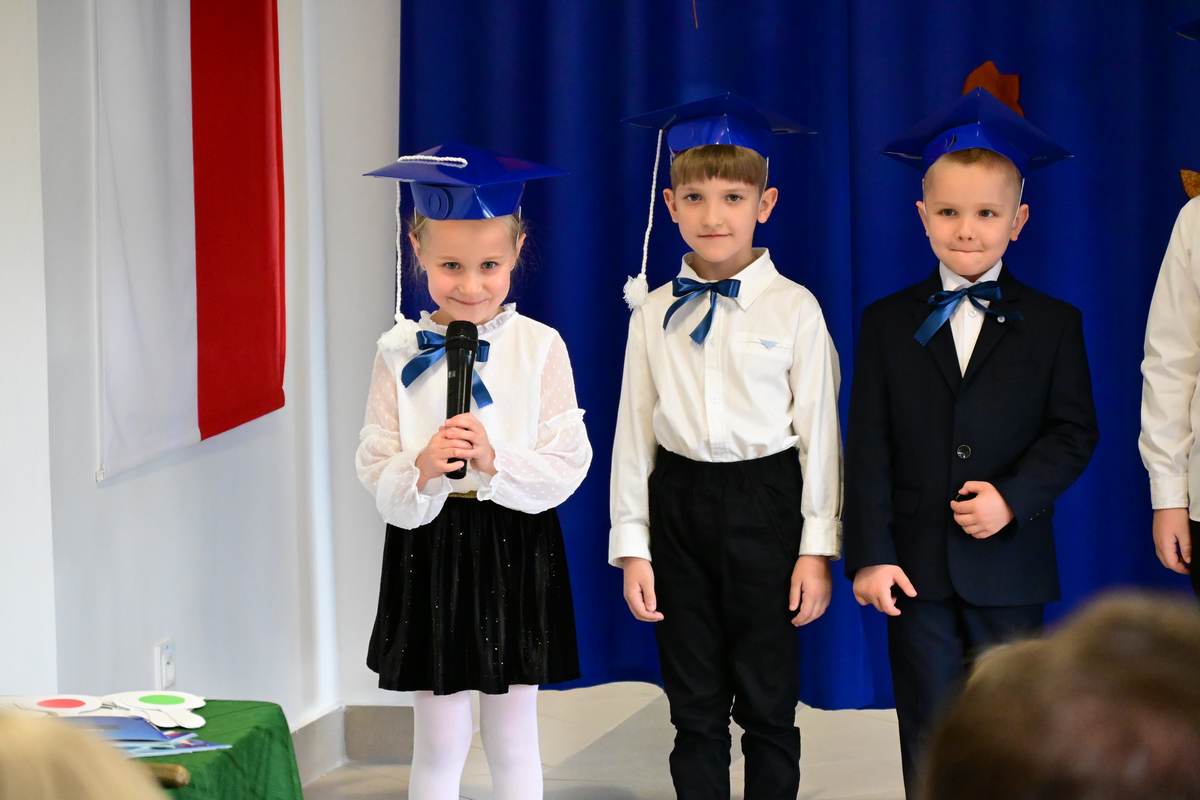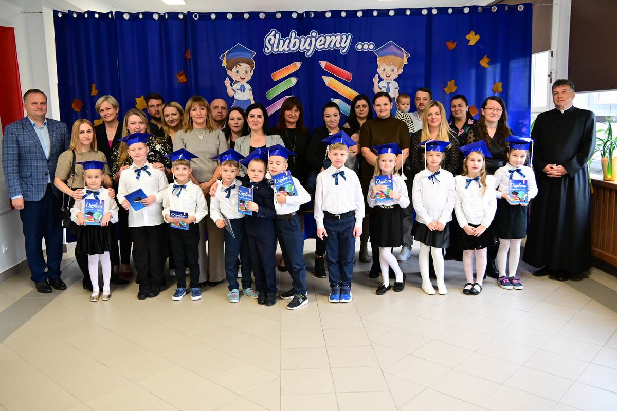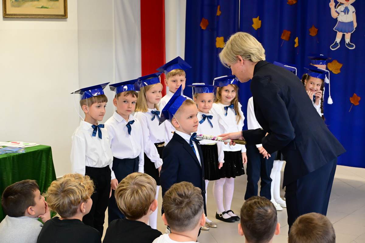 Ciepłe życzenia najmłodszym uczniom – samych sukcesów, radości ze zdobywania wiedzy oraz prawdziwych szkolnych przyjaźni – złożyli: Ksiądz Proboszcz Bogusław Pasierb, Wójt Gminy Wojciech Wrona oraz Zastępca Wójta Pani Joanna Pyrz.
