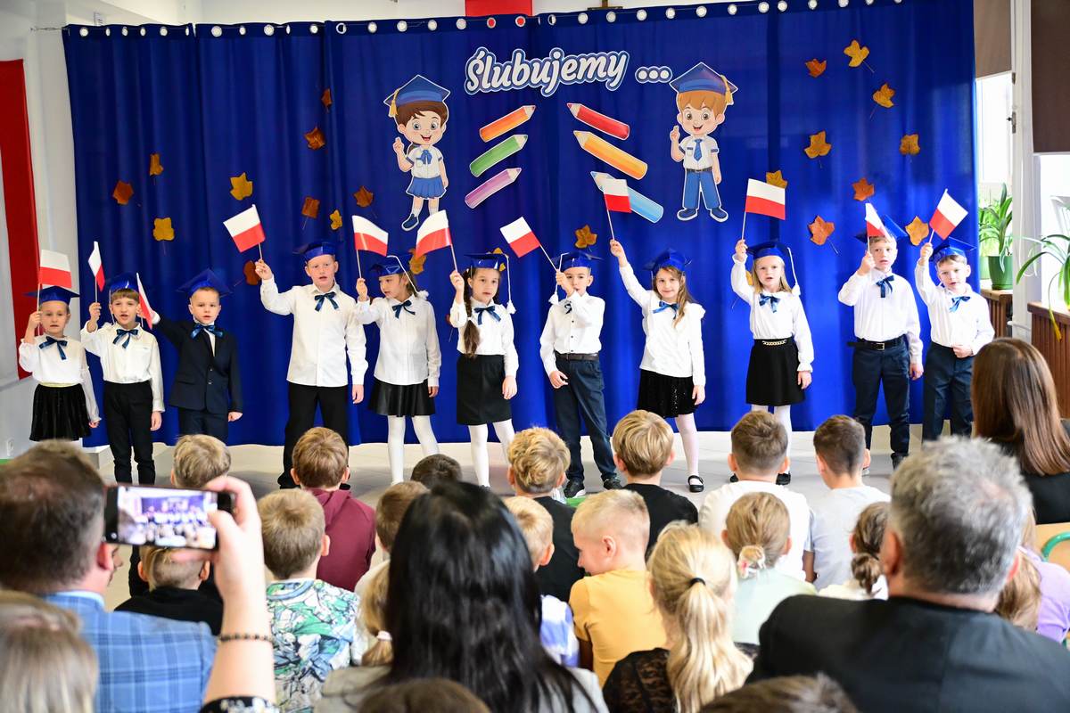 Zanim młodzi uczniowie zostali oficjalnie przyjęci do społeczności szkolnej, z ogromnym zaangażowaniem zaprezentowali swoje umiejętności – śpiewali piosenki i recytowali wiersze. Pokazali, jak dobrze przygotowali się do tego ważnego dnia.