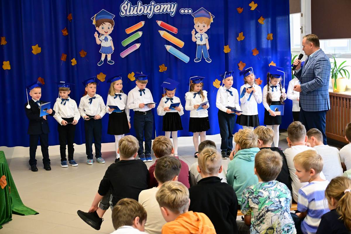 W środę 22 października 2025 r. w Szkole Podstawowej w Rozdzielu odbyła się wyjątkowa uroczystość: ślubowanie i pasowanie uczniów klasy I.