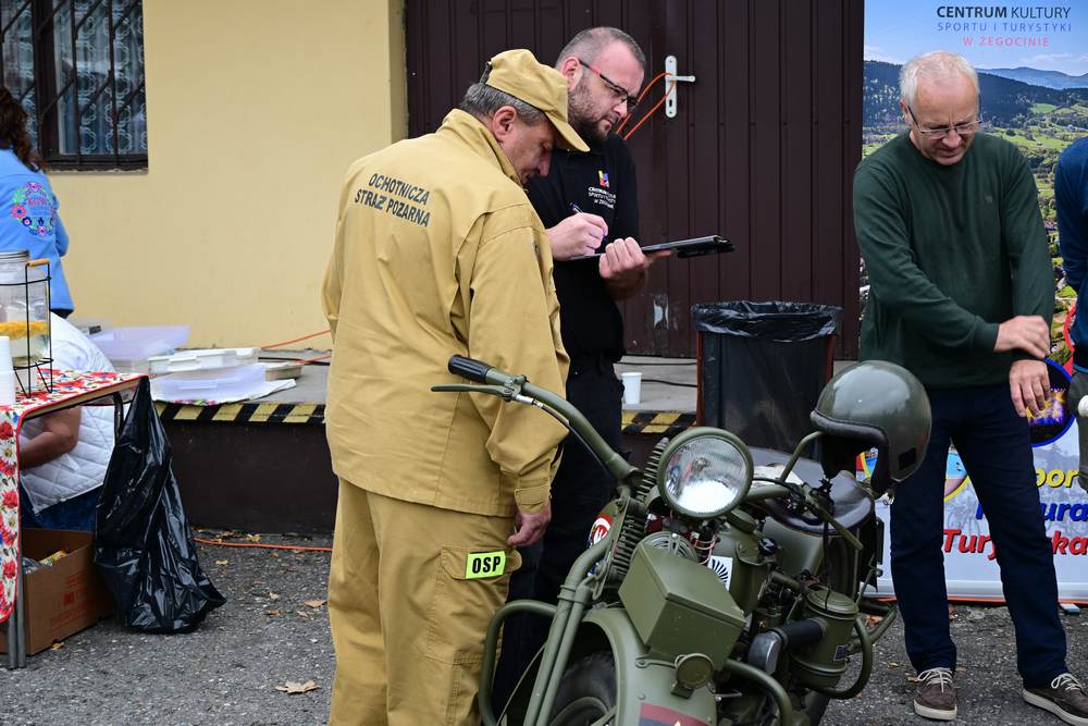 Przez godzinę zabytkowe pojazdy prezentowały się na placu Gminnej Spółdzielni w Żegocinie, gdzie każdy mógł podejść, zrobić zdjęcie i co najważniejsze – porozmawiać z właścicielami tych unikatowych maszyn.