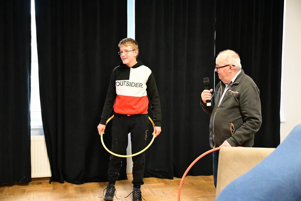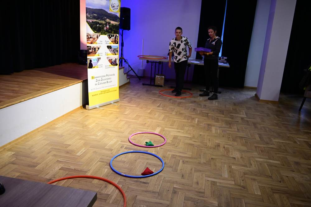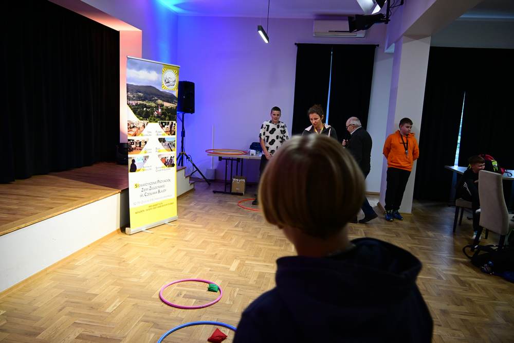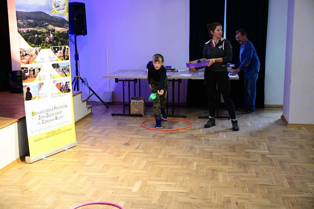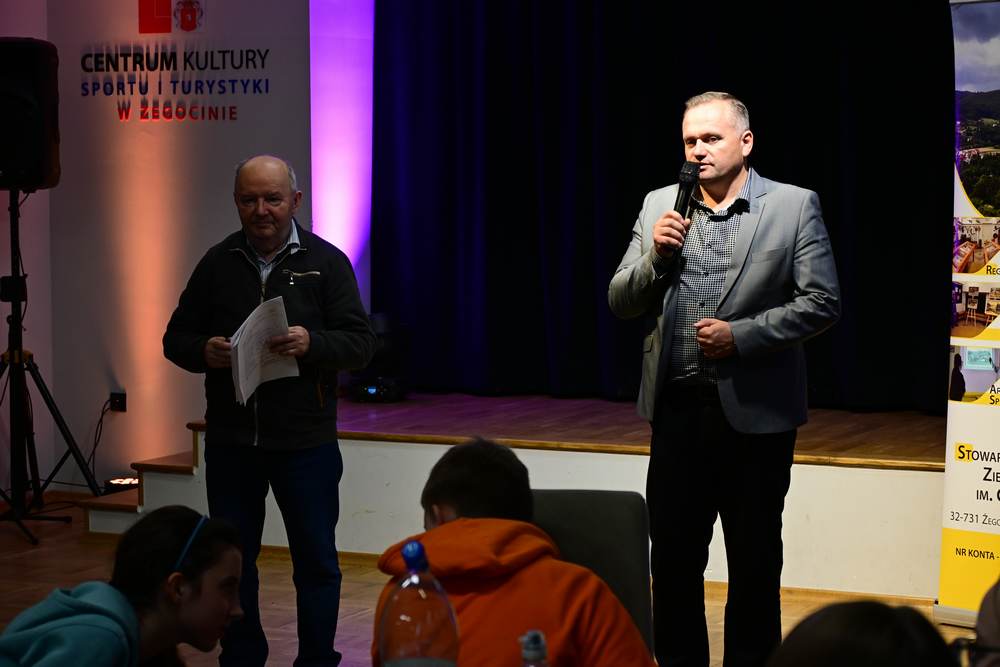 W budynku Centrum na dzielnych rajdowiczów czekali organizatorzy oraz zaproszeni goście, m.in.: Wójt Gminy Żegocina – Wojciech Wrona, Zastępca Wójta i Sekretarz – Joanna Pyrz, Agnieszka Kukla – pracownik UG ds. NGO, Magdalena Adamska-Urban – dyrektor CKSiT, oraz Jerzy Błoniarz – wiceprezes Stowarzyszenia. Po oficjalnym powitaniu, uczestnicy otrzymali ciepły posiłek. Następnie przystąpiono do konkursów, które towarzyszyły rajdowi. Uczniowie mogli wykazać się wiedzą o regionie, a także sprawnością fizyczną w konkurencjach: hula-hop i rzut woreczkiem do celu.