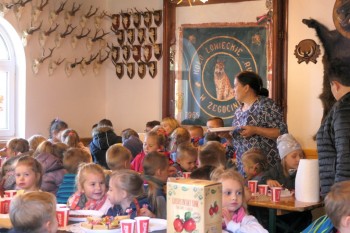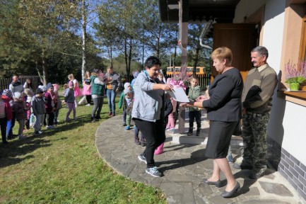 Pod koniec wspólnego spotkania wręczono upominki dla klas oddziałów przedszkolnych i przedszkoli oraz podziewania dla Koła Łowieckiego „Ryś”, przewodnika po lesie, dyrektorek przedszkoli i szkół, zaproszonych gości. Łowczy Koła „Ryś” Adam Durbas zaprosił przedszkolaki na kolejną wspólną imprezę oraz zachęcił nauczycieli do przyprowadzania do Domku Myśliwskiego, pełnego różnych, ciekawych eksponatów, także starszych uczniów. Po radosnej zabawie na świeżym powietrzu poszczególne grupy, pełne wrażeń, wyposażone w prezenty i upominki z powrotem wsiadały do szkolnego autobusu i odjeżdżały do swoich szkół i przedszkoli.