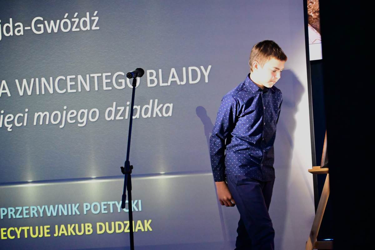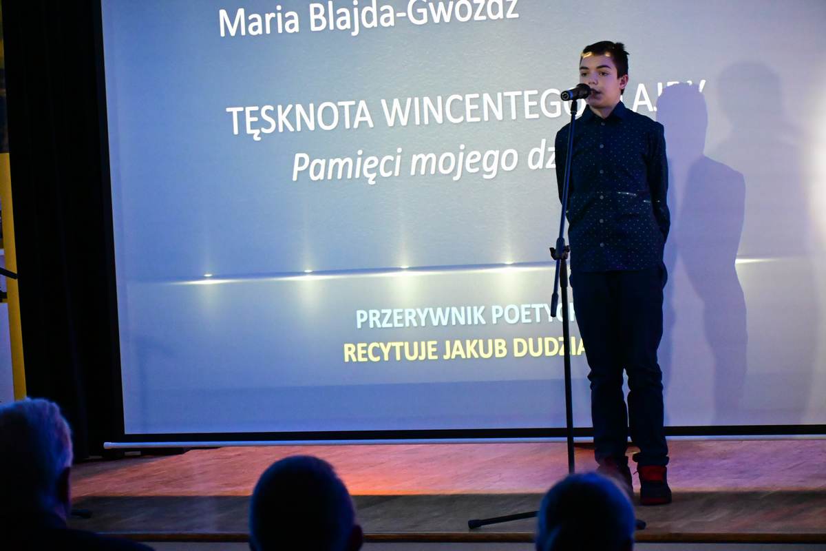 Slajdy przeplatały się z przerywnikami artystycznymi, w tym recytacjami wierszy wykonanymi przez uczniów klasy VII Szkoły Podstawowej w Żegocinie, przygotowanych przez panią Bożenę Banaś. Wśród występujących na scenie znalazła się Małgorzata Mikołajek. Wiersze były różnorodne, znalazły się wśród nich wiersze samego Czesława Blajdy, jak i te napisane ku jego pamięci. Publiczność wysłuchała również występów Dyrektora SM w Żegocinie Tomasza Cudejko, który zaprezentował utwory na skrzypcach.