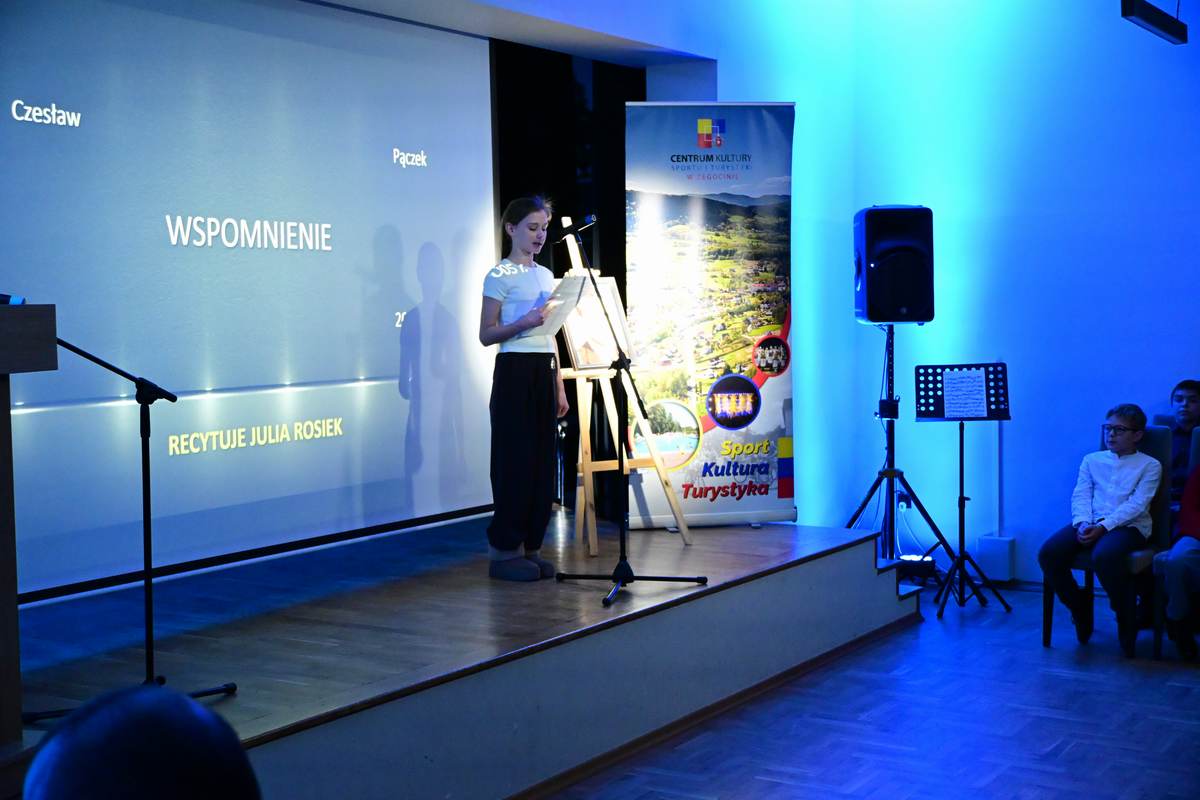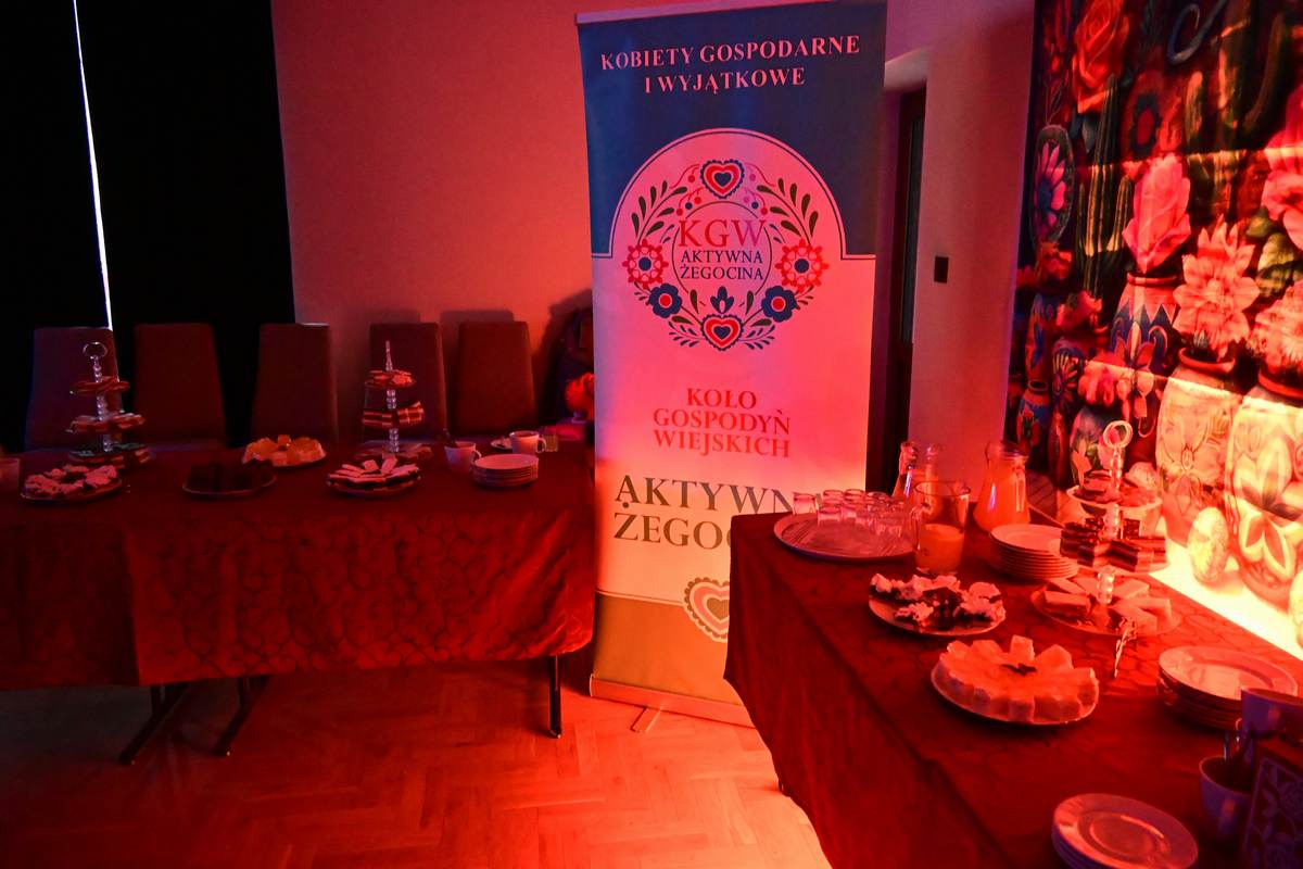 Szczególne podziękowania skierowano do wszystkich, którzy przyczynili się do uświetnienia tego wieczoru, do uczniów, do pani Barbary Pączek z KGW Aktywna Żegocina, która wniosła znaczący wkład w przygotowanie pysznego słodkiego poczęstunku. Dzięki niej na zakończenie na uczestników czekały stoły z ciastami, herbatą i kawą, przy których można było porozmawiać, podzielić się wspomnieniami oraz refleksjami o dorobku Czesława Blajdy.